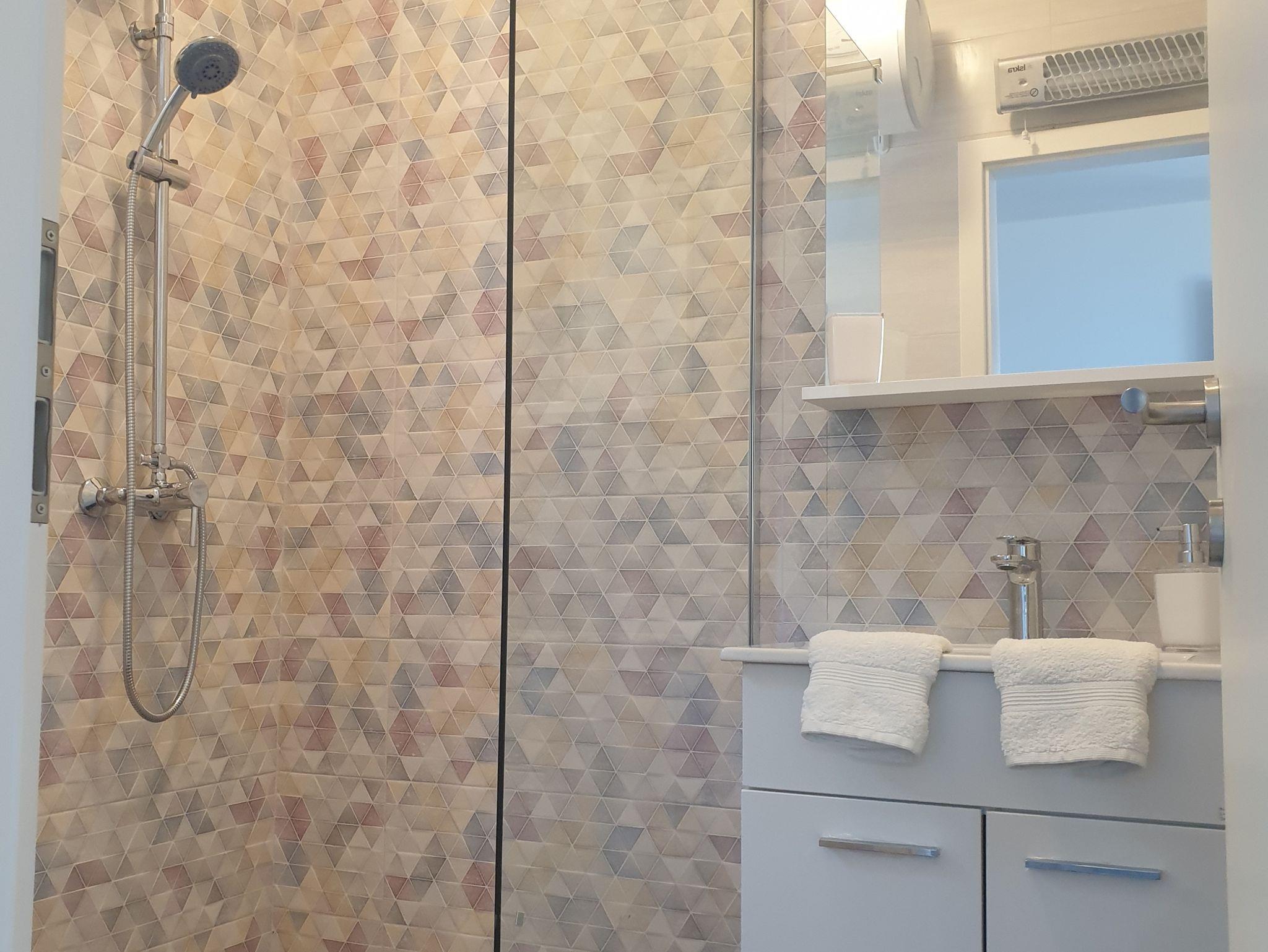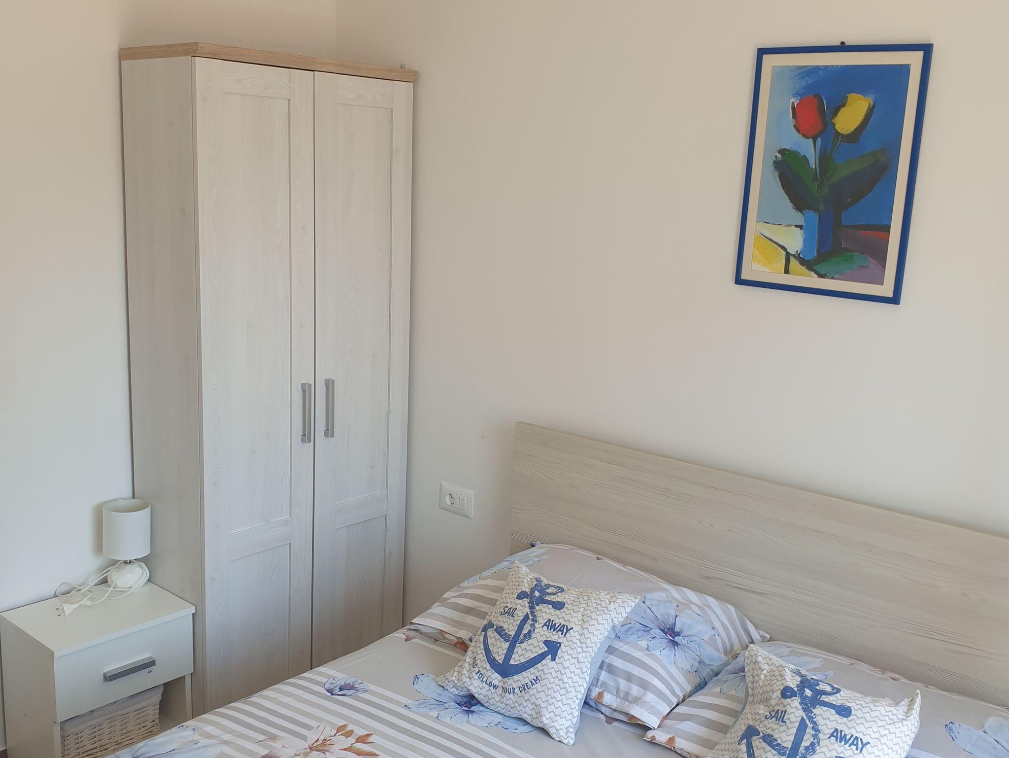 Ferienwohnung bietet Platz für 4 Gäste. Die Betten sind in Schlafzimmern, die es 2 gibt, innerhalb einer Gesamtfläche von 49m2, angeordnet. Die Gäste haben eine eigene Terrasse zur Verfügung, auf der sie in warmen Sommernächten genießen können. Das Apartment bietet Meerblick. Es ist erlaubt, Speisen auf dem Gemeinschafts-Grill vorzubereiten. IM PREIS INBEGRIFFEN: Kurtaxe, Endreinigung, Klimatisierung, Parkplatz, Internet, Föhn, tragbarer Grill. VERBINDLICHE ZUSÄTZLICHE KOSTEN: Aufzahlung für Kurzaufenthalte (prozentualer Zuschlag pro Nächtigungsanzahl: 30% - 1, 20% - 2, 10% - 3). Die Verfügbarkeit zusätzlicher Dienstleistungen in Ihrem reservierten Termin und die Preise derselben (falls nicht aufgeführt) müssen im Voraus überprüft werden. Zusätzliche Dienstleistungen die in der Zahlungsaufforderung nicht aufgeführt sind werden direkt beim Vermieter bezahlt, angenommen der Gast nutzt auch diese.