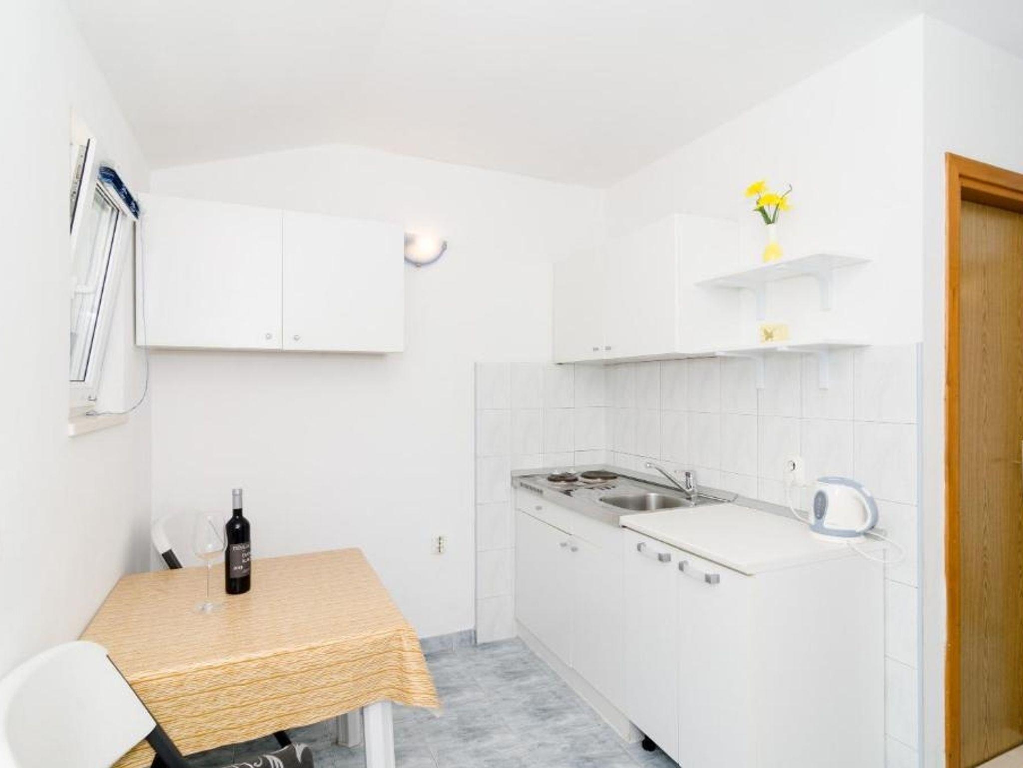 Ferienwohnung bietet Platz für 3 Gäste. Die Betten sind in Schlafzimmern, die es 1 gibt, und in Esszimmer, innerhalb einer Gesamtfläche von 29m2, angeordnet. Die Gäste haben einen eigenen Balkon zur Verfügung, auf der sie in warmen Sommernächten genießen können. Das Apartment bietet Meerblick. Es ist erlaubt, Speisen auf dem Gemeinschafts-Grill vorzubereiten. IM PREIS INBEGRIFFEN: Kurtaxe, Endreinigung, Klimatisierung, Parkplatz, Internet, Bootsanlegeplatz, Kinderbett, Liegestühle. VERBINDLICHE ZUSÄTZLICHE KOSTEN: Aufzahlung für Kurzaufenthalte (prozentualer Zuschlag pro Nächtigungsanzahl: 30% - 1, 20% - 2, 10% - 3). UNVERBINDLICHE ZUSÄTZLICHE KOSTEN: Wäschewaschen (3,00 € Waschen). Die Verfügbarkeit zusätzlicher Dienstleistungen in Ihrem reservierten Termin und die Preise derselben (falls nicht aufgeführt) müssen im Voraus überprüft werden. Zusätzliche Dienstleistungen die in der Zahlungsaufforderung nicht aufgeführt sind werden direkt beim Vermieter bezahlt, angenommen der Gast nutzt auch diese. Ermäßigung auf den Grundpreis: Gratistag 14=13 (bei einem Aufenthalt von 14 Tagen oder mehr erhalten Sie einen Gratistag für den Aufenthalt bis 31.12.26).