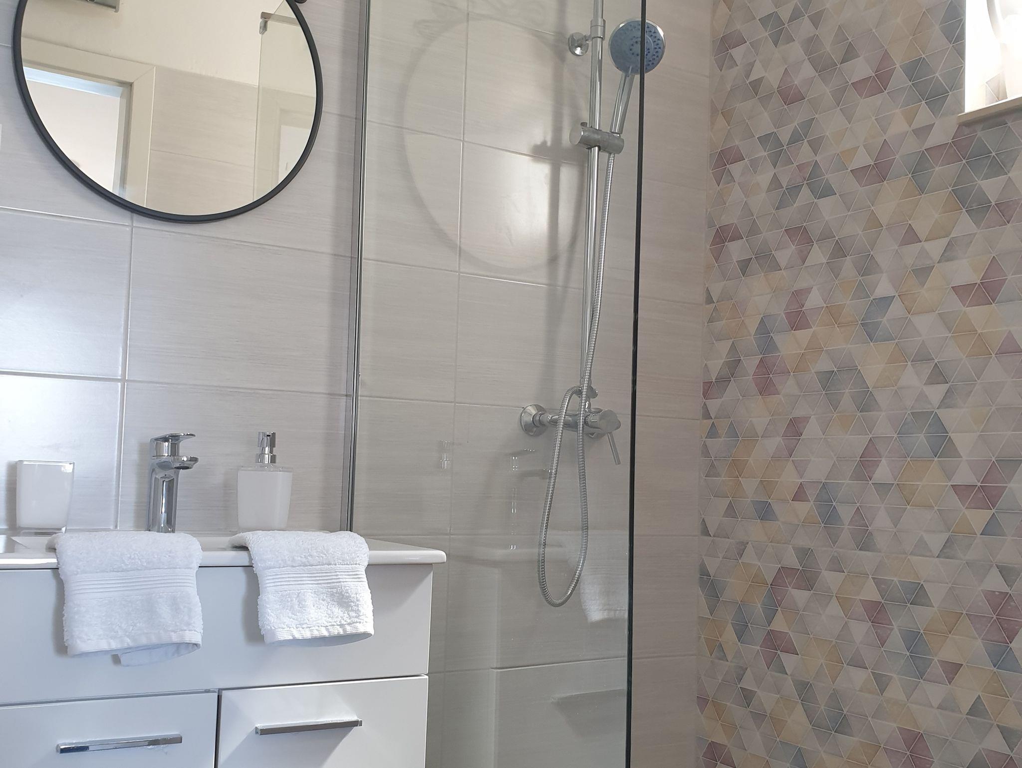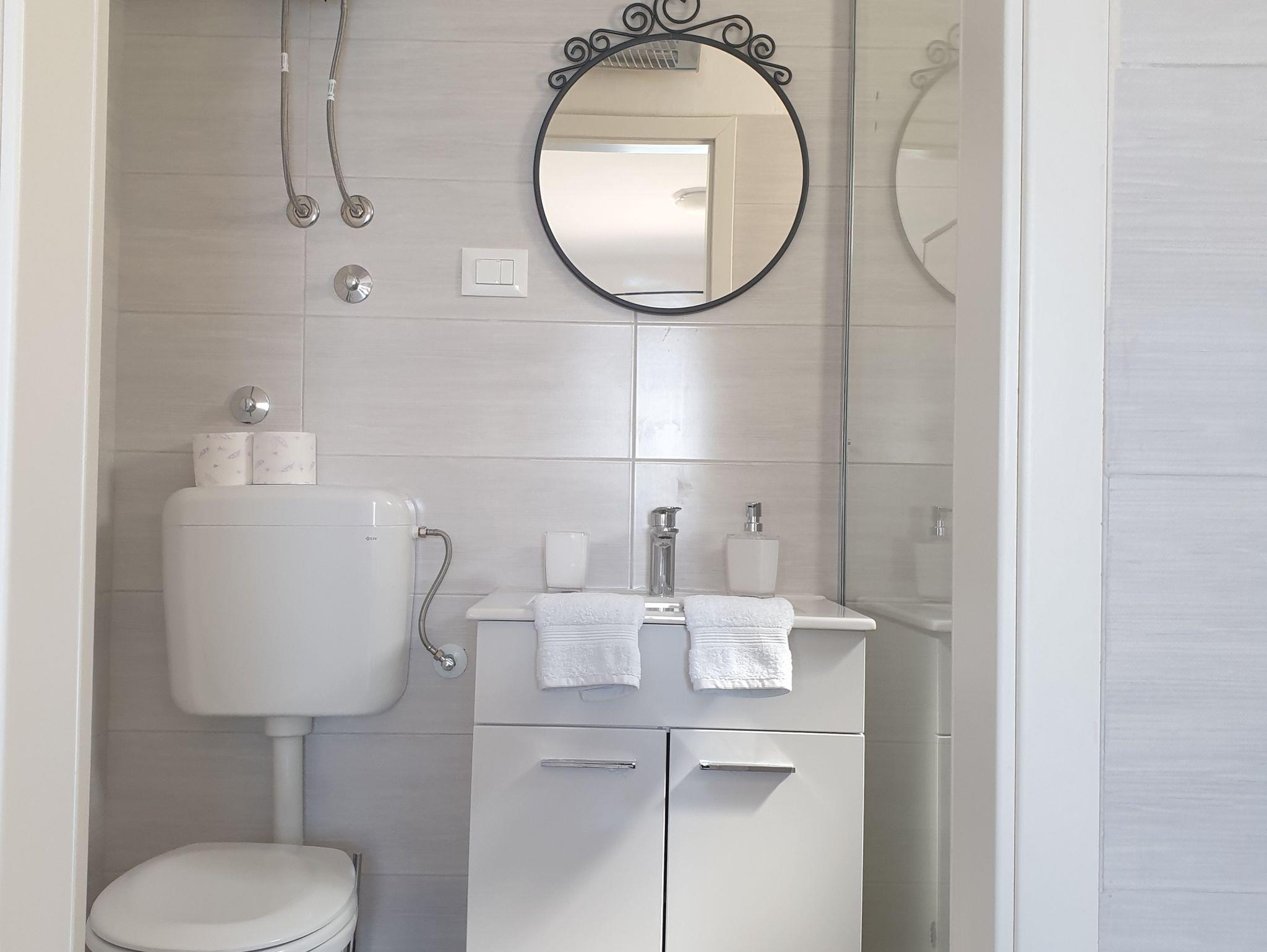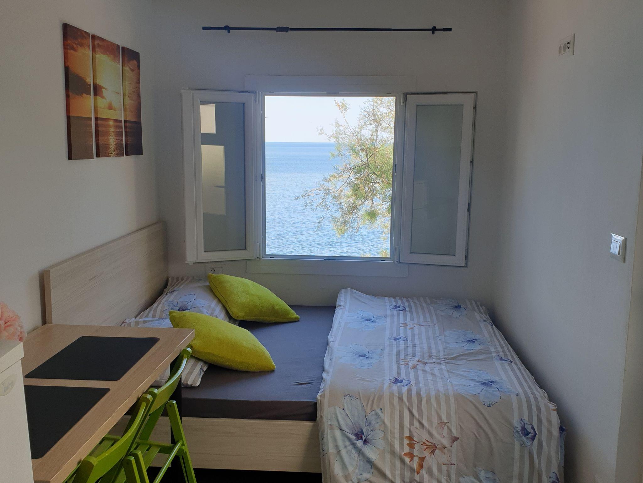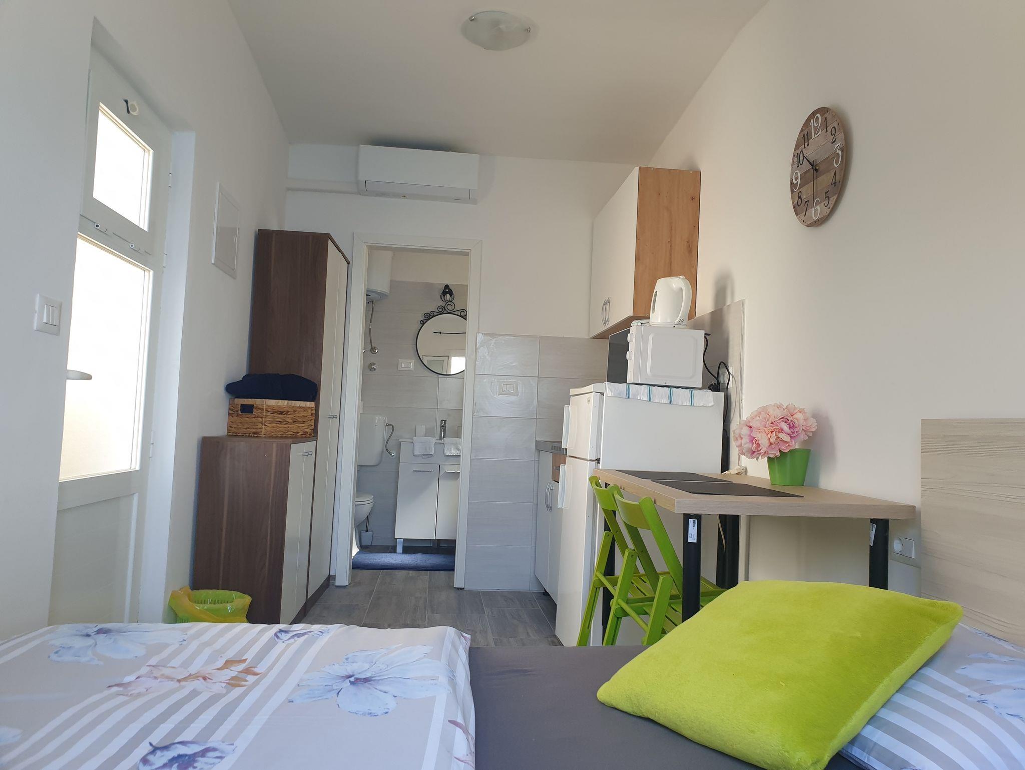 Studio bietet Platz für 2 Gäste. Die Betten sind in Schlafzimmern, die es 1 gibt, innerhalb einer Gesamtfläche von 21m2, angeordnet. Die Gäste haben eine eigene Terrasse zur Verfügung, auf der sie in warmen Sommernächten genießen können. Das Studio-Apartment bietet Meerblick. Es ist erlaubt, Speisen auf dem Gemeinschafts-Grill vorzubereiten. IM PREIS INBEGRIFFEN: Kurtaxe, Endreinigung, Klimatisierung, Parkplatz, Internet, Föhn, tragbarer Grill. VERBINDLICHE ZUSÄTZLICHE KOSTEN: Aufzahlung für Kurzaufenthalte (prozentualer Zuschlag pro Nächtigungsanzahl: 30% - 1, 20% - 2, 10% - 3). Die Verfügbarkeit zusätzlicher Dienstleistungen in Ihrem reservierten Termin und die Preise derselben (falls nicht aufgeführt) müssen im Voraus überprüft werden. Zusätzliche Dienstleistungen die in der Zahlungsaufforderung nicht aufgeführt sind werden direkt beim Vermieter bezahlt, angenommen der Gast nutzt auch diese.