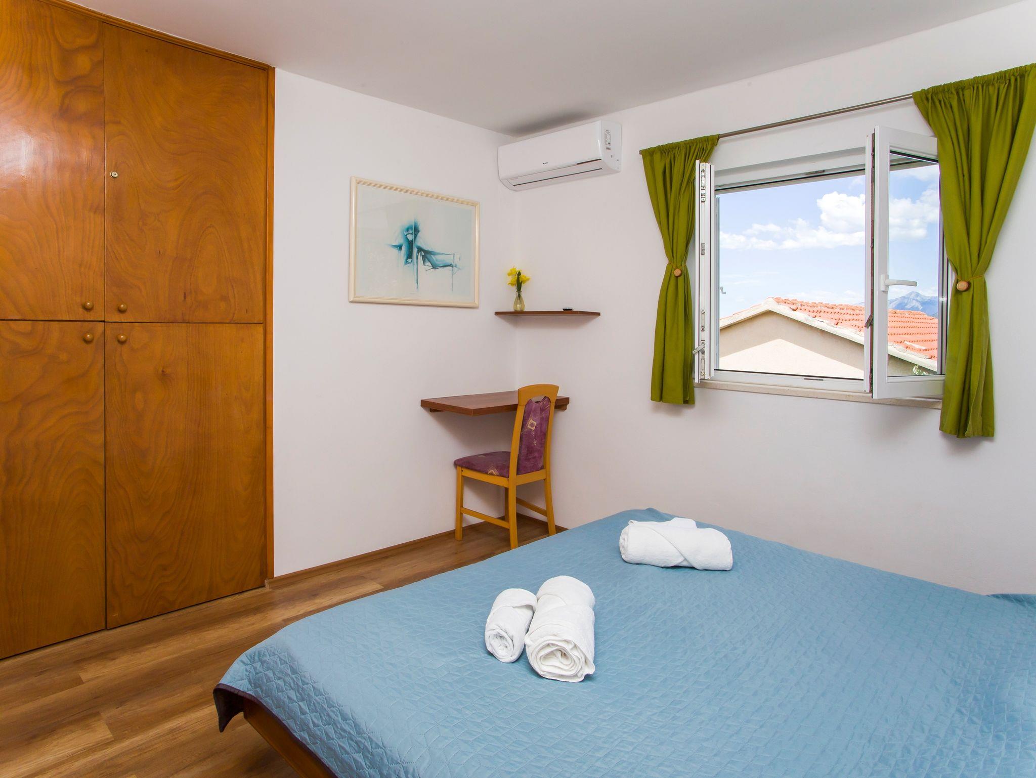 Ferienwohnung bietet Platz für 4 Gäste. Die Betten sind in Schlafzimmern, die es 2 gibt, innerhalb einer Gesamtfläche von 63m2, angeordnet. Die Gäste haben eine eigene Terrasse zur Verfügung, auf der sie in warmen Sommernächten genießen können. Das Apartment bietet Meerblick. Es ist erlaubt, Speisen auf dem Gemeinschafts-Grill vorzubereiten. IM PREIS INBEGRIFFEN: Kurtaxe, Endreinigung, Klimatisierung, Parkplatz, Internet, Bootsanlegeplatz, Kinderbett, Liegestühle, 2 Kinderbettchen (im Preis enthalten). VERBINDLICHE ZUSÄTZLICHE KOSTEN: Aufzahlung für Kurzaufenthalte (prozentualer Zuschlag pro Nächtigungsanzahl: 30% - 1, 20% - 2, 10% - 3). UNVERBINDLICHE ZUSÄTZLICHE KOSTEN: Wäschewaschen (3,00 € Waschen). Die Verfügbarkeit zusätzlicher Dienstleistungen in Ihrem reservierten Termin und die Preise derselben (falls nicht aufgeführt) müssen im Voraus überprüft werden. Zusätzliche Dienstleistungen die in der Zahlungsaufforderung nicht aufgeführt sind werden direkt beim Vermieter bezahlt, angenommen der Gast nutzt auch diese. Ermäßigung auf den Grundpreis: Gratistag 14=13 (bei einem Aufenthalt von 14 Tagen oder mehr erhalten Sie einen Gratistag für den Aufenthalt bis 31.12.26).