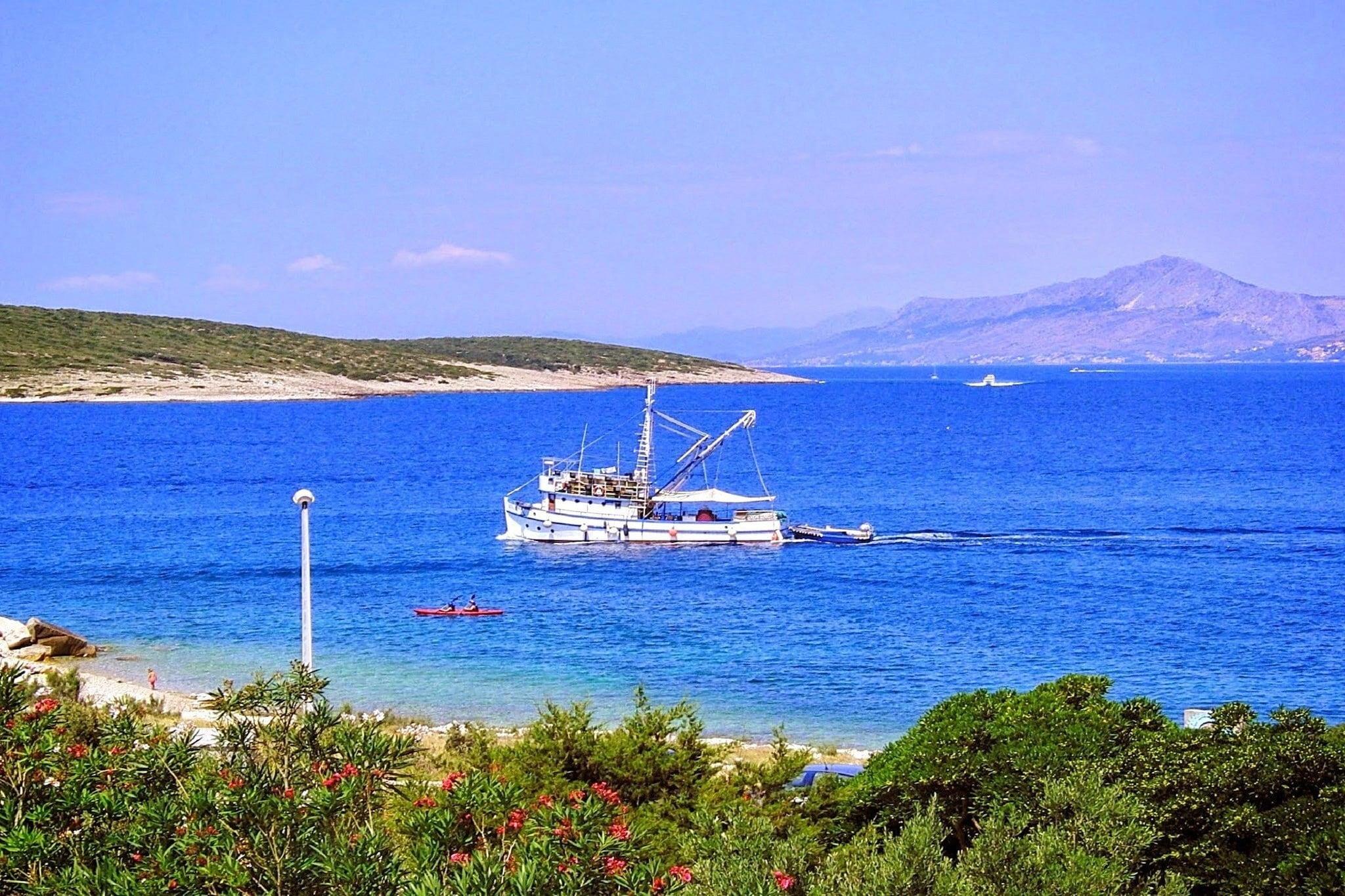 A traditional Dalmatian house, made of stone, in a very attractive and quiet location in Povlja on island Brac, in the immediate vicinity of the beach and 950 meters from the center of Povlja. Three one-bedroom and one studio apartments (cca. 25 m2 each) are on the ground floor of the house. The maximum capacity of each apartment is three adults or two adults with two children up to 12 years old. The third person or two children sleep on the couch in the living room. The couch in each of the apartments can be easily converted into a spacious bed approx. 1.90 m x 1.20 m. Each apartment has its own parking space in front of the house, a separate entrance, a shaded terrace with furniture, a bedroom with a double bed, a kitchen with a dining area and living room in one larger room, as well as a bathroom with shower. Air conditioning, Wi-Fi internet, satellite TV, safe box, bed linen, towels, pots, bowls, plates, cups, glasses, kitchen towels, cutlery, and kettle are standard equipment for each apartment. The washing machine in the laundry room is available to guests (see LAUNDRY on the floor plan). This lovely one bedroom apartment with furnished terrace is perfectly fit for up to three people. It features free WiFi, air conditioning as well as SAT LCD TV. The open space living room comes with sofa and sitting area, and it's combined with the equipped kitchenette and dining area. The private bathroom comes with bathtub and toilet. Free toiletries, hair dryer as well as linens and towels are at your disposal. Due to excellent position of this beachfront house , everything you may need for a pleasant stay can be reached within walking distance. If you want to enjoy the sun and the sea this is the perfect location for you, since the property is located only 100 m away from the nearest beach, with many more of them in the surrounding area. Closest grocery store, bus station, caffe and restaurant can can be found within 900 m. Brac airport is 25 km from the property.