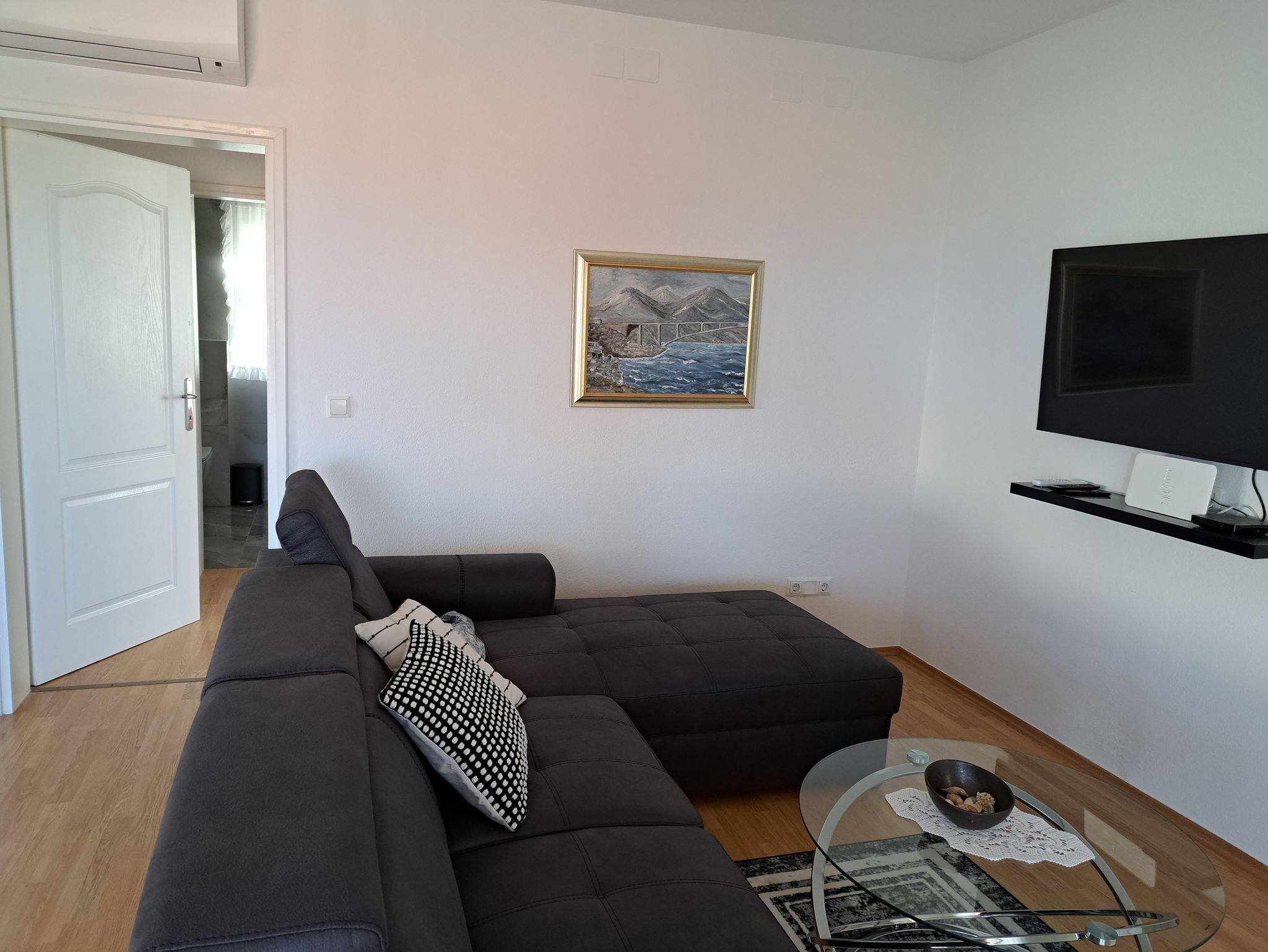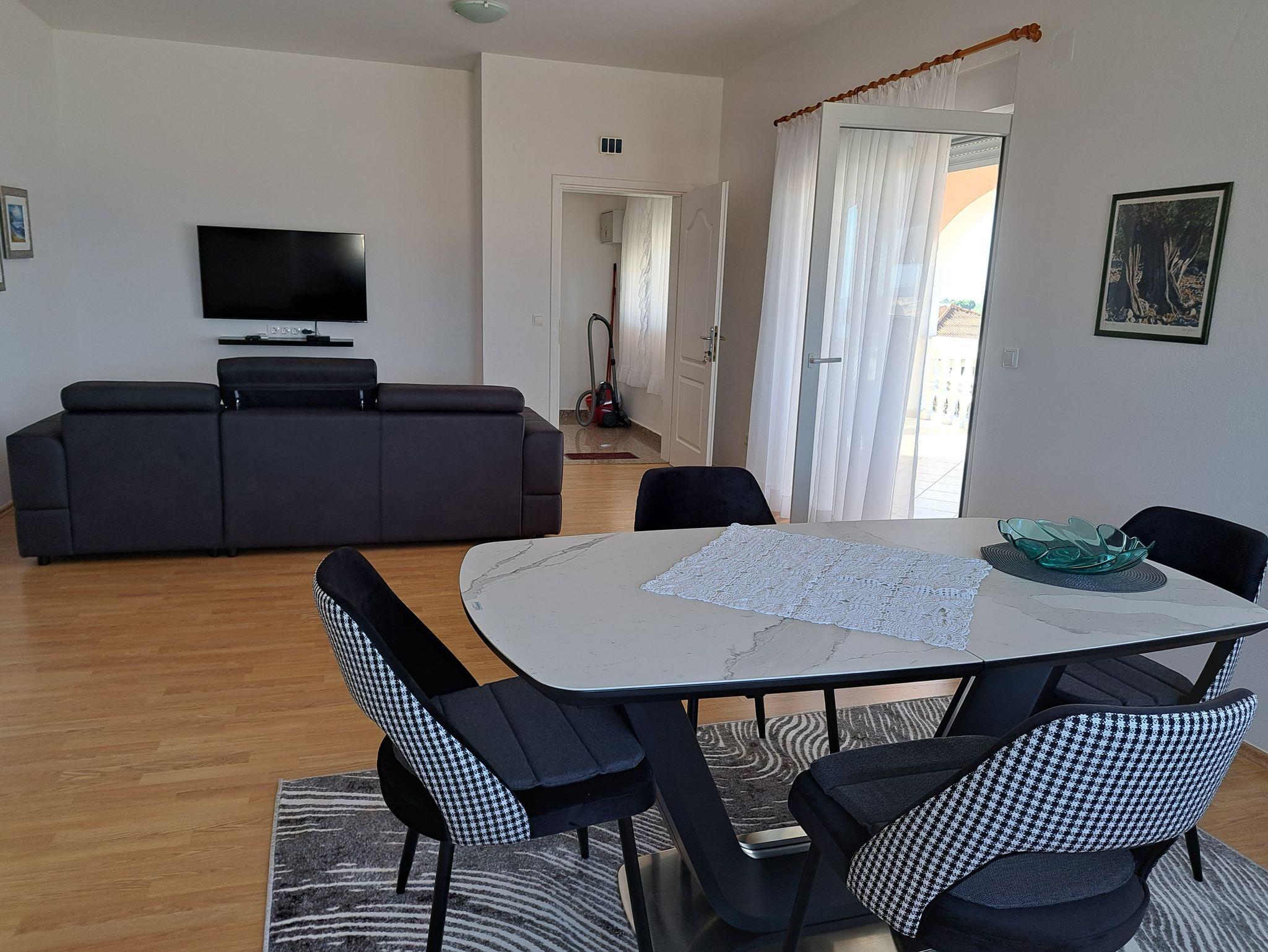 Ferienwohnung bietet Platz für 4 Gäste. Die Betten sind in Schlafzimmern, die es 2 gibt, innerhalb einer Gesamtfläche von 71m2, angeordnet. Die Gäste haben eine eigene Terrasse zur Verfügung, auf der sie in warmen Sommernächten genießen können. Das Apartment bietet Meerblick. Es ist erlaubt, Speisen auf dem Gemeinschafts-Grill vorzubereiten. IM PREIS INBEGRIFFEN: Kurtaxe, Endreinigung, Klimatisierung, Parkplatz, Internet, Bügeleisen, Bügelbrett, Föhn. Die Verfügbarkeit zusätzlicher Dienstleistungen in Ihrem reservierten Termin und die Preise derselben (falls nicht aufgeführt) müssen im Voraus überprüft werden. Zusätzliche Dienstleistungen die in der Zahlungsaufforderung nicht aufgeführt sind werden direkt beim Vermieter bezahlt, angenommen der Gast nutzt auch diese.
