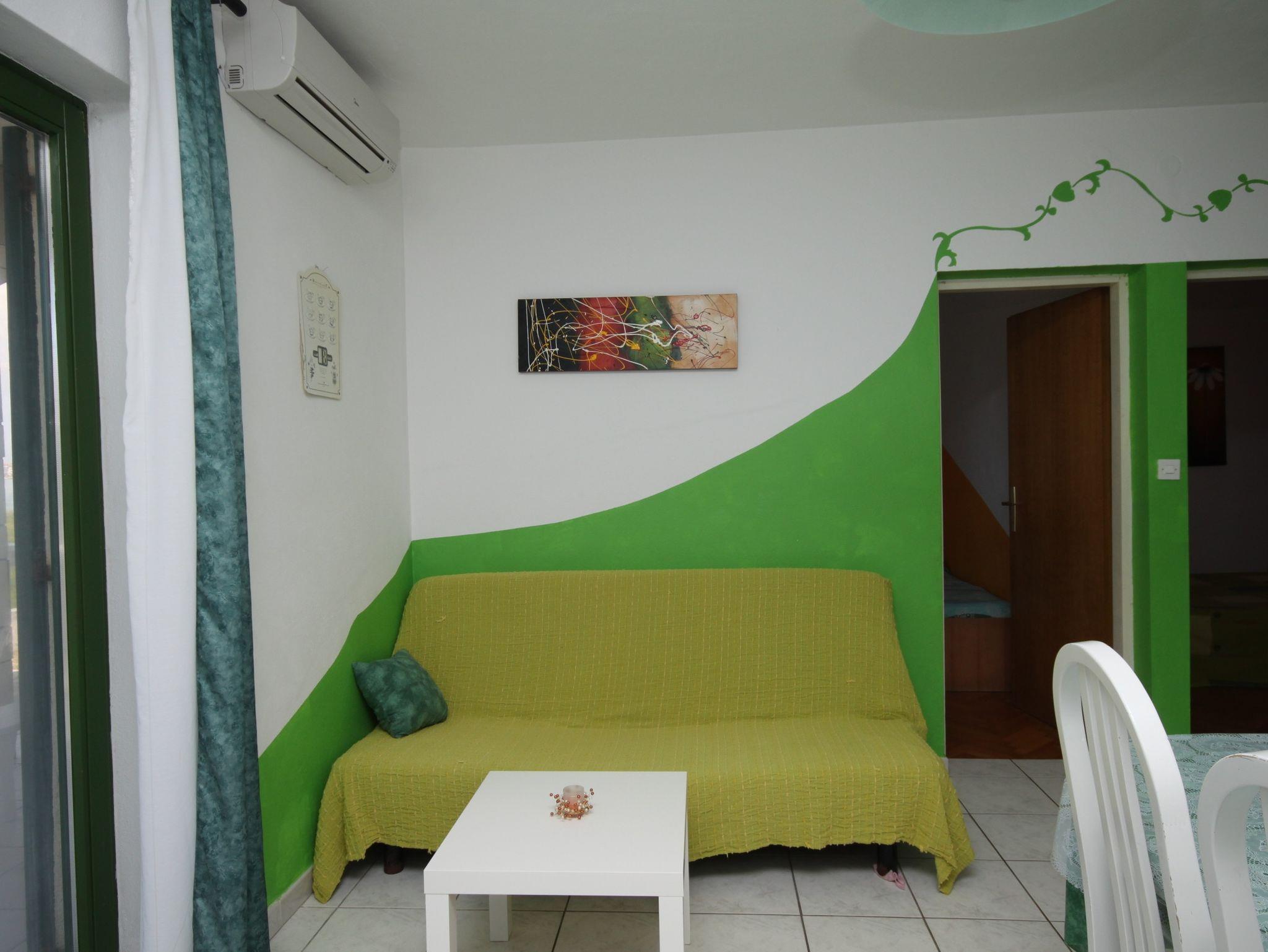 Ferienwohnung bietet Platz für 6 Gäste. Die Betten sind in Schlafzimmern, die es 2 gibt, und in Wohnzimmer, innerhalb einer Gesamtfläche von 43m2, angeordnet. Die Gäste haben eine eigene Terrasse zur Verfügung, auf der sie in warmen Sommernächten genießen können. Das Apartment bietet Meerblick. Es ist erlaubt, Speisen auf dem Gemeinschafts-Grill vorzubereiten. In der Unterkunftseinheit besteht die Möglichkeit des Mitbringens von Haustieren, und die Dienstleistung ist im Preis der Unterkunft enthalten. IM PREIS INBEGRIFFEN: Kurtaxe, Endreinigung, Klimatisierung, Parkplatz, Internet, Haustiere, Bügeleisen, Bügelbrett, Föhn. VERBINDLICHE ZUSÄTZLICHE KOSTEN: Aufzahlung für Kurzaufenthalte (prozentualer Zuschlag pro Nächtigungsanzahl: 30% - 1, 20% - 2, 10% - 3). UNVERBINDLICHE ZUSÄTZLICHE KOSTEN: Zusatzbett (5,00 € pro Nacht). Die Verfügbarkeit zusätzlicher Dienstleistungen in Ihrem reservierten Termin und die Preise derselben (falls nicht aufgeführt) müssen im Voraus überprüft werden. Zusätzliche Dienstleistungen die in der Zahlungsaufforderung nicht aufgeführt sind werden direkt beim Vermieter bezahlt, angenommen der Gast nutzt auch diese.