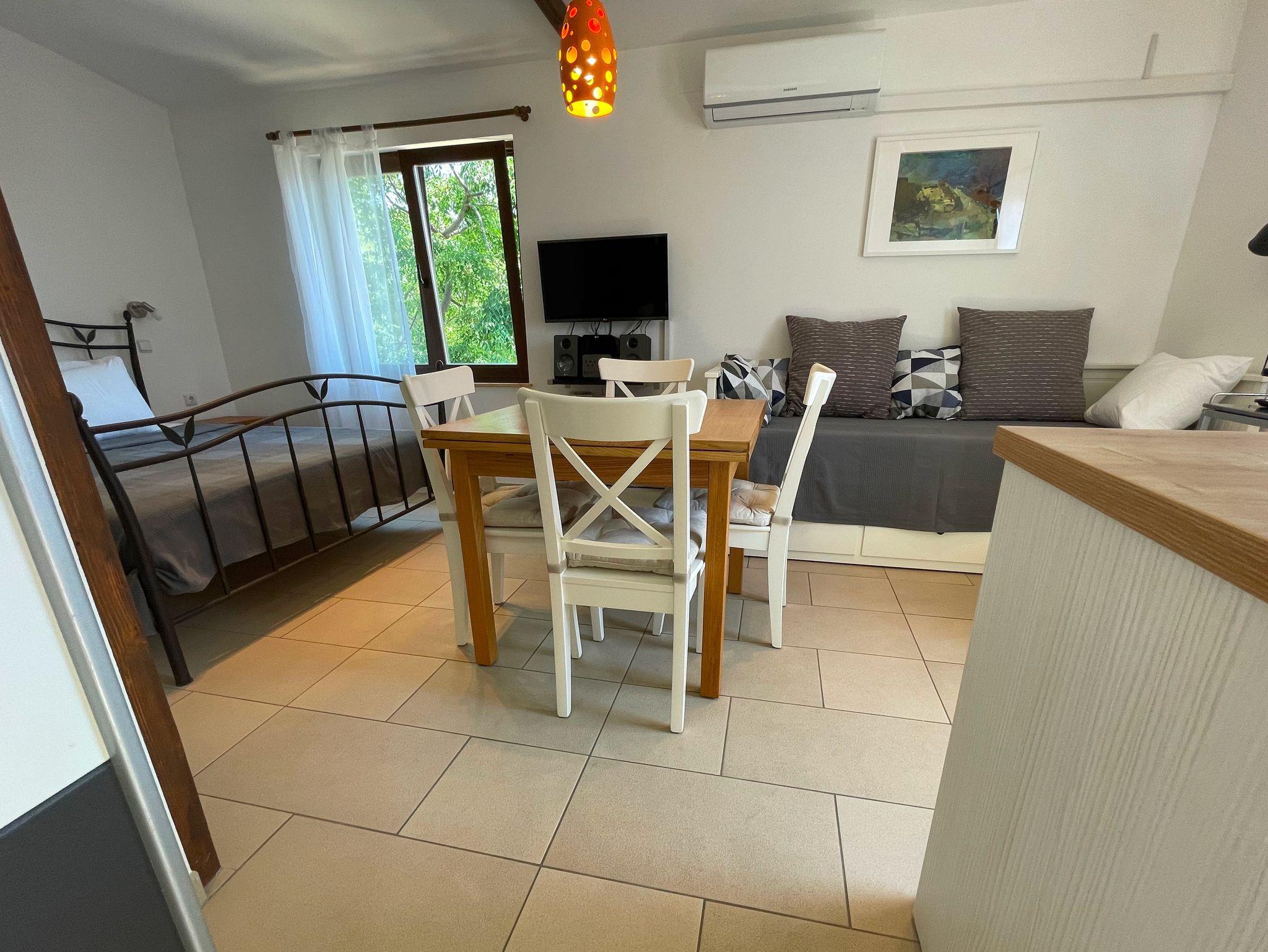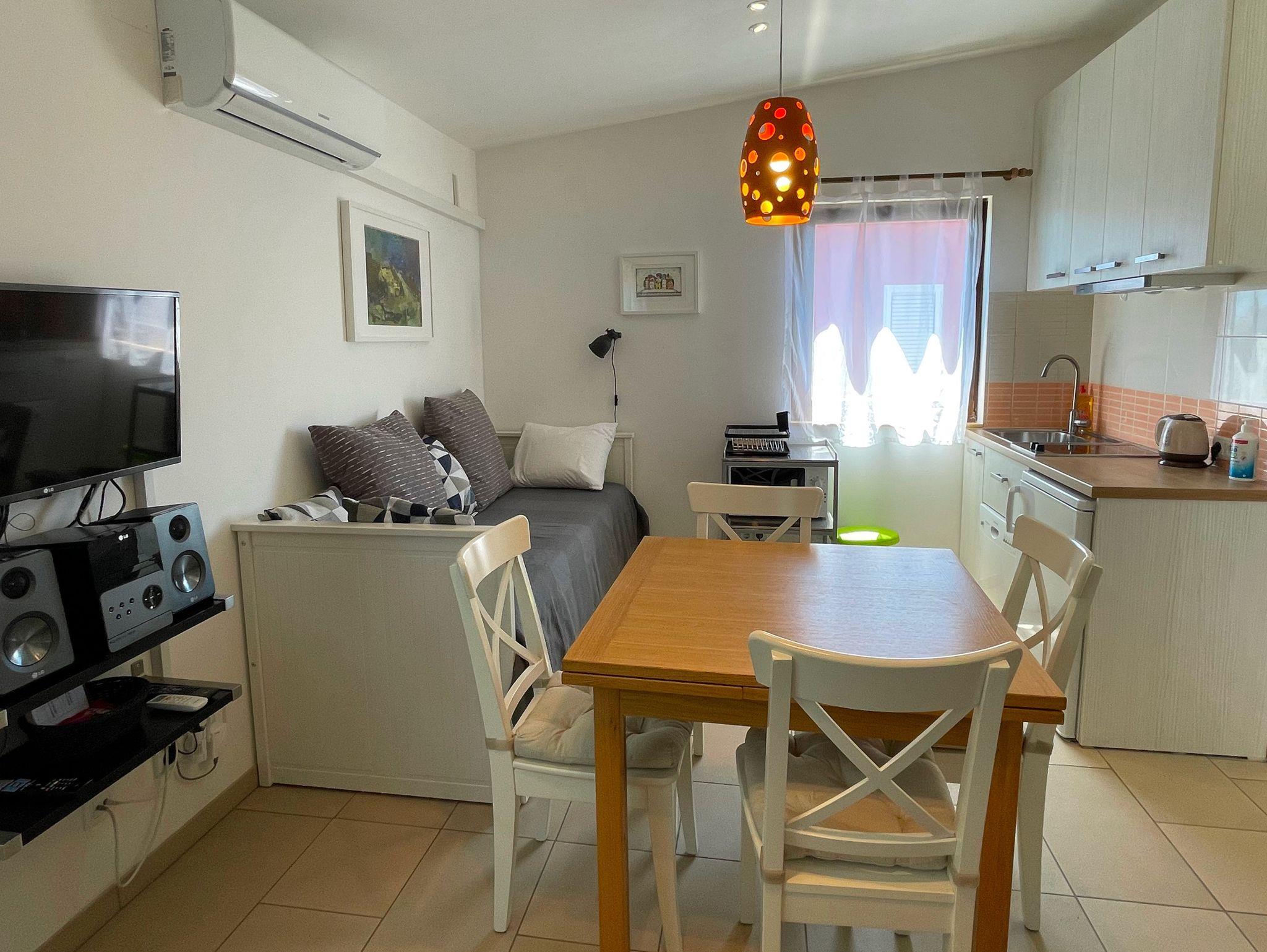 Studio bietet Platz für 3 Gäste. Die Betten sind in Schlafzimmern, die es 1 gibt, innerhalb einer Gesamtfläche von 25m2, angeordnet. Es ist erlaubt, Speisen auf dem Gemeinschafts-Grill vorzubereiten. In der Unterkunftseinheit besteht die Möglichkeit des Mitbringens von Haustieren, und die Dienstleistung ist im Preis der Unterkunft enthalten. Die reservierte Unterkunftseinheit hat keinen Balkon und keine Terrasse. IM PREIS INBEGRIFFEN: Kurtaxe, Endreinigung, Klimatisierung, Parkplatz, Internet, Haustiere, Zusatzbett, Bügeleisen, Bügelbrett, Föhn. Die Verfügbarkeit zusätzlicher Dienstleistungen in Ihrem reservierten Termin und die Preise derselben (falls nicht aufgeführt) müssen im Voraus überprüft werden. Zusätzliche Dienstleistungen die in der Zahlungsaufforderung nicht aufgeführt sind werden direkt beim Vermieter bezahlt, angenommen der Gast nutzt auch diese. Ermäßigung auf den Grundpreis: Gratistag 14=13 (bei einem Aufenthalt von 14 Tagen oder mehr erhalten Sie einen Gratistag für den Aufenthalt bis 31.12.26).