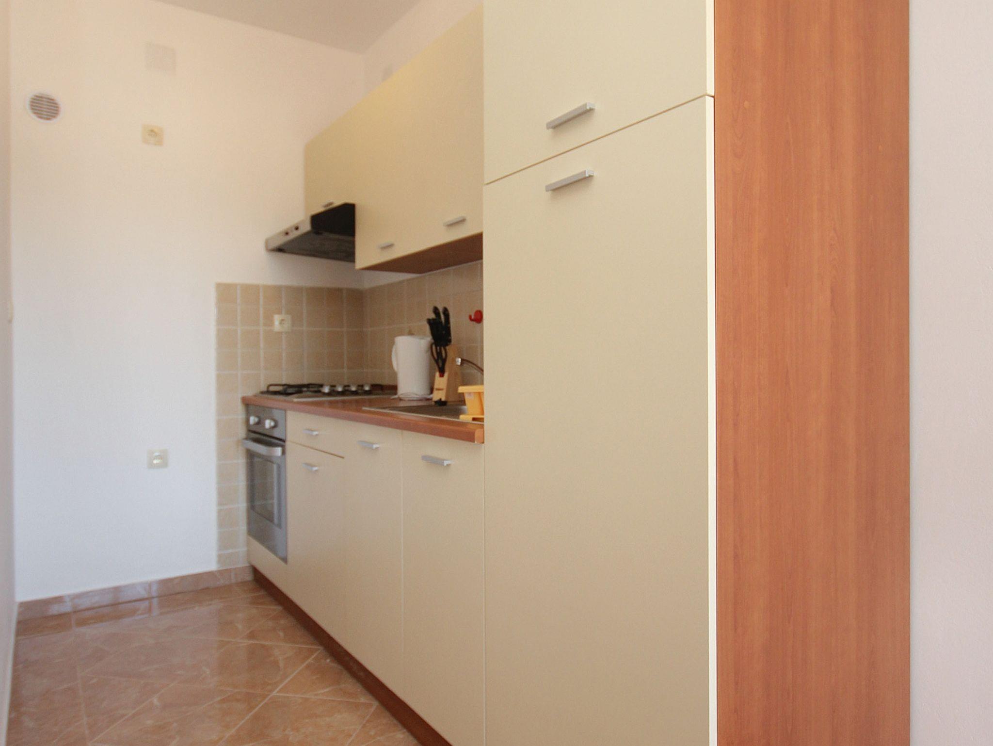 Ferienwohnung bietet Platz für 5 Gäste. Die Betten sind in Schlafzimmern, die es 2 gibt, innerhalb einer Gesamtfläche von 52m2, angeordnet. Die Gäste haben eine eigene Terrasse zur Verfügung, auf der sie in warmen Sommernächten genießen können. Das Apartment bietet Meerblick. Es ist erlaubt, Speisen auf dem Gemeinschafts-Grill vorzubereiten. IM PREIS INBEGRIFFEN: Kurtaxe, Endreinigung, Parkplatz, Internet, Bügeleisen, Bügelbrett. VERBINDLICHE ZUSÄTZLICHE KOSTEN: Aufzahlung für Kurzaufenthalte (prozentualer Zuschlag pro Nächtigungsanzahl: 30% - 1, 20% - 2, 10% - 3). UNVERBINDLICHE ZUSÄTZLICHE KOSTEN: Klimatisierung (10,00 € pro Nacht). Die Verfügbarkeit zusätzlicher Dienstleistungen in Ihrem reservierten Termin und die Preise derselben (falls nicht aufgeführt) müssen im Voraus überprüft werden. Zusätzliche Dienstleistungen die in der Zahlungsaufforderung nicht aufgeführt sind werden direkt beim Vermieter bezahlt, angenommen der Gast nutzt auch diese. Ermäßigung auf den Grundpreis: Gratistag 14=13 (bei einem Aufenthalt von 14 Tagen oder mehr erhalten Sie einen Gratistag für den Aufenthalt bis 31.12.26).