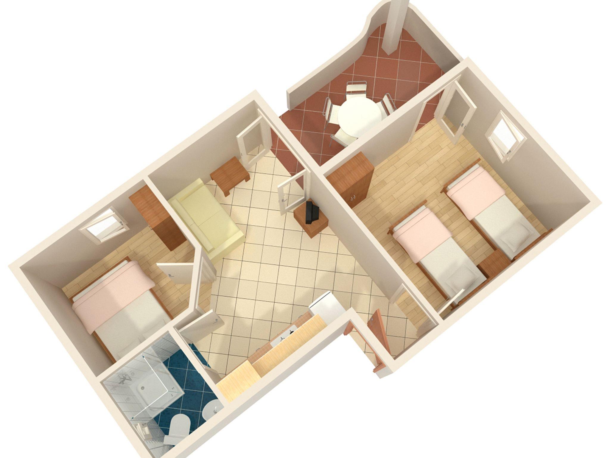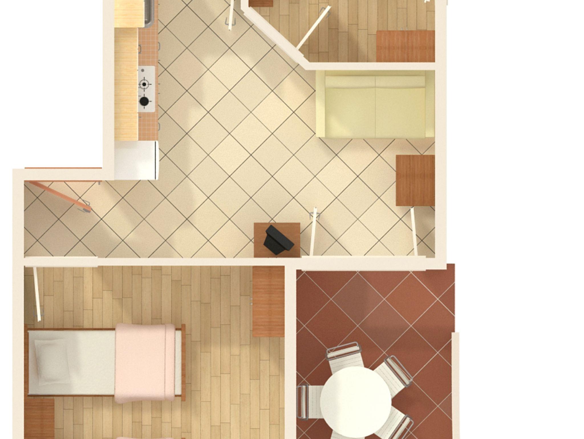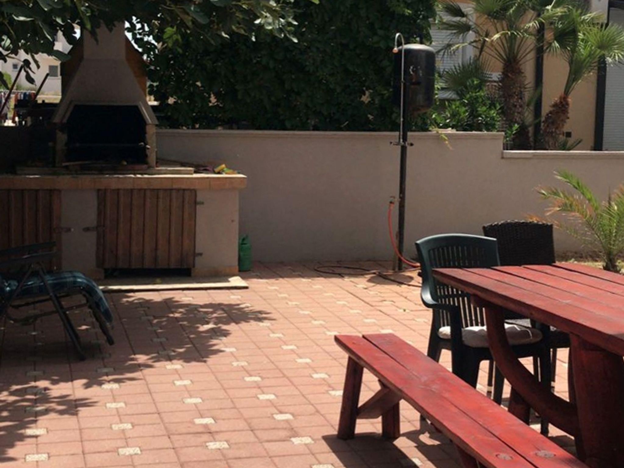 Ferienwohnung bietet Platz für 6 Gäste. Die Betten sind in Schlafzimmern, die es 2 gibt, und in Wohnzimmer, innerhalb einer Gesamtfläche von 37m2, angeordnet. Die Gäste haben eine eigene Terrasse zur Verfügung, auf der sie in warmen Sommernächten genießen können. Es ist erlaubt, Speisen auf dem Gemeinschafts-Grill vorzubereiten. In der Unterkunftseinheit besteht die Möglichkeit des Mitbringens von Haustieren gegen Aufpreis. IM PREIS INBEGRIFFEN: Kurtaxe, Endreinigung, Klimatisierung, Parkplatz, Internet, Kinderbett, Bügelbrett, Föhn. VERBINDLICHE ZUSÄTZLICHE KOSTEN: Aufzahlung für Kurzaufenthalte (prozentualer Zuschlag pro Nächtigungsanzahl: 30% - 1, 20% - 2, 10% - 3). UNVERBINDLICHE ZUSÄTZLICHE KOSTEN: Haustiere (5,00 € pro Nacht). Die Verfügbarkeit zusätzlicher Dienstleistungen in Ihrem reservierten Termin und die Preise derselben (falls nicht aufgeführt) müssen im Voraus überprüft werden. Zusätzliche Dienstleistungen die in der Zahlungsaufforderung nicht aufgeführt sind werden direkt beim Vermieter bezahlt, angenommen der Gast nutzt auch diese.
