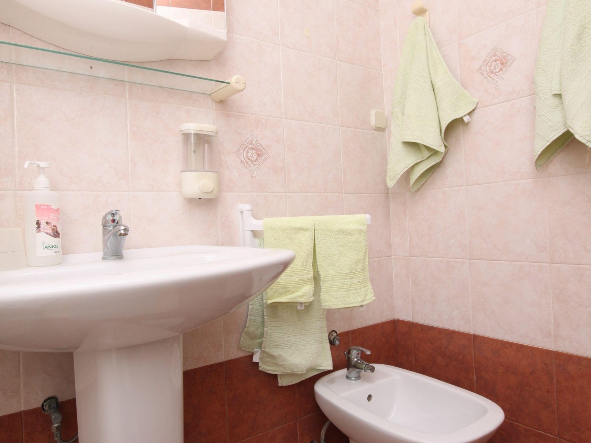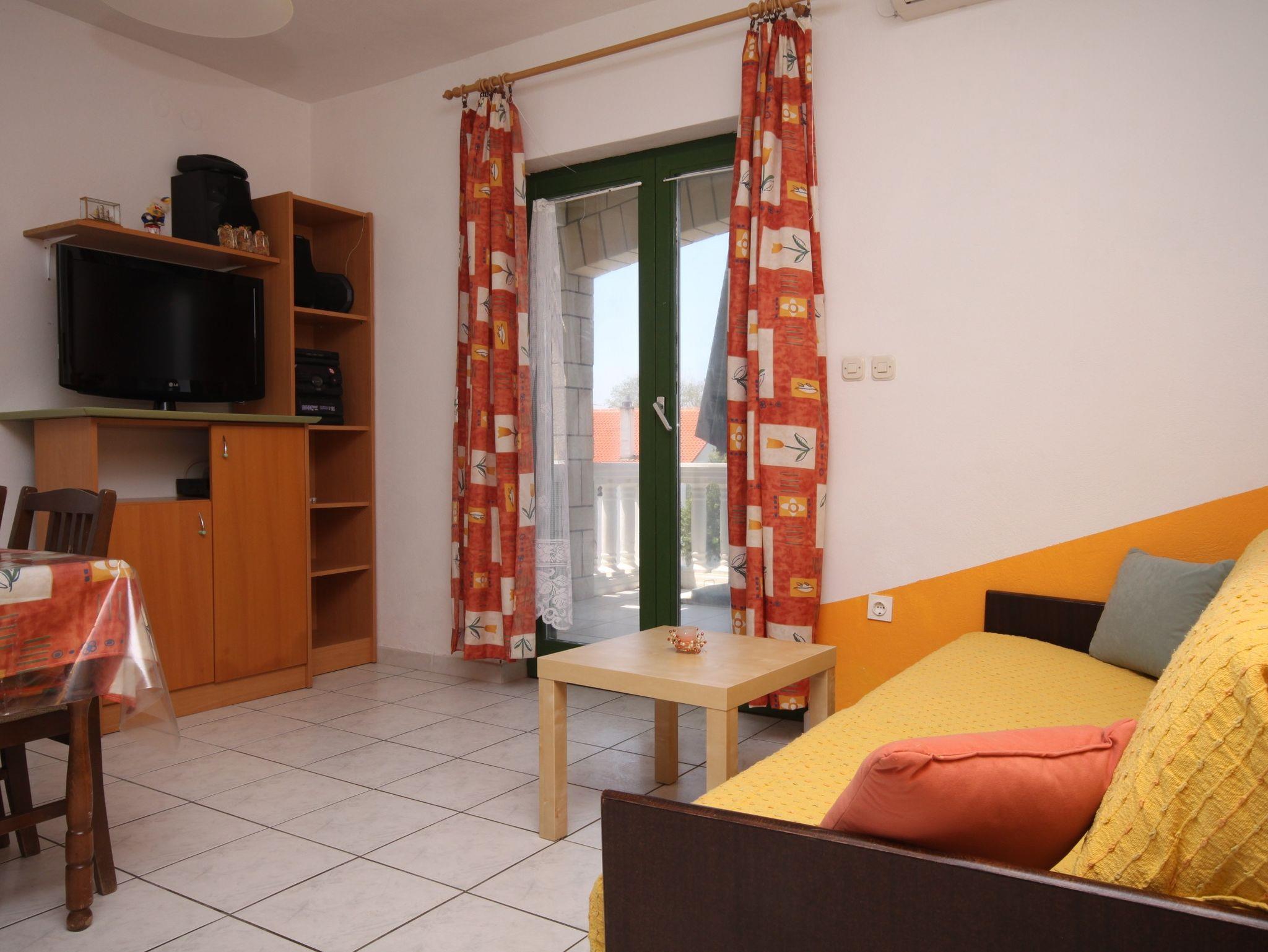 Ferienwohnung bietet Platz für 6 Gäste. Die Betten sind in Schlafzimmern, die es 2 gibt, und in Wohnzimmer, innerhalb einer Gesamtfläche von 43m2, angeordnet. Die Gäste haben eine eigene Terrasse zur Verfügung, auf der sie in warmen Sommernächten genießen können. Das Apartment bietet Meerblick. Es ist erlaubt, Speisen auf dem Gemeinschafts-Grill vorzubereiten. In der Unterkunftseinheit besteht die Möglichkeit des Mitbringens von Haustieren, und die Dienstleistung ist im Preis der Unterkunft enthalten. IM PREIS INBEGRIFFEN: Kurtaxe, Endreinigung, Klimatisierung, Parkplatz, Internet, Haustiere, Bügeleisen, Bügelbrett, Föhn. VERBINDLICHE ZUSÄTZLICHE KOSTEN: Aufzahlung für Kurzaufenthalte (prozentualer Zuschlag pro Nächtigungsanzahl: 30% - 1, 20% - 2, 10% - 3). UNVERBINDLICHE ZUSÄTZLICHE KOSTEN: Zusatzbett (5,00 € pro Nacht). Die Verfügbarkeit zusätzlicher Dienstleistungen in Ihrem reservierten Termin und die Preise derselben (falls nicht aufgeführt) müssen im Voraus überprüft werden. Zusätzliche Dienstleistungen die in der Zahlungsaufforderung nicht aufgeführt sind werden direkt beim Vermieter bezahlt, angenommen der Gast nutzt auch diese.