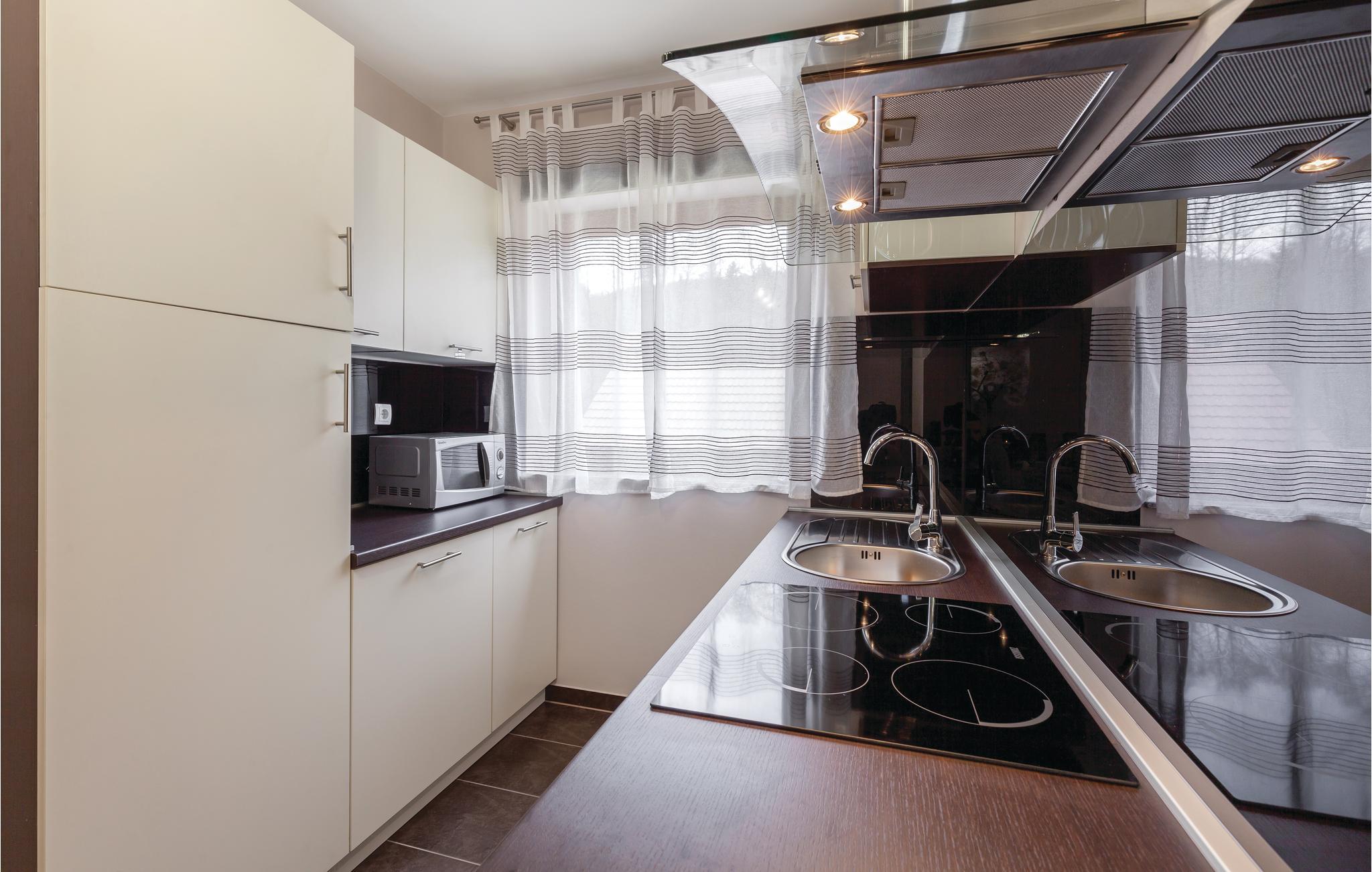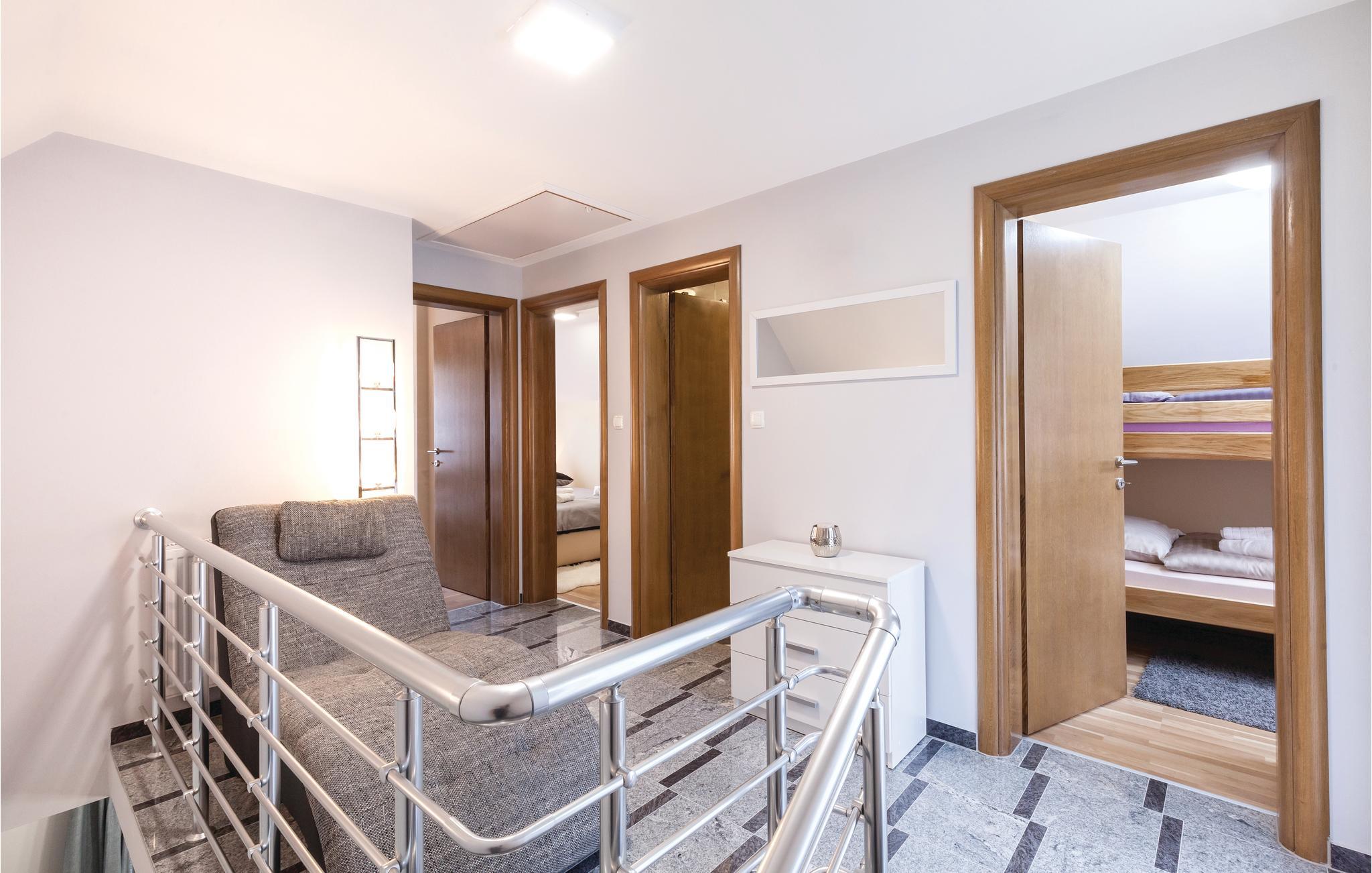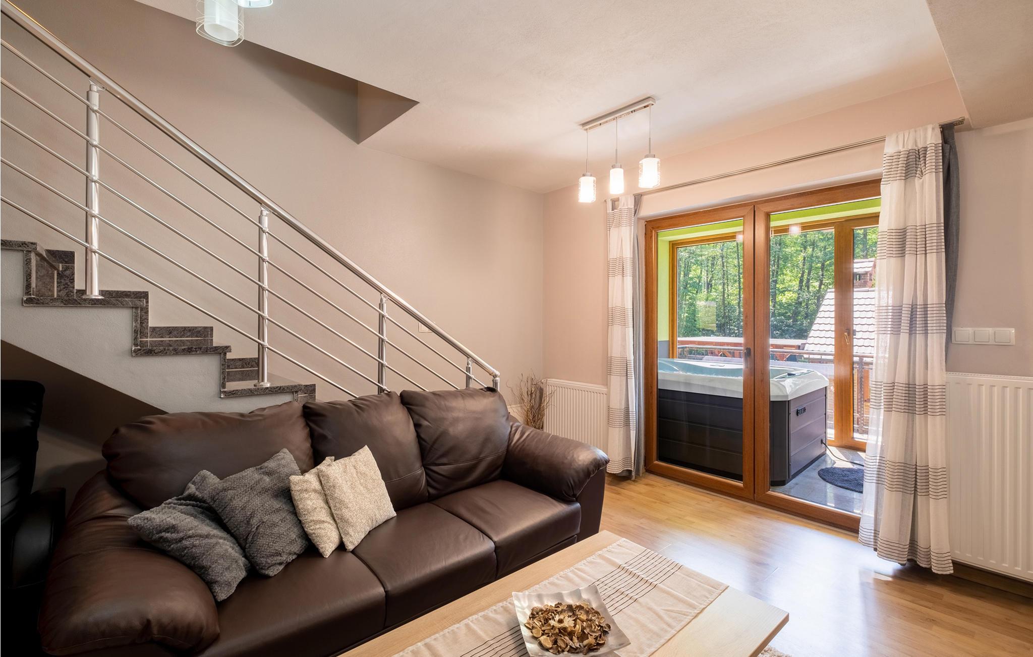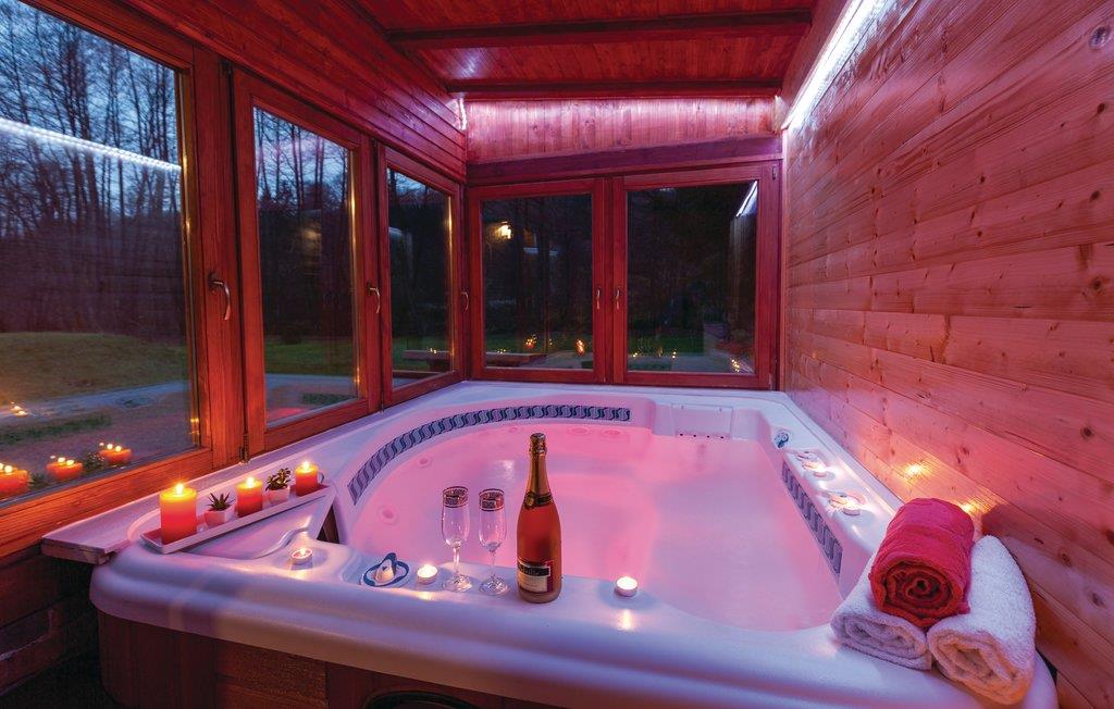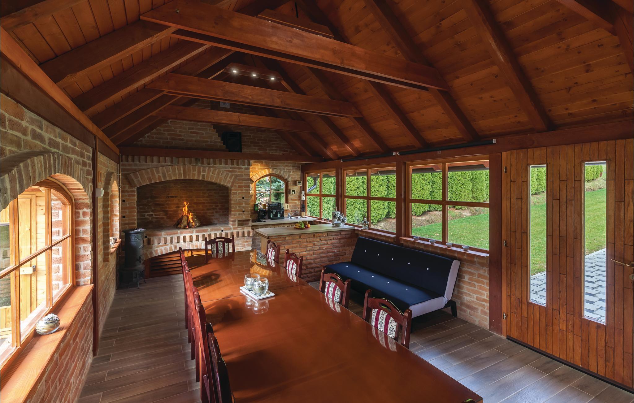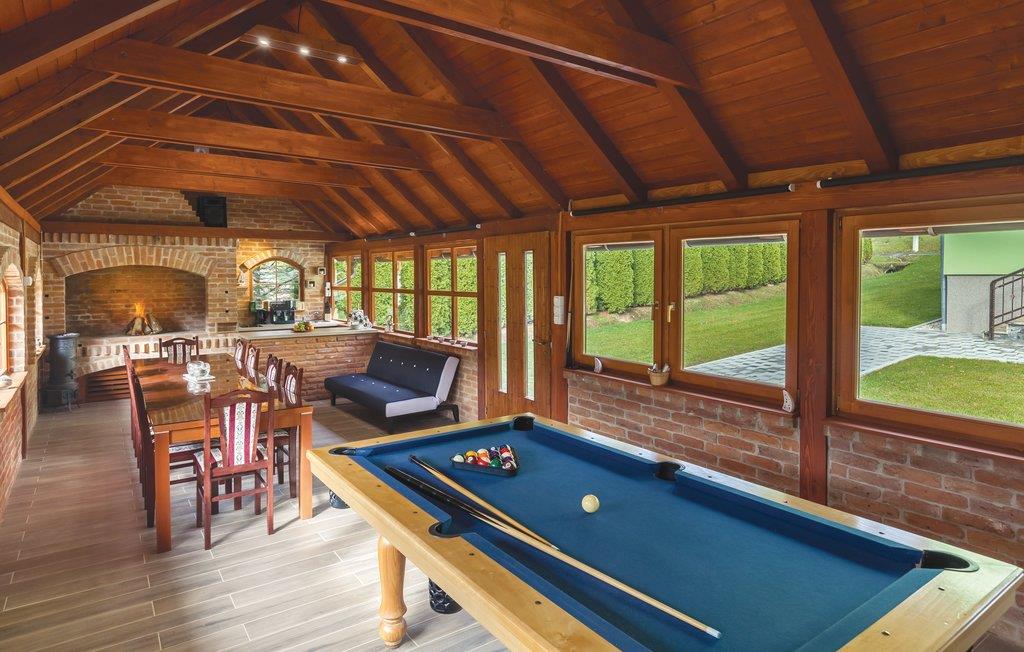 Fra dette dejlige feriehus med pool har I en vidunderlig udsigt over landskabet og naturen. Huset har en åben hems med blik på stuen. Slap af i whirlpoolen eller i den finske sauna. I huset er der et opholdsrum, hvor der er plads til 16 personer med billard, bordfodbold, et stort fjernsyn med premium soundsytem og en stor åben pejs. Vi kan anbefale et besøg af det enestående geologiske naturmindesmærke Rupnica og Arboretum Liscine med en utrolig rigdom af forskellige arter af træer og buske. En 400 m lang grusvej fører til huset. Den laveste lofthøjde i siderne er på 120 cm. Nabohuse CC020 og CCS022.