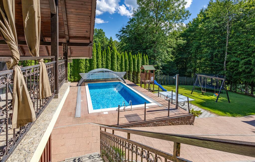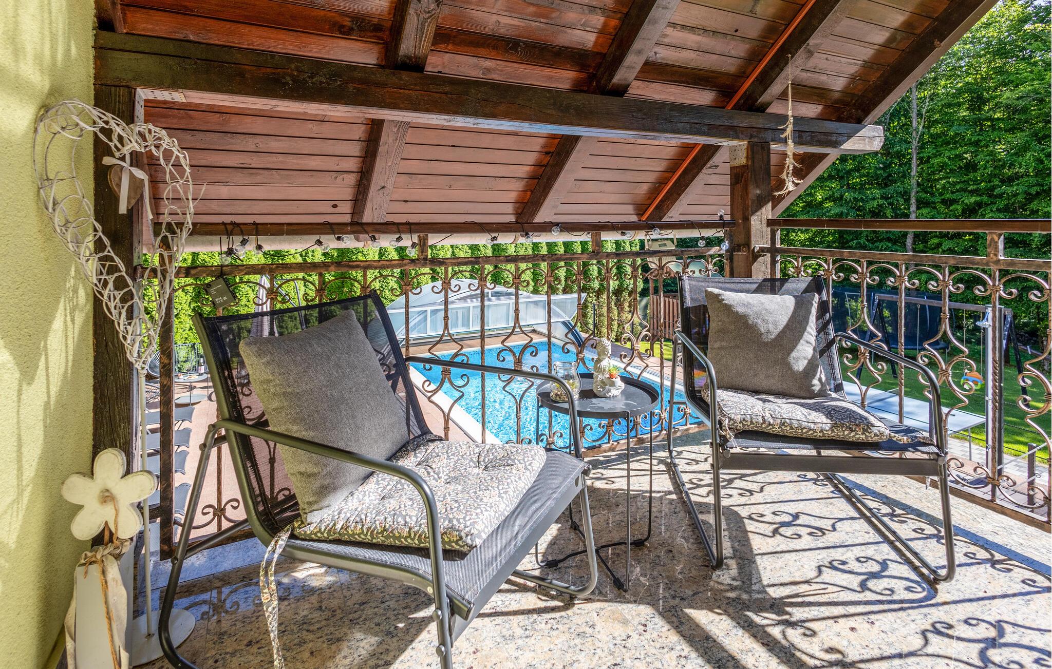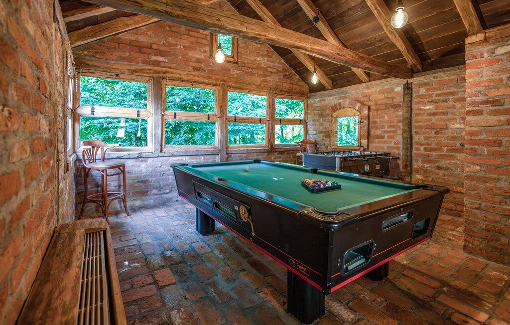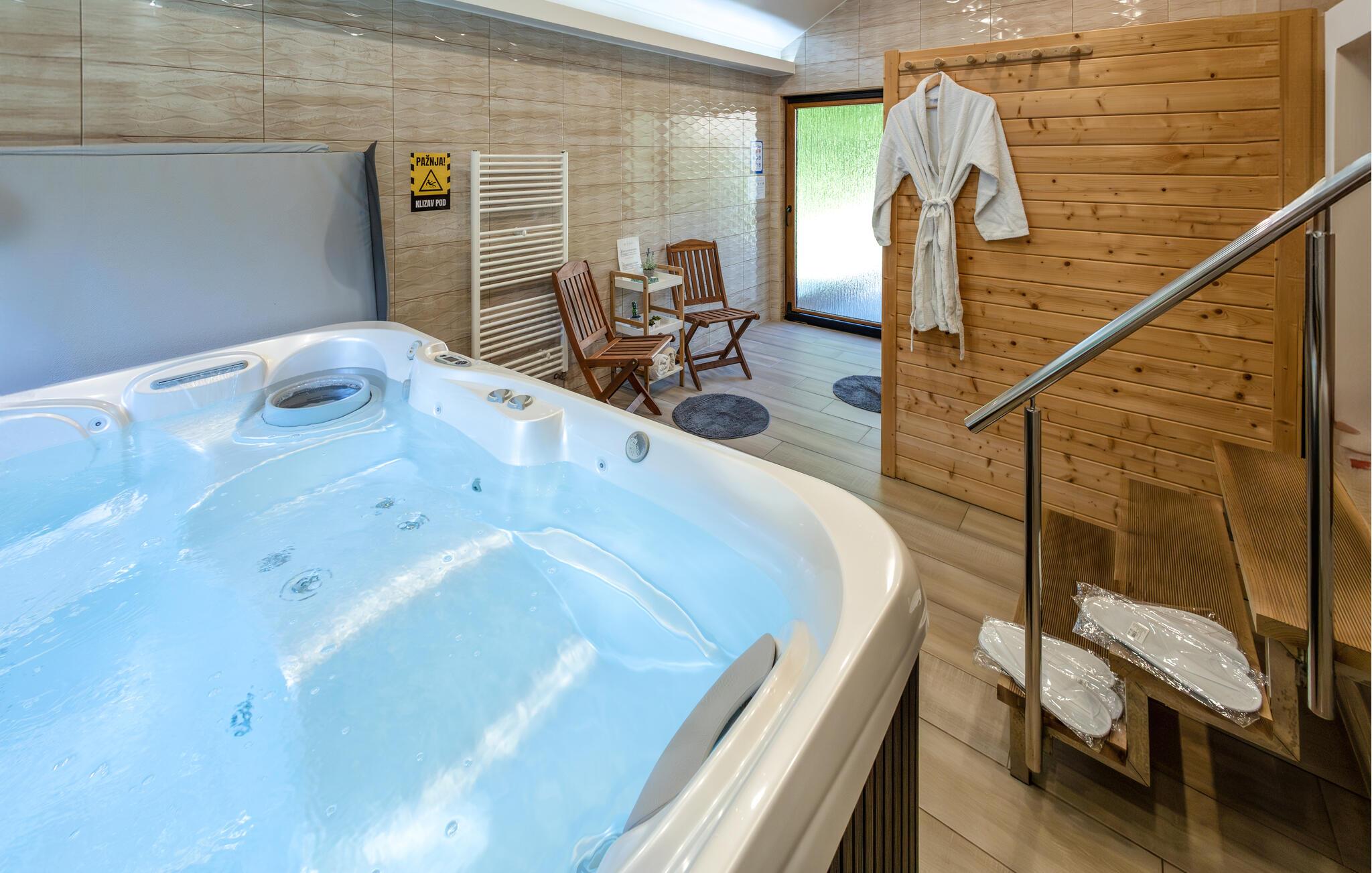 Tilbring en idyllisk ferie i hjertet af Papuk Nature Park. Dette smukke 8-personers feriehus har en privat pool, 6-personers boblebad og sin egen sauna. Loungen er indrettet i traditionel slavisk stil og har et stort tv og en åben pejs. Huset har et beboelsesareal på 100 m², og grunden er hele 900 m² stor, hvor du kan gøre dig komfortabel på liggestole og grille om aftenen.