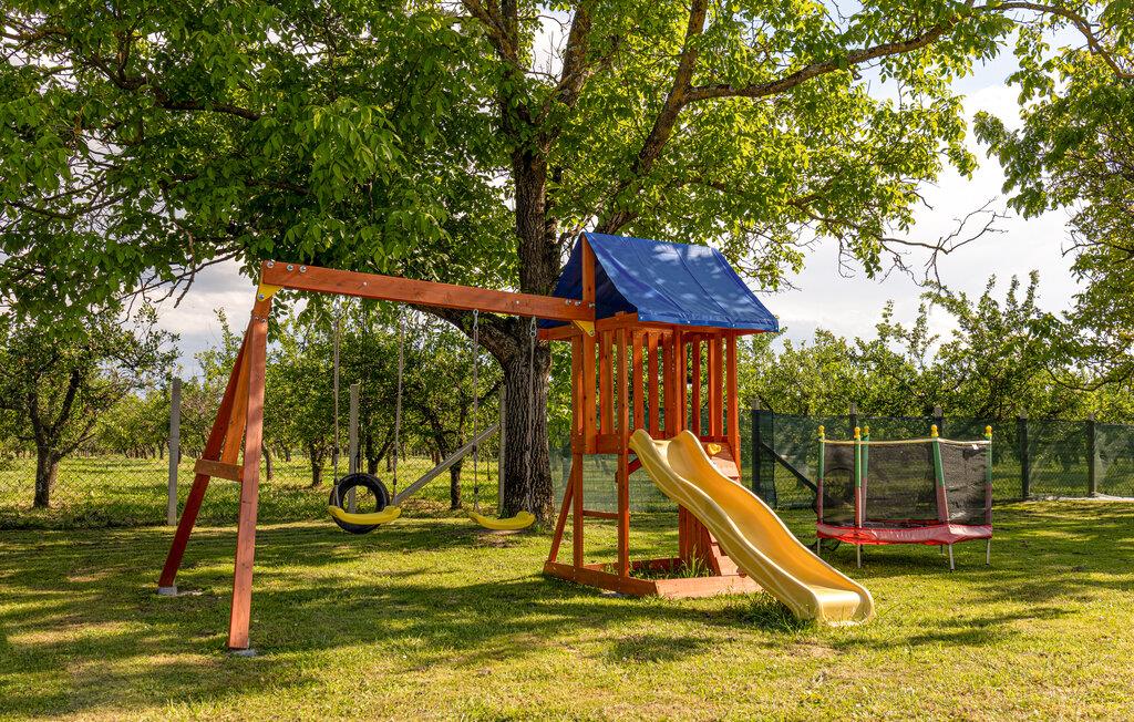 Det børnevenlige hus ligger ud til den slaviske slette i et smukt landskab, så her kan I nyde en enestående udsigt. Har I planer om en tur med jeres gode venner, er der også sengepladser nok til to-tre familier. Indretningen er varm og hjemlig med fine detaljer i form af trælofterne, trappen og det minimalistiske køkken. Nyd dagens måltider sammen i alrummet, mens ilden knitrer i brændeovnen og læn jer senere godt tilbage i den komfortable sofa.