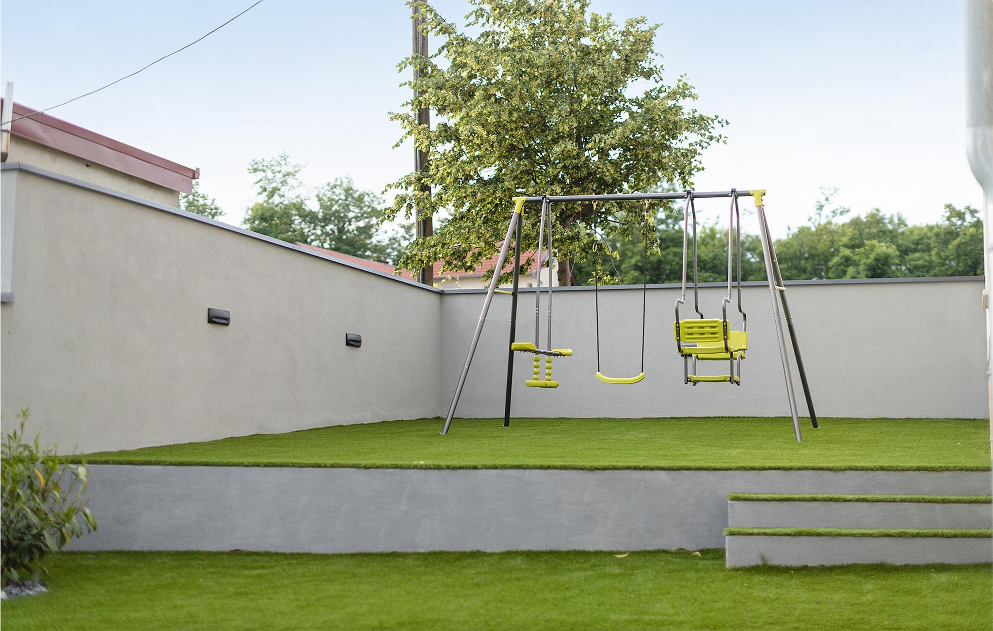 Husets højdepunkt er den smukt anlagte have. Der er utallige måder at bruge jeres tid på her. I bliver sikkert straks tiltrukket af det fantastiske poolområde. Her kan I svømme et par runder om morgenen, mens familien stadig sover. Men også om dagen tilbyder liggestolene og den betagende udsigt fra poolen over vinstokkene og det grønne landskab jer afslapning og fred. Ud over en legeplads til jeres børn og et originalt opholdsområde, giver udendørsområdet med et stort poolhus rammerne for hyggeligt samvær.