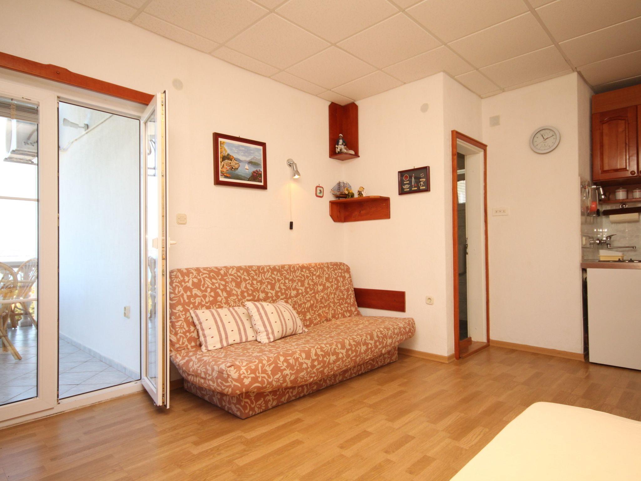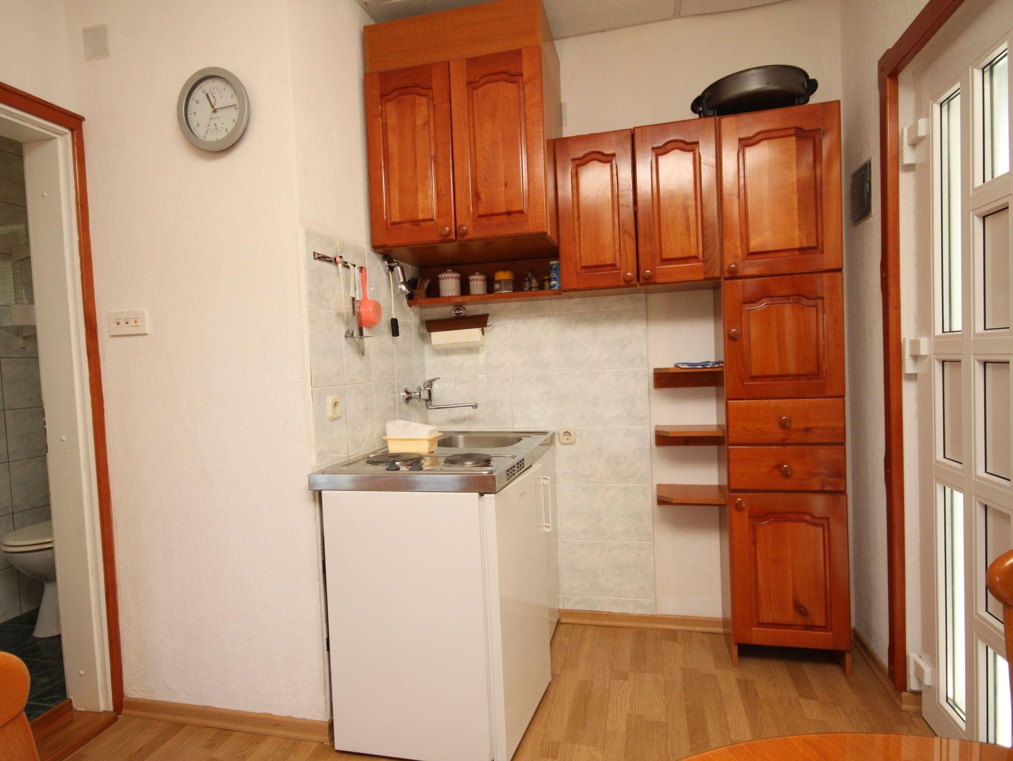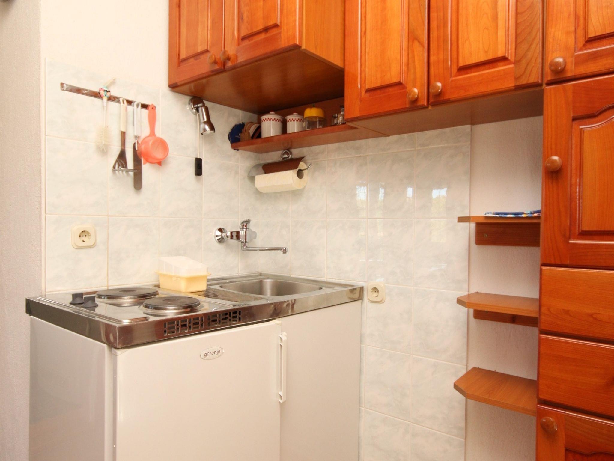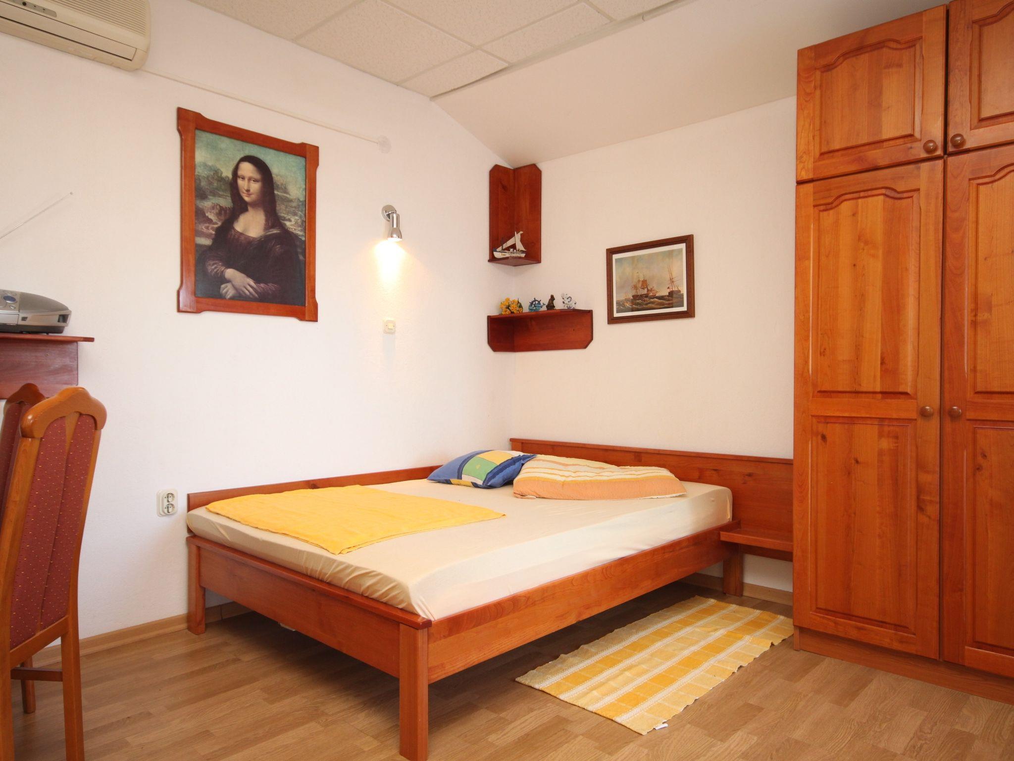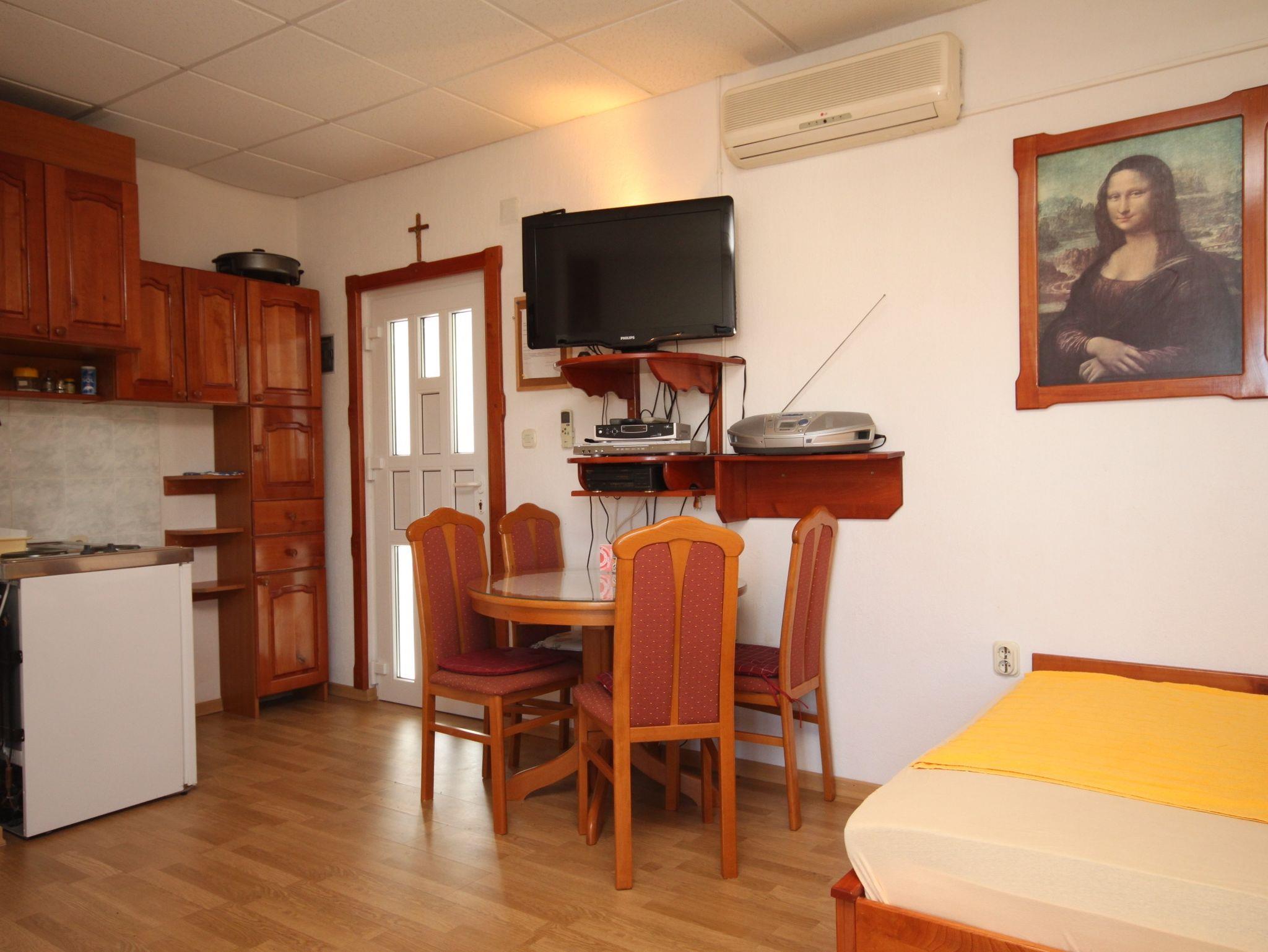 Studio bietet Platz für 3 Gäste. Die Betten sind in Schlafzimmern, die es 1 gibt, innerhalb einer Gesamtfläche von 19m2, angeordnet. Die Gäste haben eine eigene Terrasse zur Verfügung, auf der sie in warmen Sommernächten genießen können. Das Studio-Apartment bietet Meerblick. Für vollen Genuss und Entspannung gibt es einen privaten Grill für Gäste dieser Unterkunft. IM PREIS INBEGRIFFEN: Kurtaxe, Endreinigung, Klimatisierung, Parkplatz, Internet, Wäschewaschen, Kinderbett, Bügeleisen, Bügelbrett, Föhn. VERBINDLICHE ZUSÄTZLICHE KOSTEN: Aufzahlung für Kurzaufenthalte (prozentualer Zuschlag pro Nächtigungsanzahl: 30% - 1, 20% - 2, 10% - 3). Die Verfügbarkeit zusätzlicher Dienstleistungen in Ihrem reservierten Termin und die Preise derselben (falls nicht aufgeführt) müssen im Voraus überprüft werden. Zusätzliche Dienstleistungen die in der Zahlungsaufforderung nicht aufgeführt sind werden direkt beim Vermieter bezahlt, angenommen der Gast nutzt auch diese.