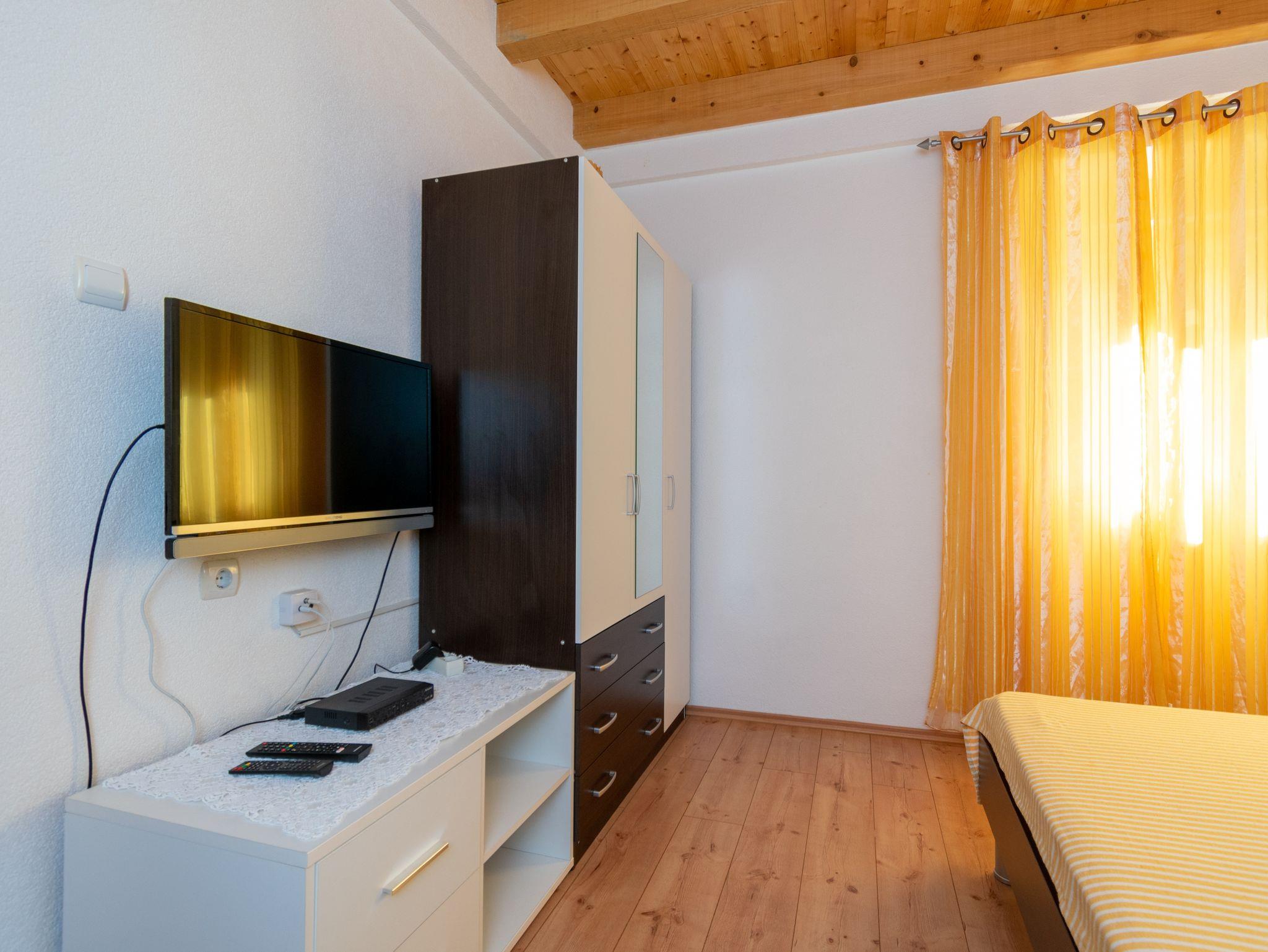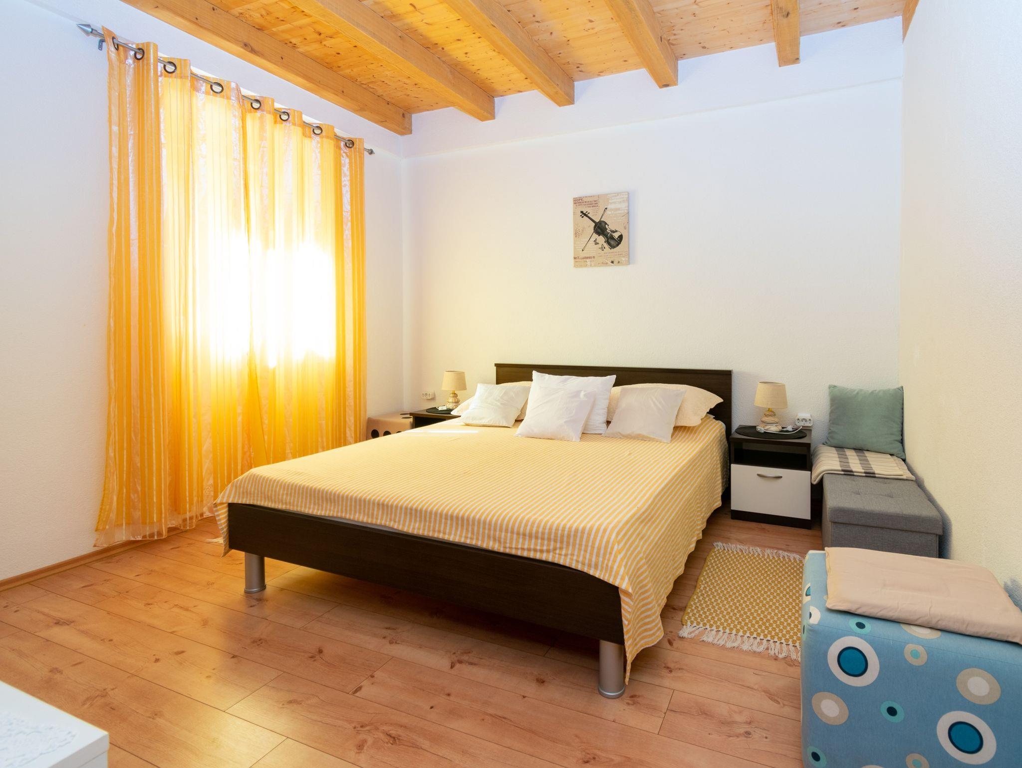 Ferienwohnung bietet Platz für 4 Gäste. Die Betten sind in Schlafzimmern, die es 2 gibt, innerhalb einer Gesamtfläche von 50m2, angeordnet. Die Gäste haben eine eigene Terrasse zur Verfügung, auf der sie in warmen Sommernächten genießen können. Das Apartment bietet Meerblick. Für vollen Genuss und Entspannung gibt es einen privaten Grill für Gäste dieser Unterkunft. IM PREIS INBEGRIFFEN: Kurtaxe, Endreinigung, Klimatisierung, Parkplatz, Internet, Bügeleisen, Bügelbrett, Föhn. Die Verfügbarkeit zusätzlicher Dienstleistungen in Ihrem reservierten Termin und die Preise derselben (falls nicht aufgeführt) müssen im Voraus überprüft werden. Zusätzliche Dienstleistungen die in der Zahlungsaufforderung nicht aufgeführt sind werden direkt beim Vermieter bezahlt, angenommen der Gast nutzt auch diese.