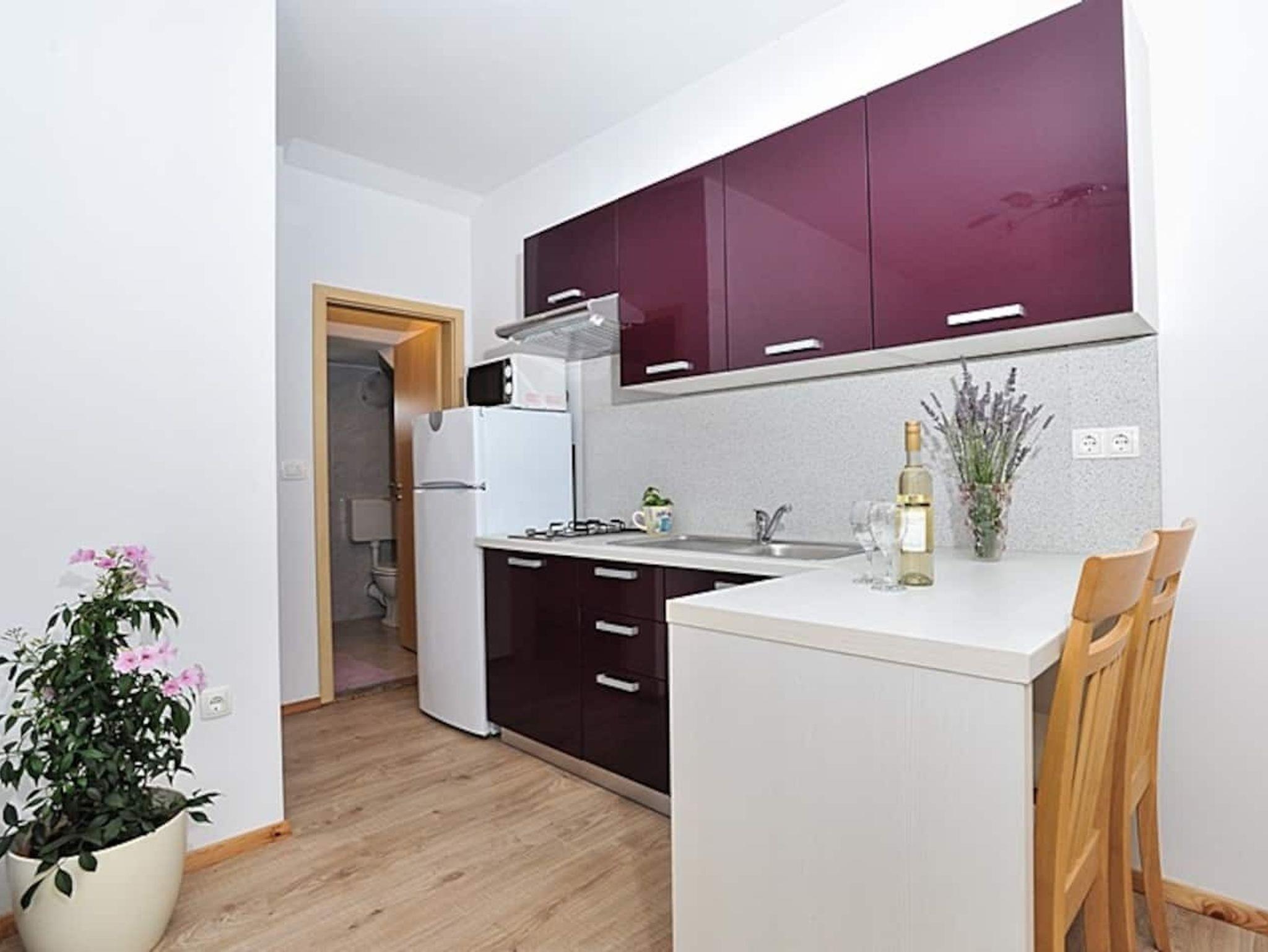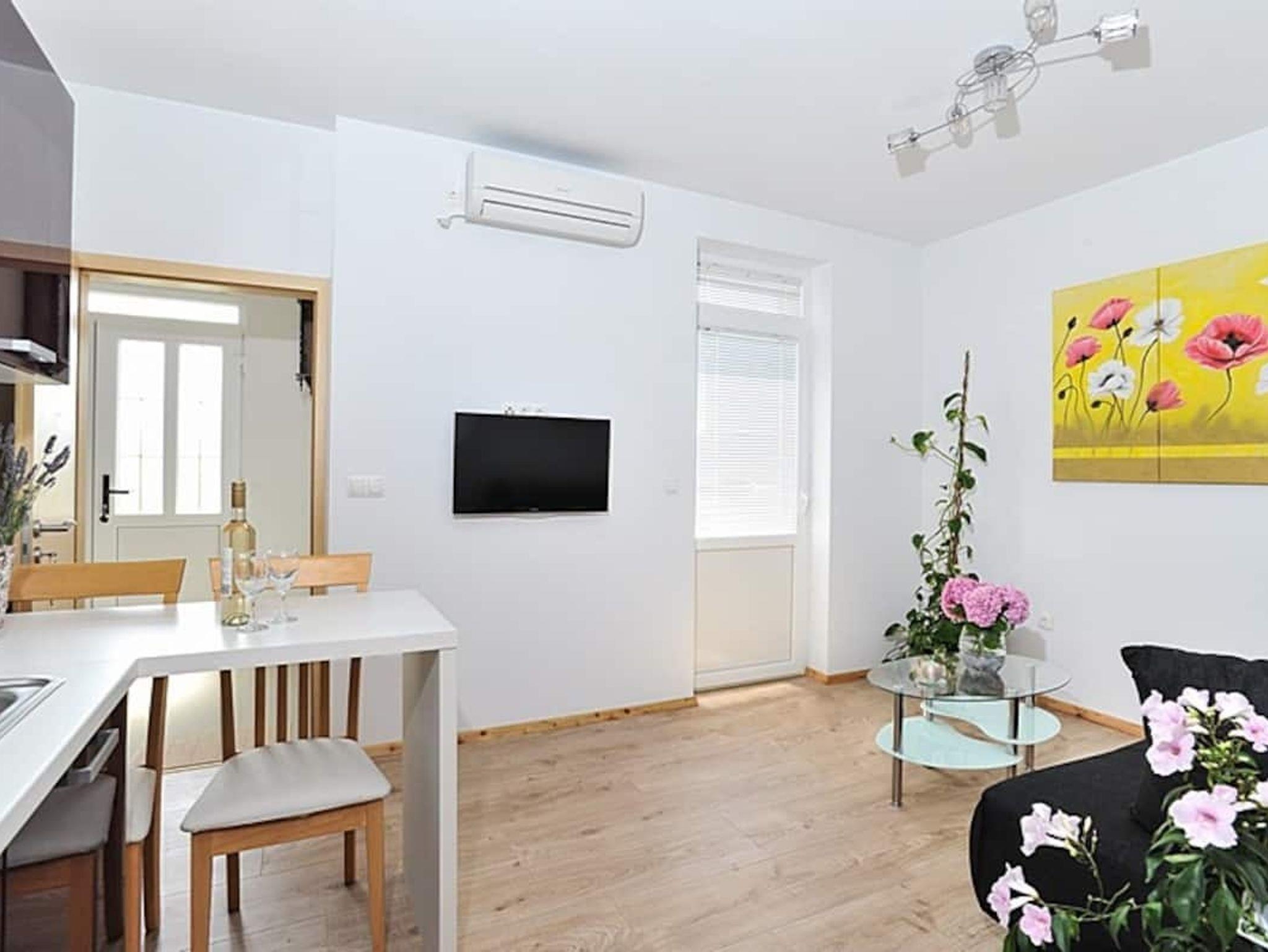Ferienwohnung bietet Platz für 4 Gäste. Die Betten sind in Schlafzimmern, die es 1 gibt, und in Wohnzimmer, innerhalb einer Gesamtfläche von 39m2, angeordnet. Die Gäste haben eine eigene Terrasse zur Verfügung, auf der sie in warmen Sommernächten genießen können. Das Apartment bietet Meerblick. Es ist erlaubt, Speisen auf dem Gemeinschafts-Grill vorzubereiten. IM PREIS INBEGRIFFEN: Kurtaxe, Endreinigung, Klimatisierung, Parkplatz, Internet, Wäschewaschen, Kinderbett, Bügeleisen, Föhn. VERBINDLICHE ZUSÄTZLICHE KOSTEN: Aufzahlung für Kurzaufenthalte (prozentualer Zuschlag pro Nächtigungsanzahl: 30% - 1, 20% - 2, 10% - 3). UNVERBINDLICHE ZUSÄTZLICHE KOSTEN: Bootsanlegeplatz (20,00 € pro Nacht). Die Verfügbarkeit zusätzlicher Dienstleistungen in Ihrem reservierten Termin und die Preise derselben (falls nicht aufgeführt) müssen im Voraus überprüft werden. Zusätzliche Dienstleistungen die in der Zahlungsaufforderung nicht aufgeführt sind werden direkt beim Vermieter bezahlt, angenommen der Gast nutzt auch diese. Ermäßigung auf den Grundpreis: Gratistag 14=13 (bei einem Aufenthalt von 14 Tagen oder mehr erhalten Sie einen Gratistag für den Aufenthalt bis 31.12.26).