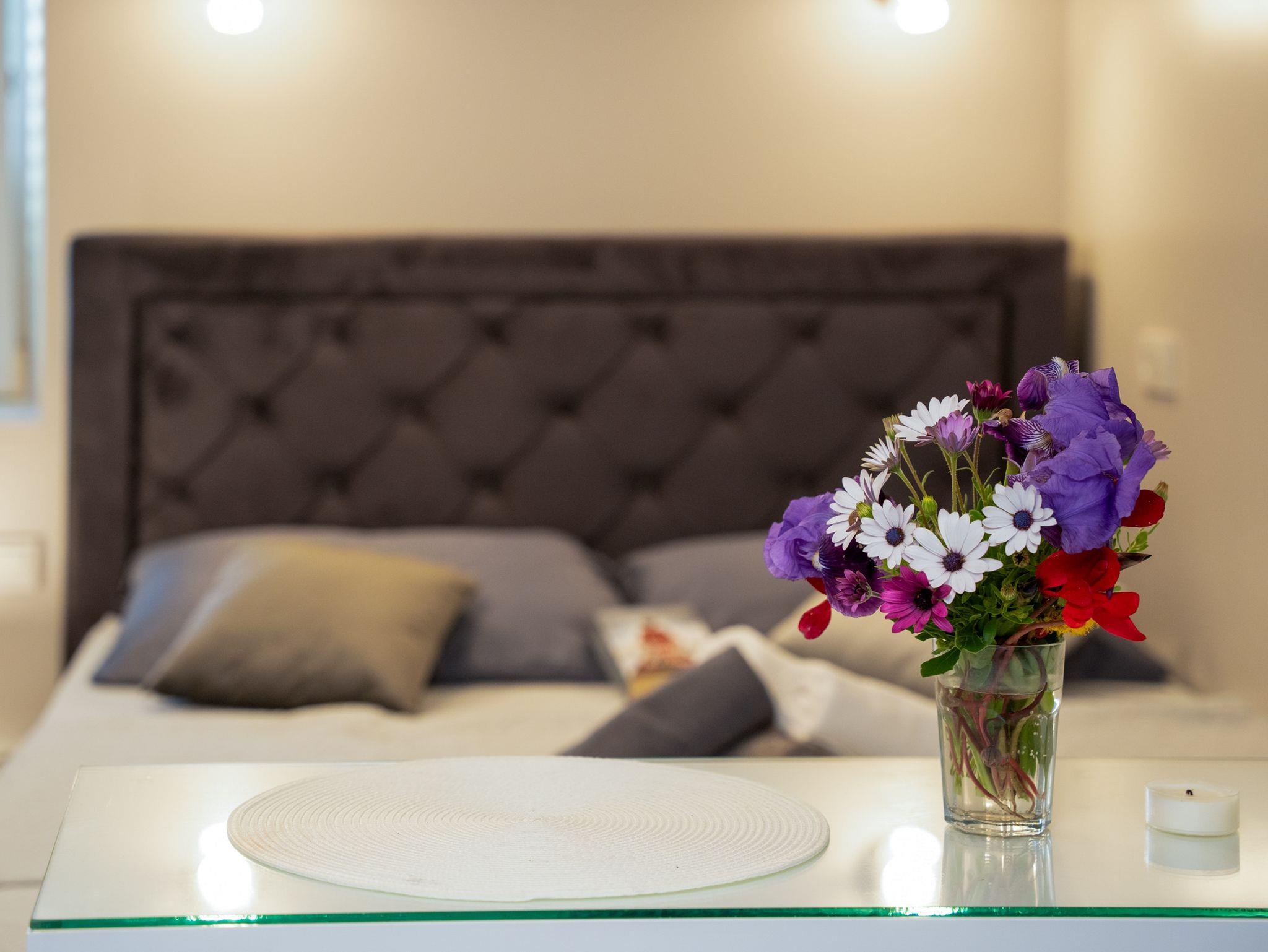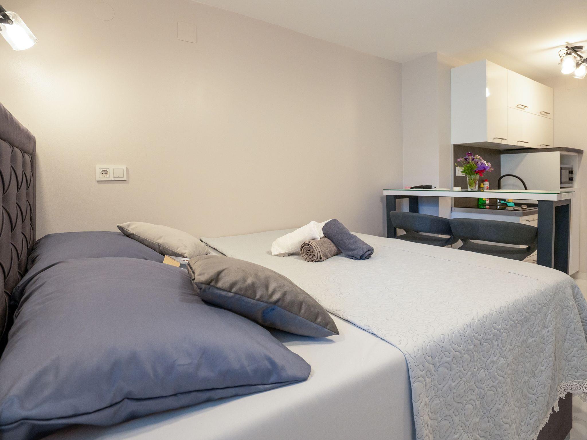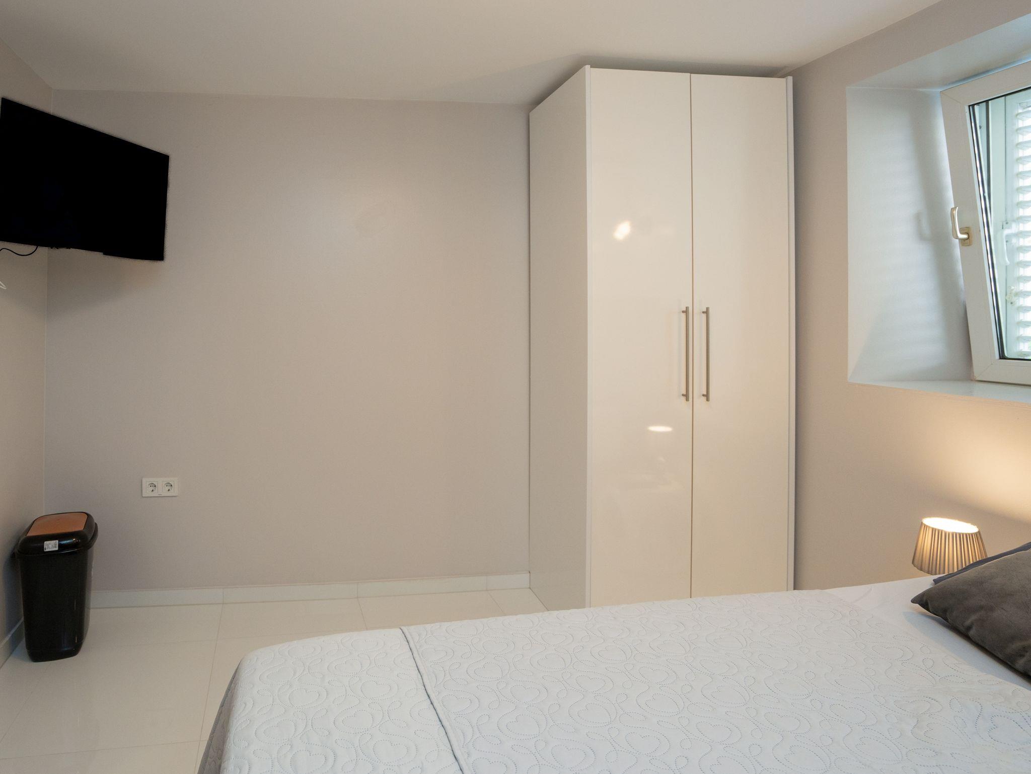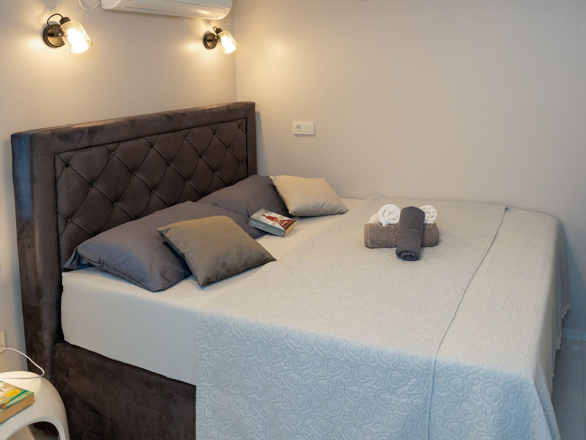 Studio bietet Platz für 2 Gäste. Die Betten sind in Schlafzimmern, die es 1 gibt, innerhalb einer Gesamtfläche von 22m2, angeordnet. Das Studio-Apartment bietet Meerblick. Es ist erlaubt, Speisen auf dem Gemeinschafts-Grill vorzubereiten. Die reservierte Unterkunftseinheit verfügt über einen gemeinsame Terrasse. IM PREIS INBEGRIFFEN: Kurtaxe, Endreinigung, Klimatisierung, Internet, Wäschewaschen, Bootsanlegeplatz, Bügeleisen, Bügelbrett, Föhn. VERBINDLICHE ZUSÄTZLICHE KOSTEN: Aufzahlung für Kurzaufenthalte (prozentualer Zuschlag pro Nächtigungsanzahl: 30% - 1, 20% - 2, 10% - 3). Die Verfügbarkeit zusätzlicher Dienstleistungen in Ihrem reservierten Termin und die Preise derselben (falls nicht aufgeführt) müssen im Voraus überprüft werden. Zusätzliche Dienstleistungen die in der Zahlungsaufforderung nicht aufgeführt sind werden direkt beim Vermieter bezahlt, angenommen der Gast nutzt auch diese.