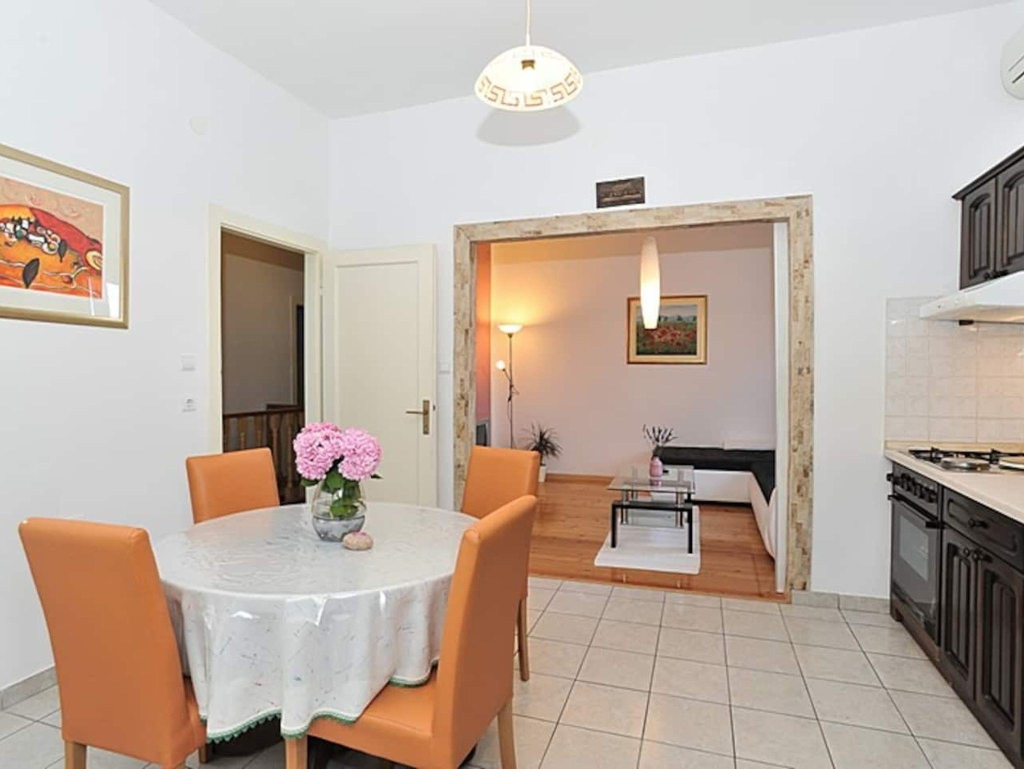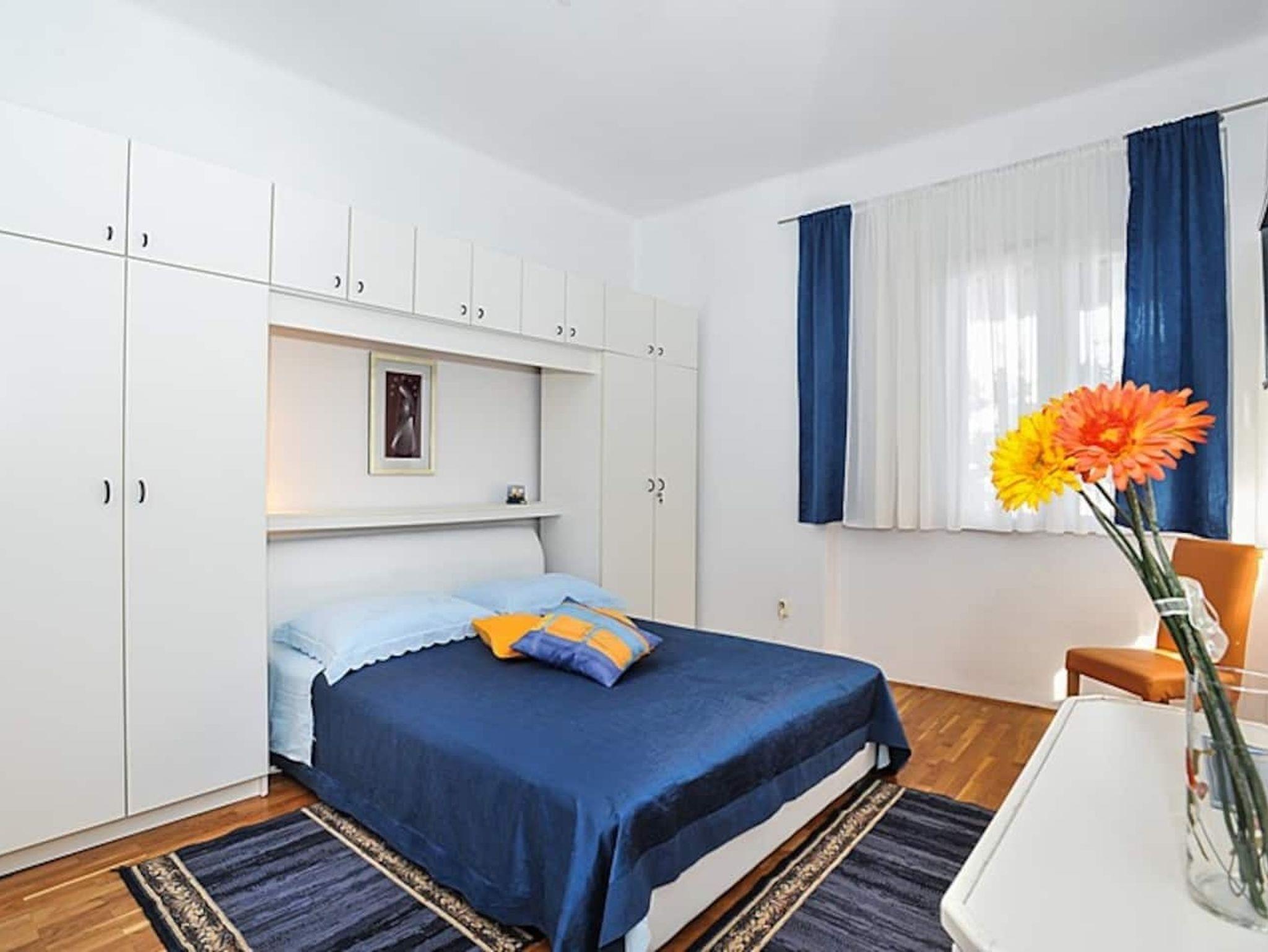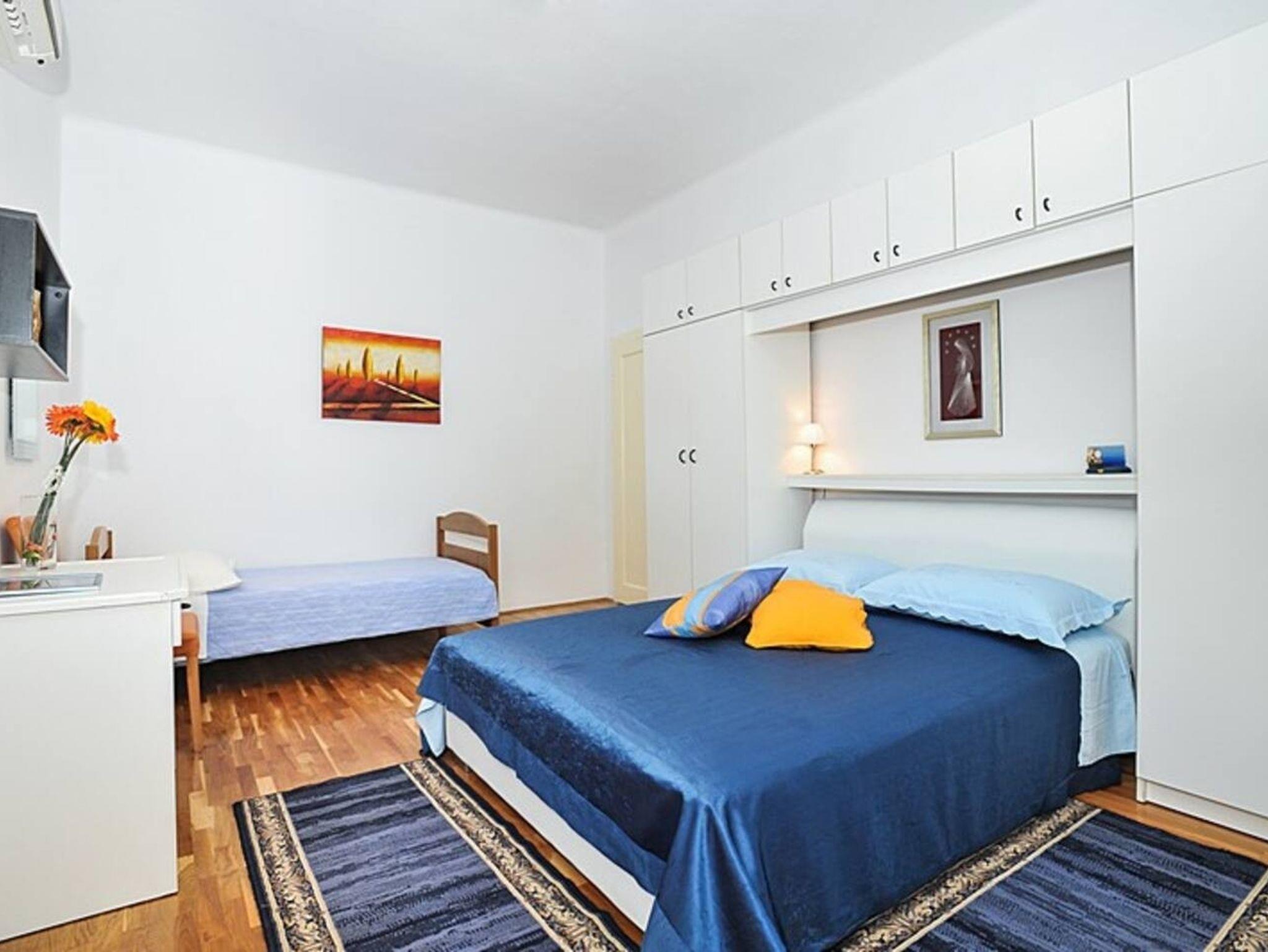 Ferienwohnung bietet Platz für 4 Gäste. Die Betten sind in Schlafzimmern, die es 1 gibt, und in Wohnzimmer, innerhalb einer Gesamtfläche von 54m2, angeordnet. Die Gäste haben eine eigene Terrasse zur Verfügung, auf der sie in warmen Sommernächten genießen können. Das Apartment bietet Meerblick. Es ist erlaubt, Speisen auf dem Gemeinschafts-Grill vorzubereiten. IM PREIS INBEGRIFFEN: Kurtaxe, Endreinigung, Klimatisierung, Parkplatz, Internet, Wäschewaschen, Kinderbett, Bügeleisen, Föhn. VERBINDLICHE ZUSÄTZLICHE KOSTEN: Aufzahlung für Kurzaufenthalte (prozentualer Zuschlag pro Nächtigungsanzahl: 30% - 1, 20% - 2, 10% - 3). UNVERBINDLICHE ZUSÄTZLICHE KOSTEN: Bootsanlegeplatz (20,00 € pro Nacht). Die Verfügbarkeit zusätzlicher Dienstleistungen in Ihrem reservierten Termin und die Preise derselben (falls nicht aufgeführt) müssen im Voraus überprüft werden. Zusätzliche Dienstleistungen die in der Zahlungsaufforderung nicht aufgeführt sind werden direkt beim Vermieter bezahlt, angenommen der Gast nutzt auch diese. Ermäßigung auf den Grundpreis: Gratistag 14=13 (bei einem Aufenthalt von 14 Tagen oder mehr erhalten Sie einen Gratistag für den Aufenthalt bis 31.12.26).