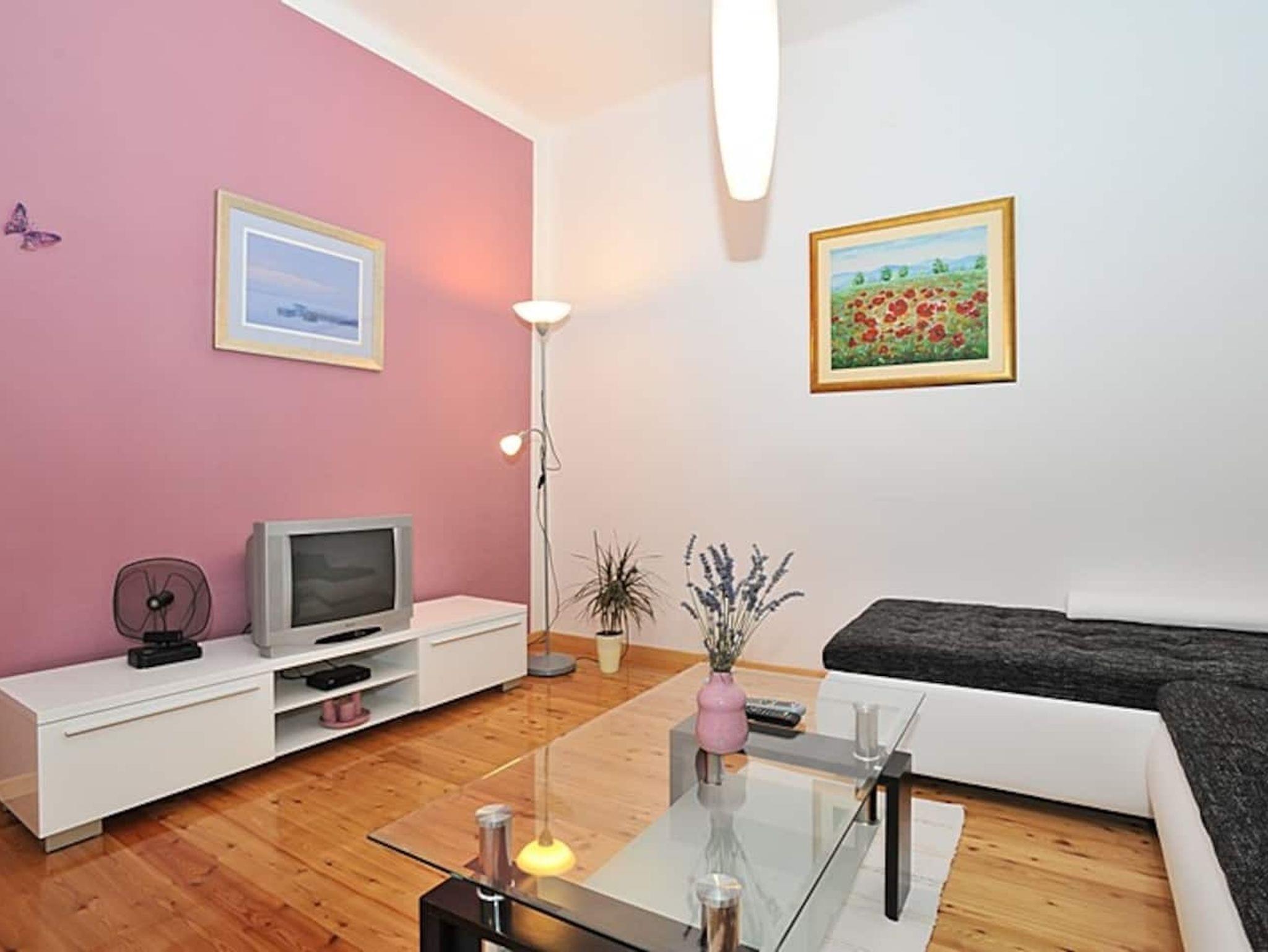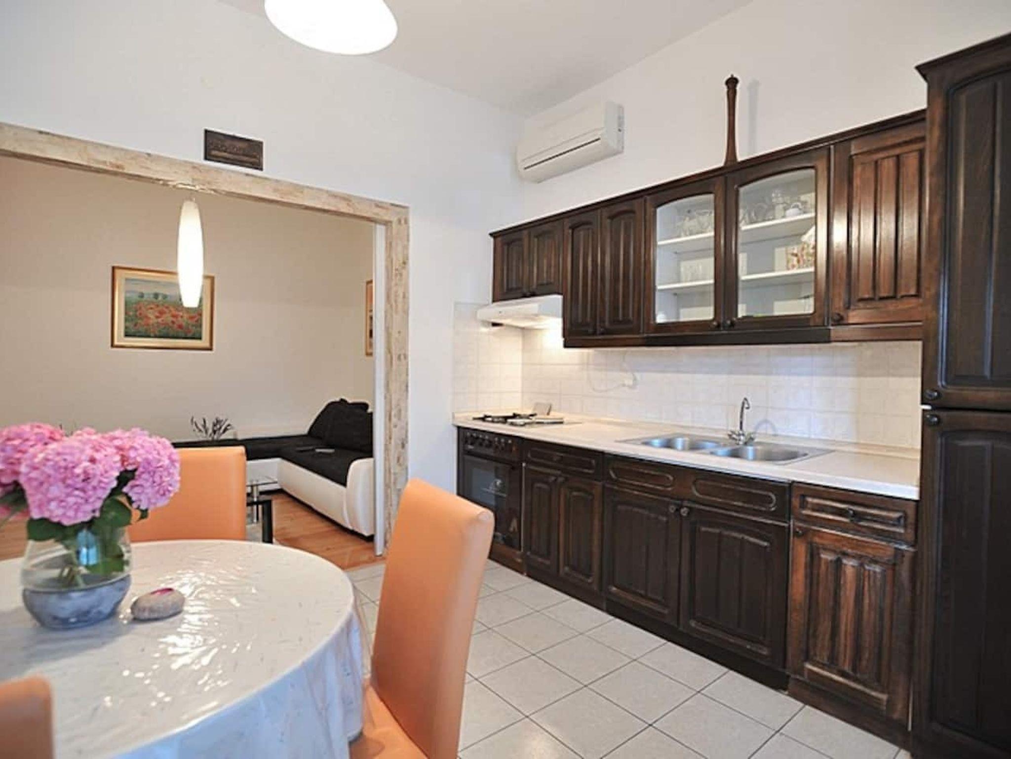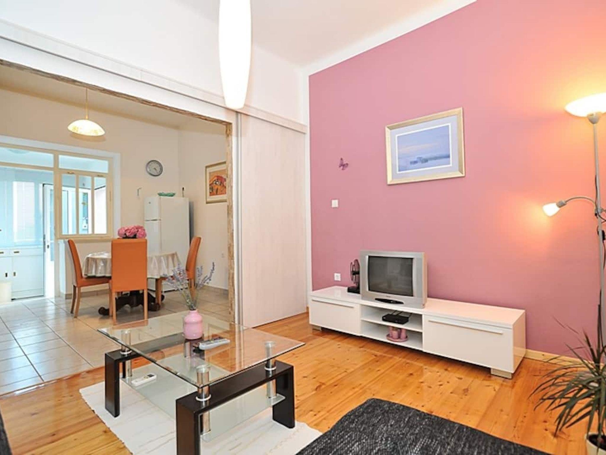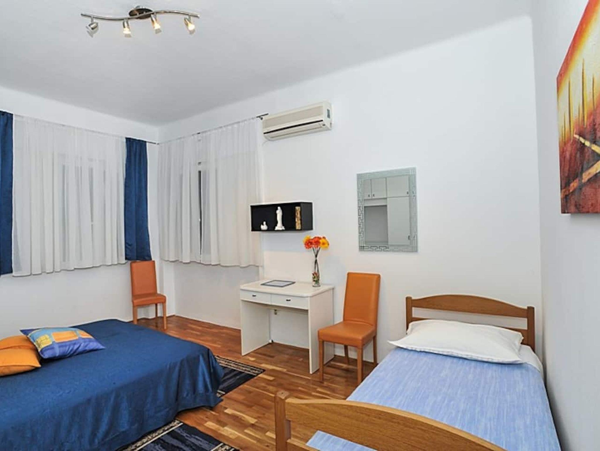 Ferienwohnung bietet Platz für 4 Gäste. Die Betten sind in Schlafzimmern, die es 1 gibt, und in Wohnzimmer, innerhalb einer Gesamtfläche von 54m2, angeordnet. Die Gäste haben eine eigene Terrasse zur Verfügung, auf der sie in warmen Sommernächten genießen können. Das Apartment bietet Meerblick. Es ist erlaubt, Speisen auf dem Gemeinschafts-Grill vorzubereiten. IM PREIS INBEGRIFFEN: Kurtaxe, Endreinigung, Klimatisierung, Parkplatz, Internet, Wäschewaschen, Kinderbett, Bügeleisen, Föhn. VERBINDLICHE ZUSÄTZLICHE KOSTEN: Aufzahlung für Kurzaufenthalte (prozentualer Zuschlag pro Nächtigungsanzahl: 30% - 1, 20% - 2, 10% - 3). UNVERBINDLICHE ZUSÄTZLICHE KOSTEN: Bootsanlegeplatz (20,00 € pro Nacht). Die Verfügbarkeit zusätzlicher Dienstleistungen in Ihrem reservierten Termin und die Preise derselben (falls nicht aufgeführt) müssen im Voraus überprüft werden. Zusätzliche Dienstleistungen die in der Zahlungsaufforderung nicht aufgeführt sind werden direkt beim Vermieter bezahlt, angenommen der Gast nutzt auch diese. Ermäßigung auf den Grundpreis: Gratistag 14=13 (bei einem Aufenthalt von 14 Tagen oder mehr erhalten Sie einen Gratistag für den Aufenthalt bis 31.12.26).