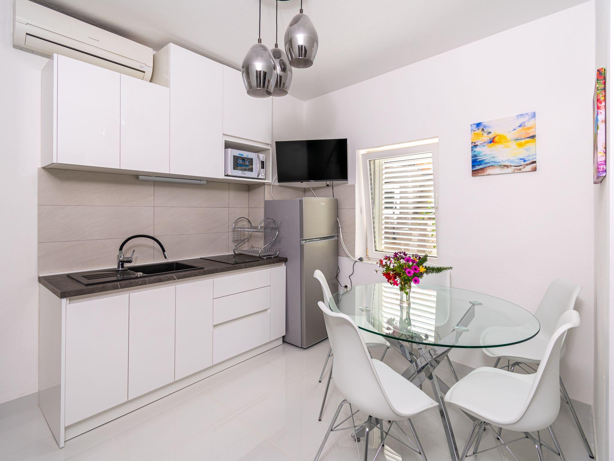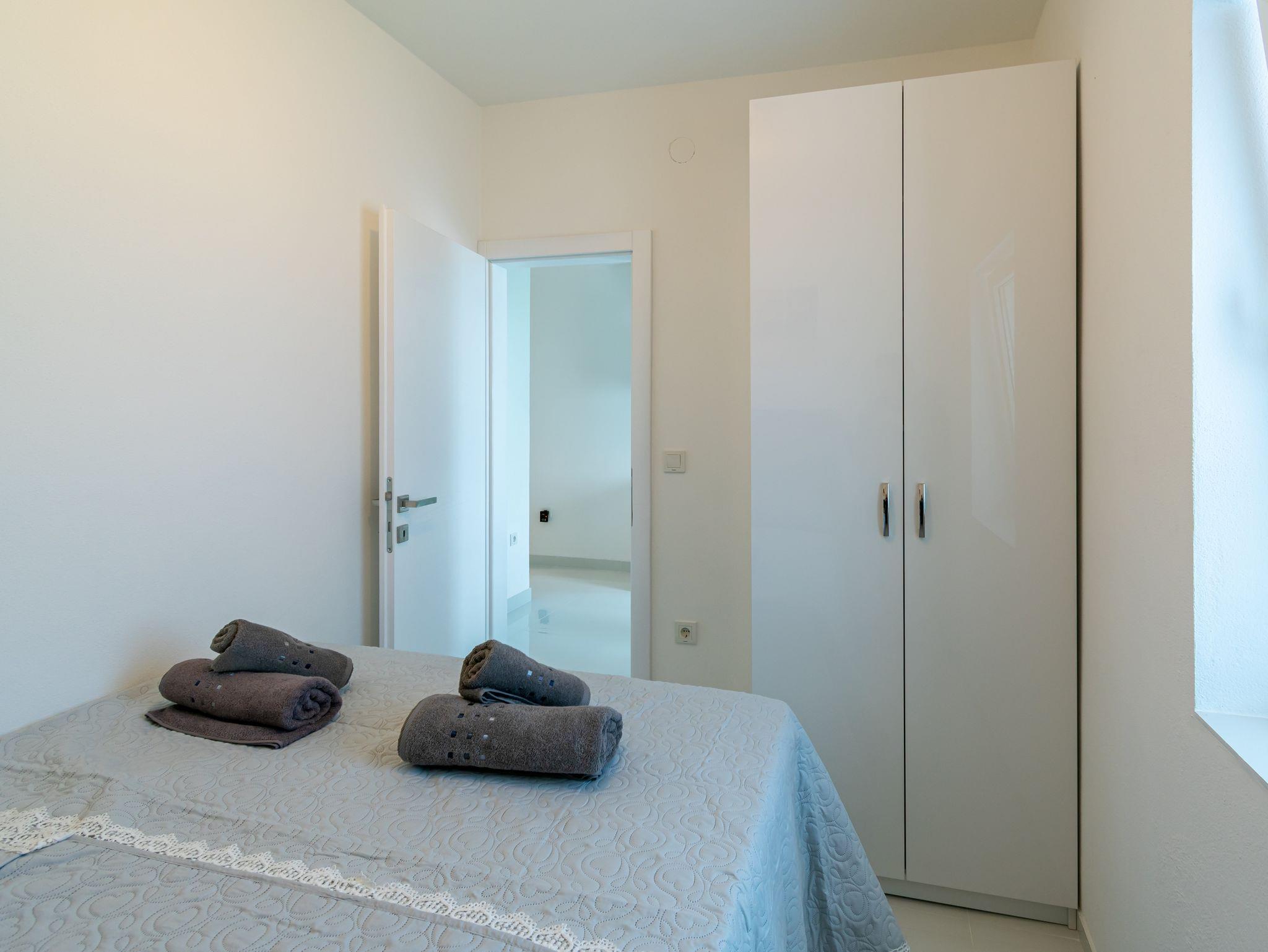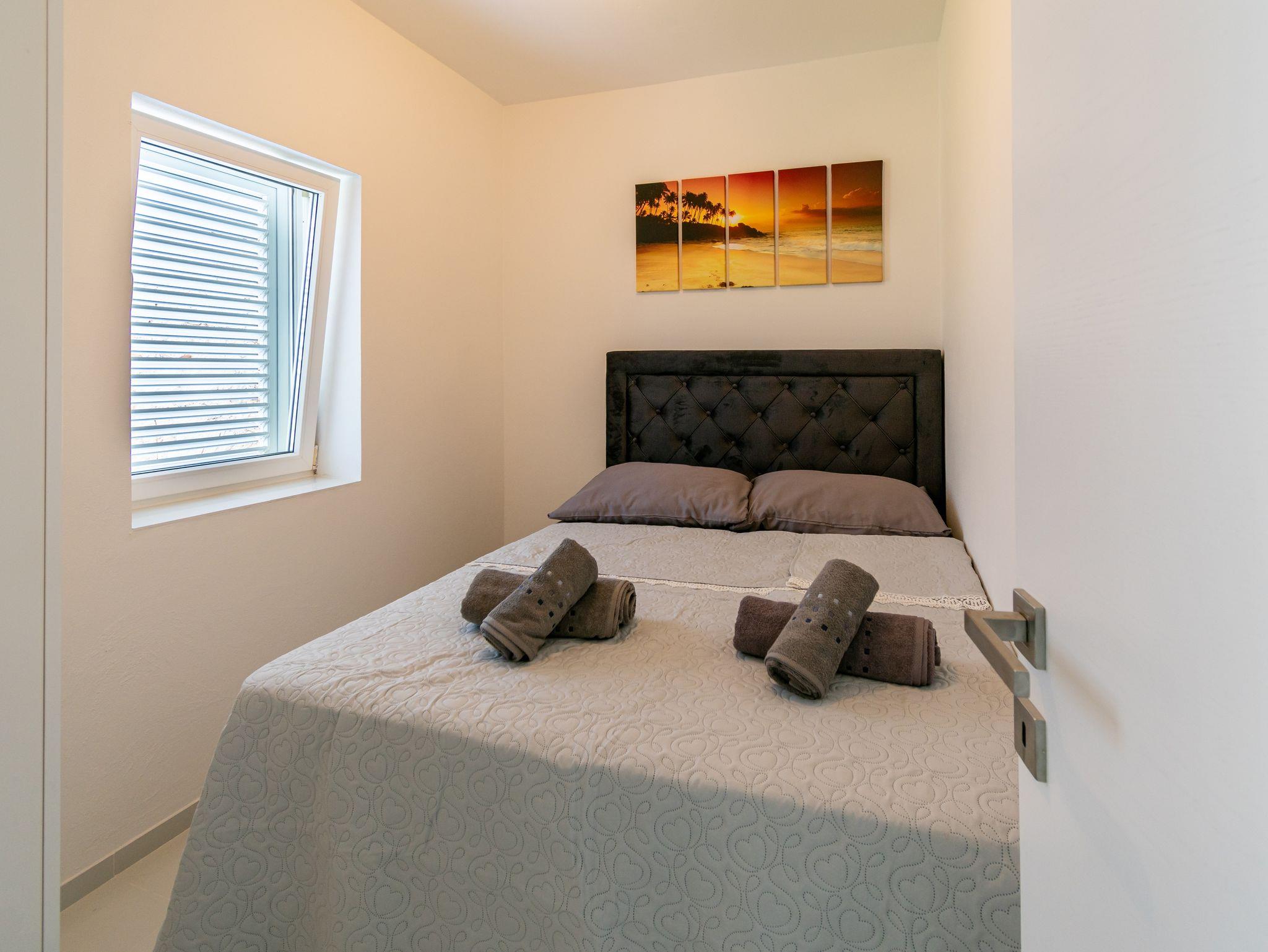 Ferienwohnung bietet Platz für 5 Gäste. Die Betten sind in Schlafzimmern, die es 2 gibt, innerhalb einer Gesamtfläche von 31m2, angeordnet. Das Apartment bietet Meerblick. Es ist erlaubt, Speisen auf dem Gemeinschafts-Grill vorzubereiten. Die reservierte Unterkunftseinheit verfügt über einen gemeinsame Terrasse. IM PREIS INBEGRIFFEN: Kurtaxe, Endreinigung, Klimatisierung, Internet, Wäschewaschen, Bootsanlegeplatz, Bügeleisen, Bügelbrett, Föhn. VERBINDLICHE ZUSÄTZLICHE KOSTEN: Aufzahlung für Kurzaufenthalte (prozentualer Zuschlag pro Nächtigungsanzahl: 30% - 1, 20% - 2, 10% - 3). Die Verfügbarkeit zusätzlicher Dienstleistungen in Ihrem reservierten Termin und die Preise derselben (falls nicht aufgeführt) müssen im Voraus überprüft werden. Zusätzliche Dienstleistungen die in der Zahlungsaufforderung nicht aufgeführt sind werden direkt beim Vermieter bezahlt, angenommen der Gast nutzt auch diese.