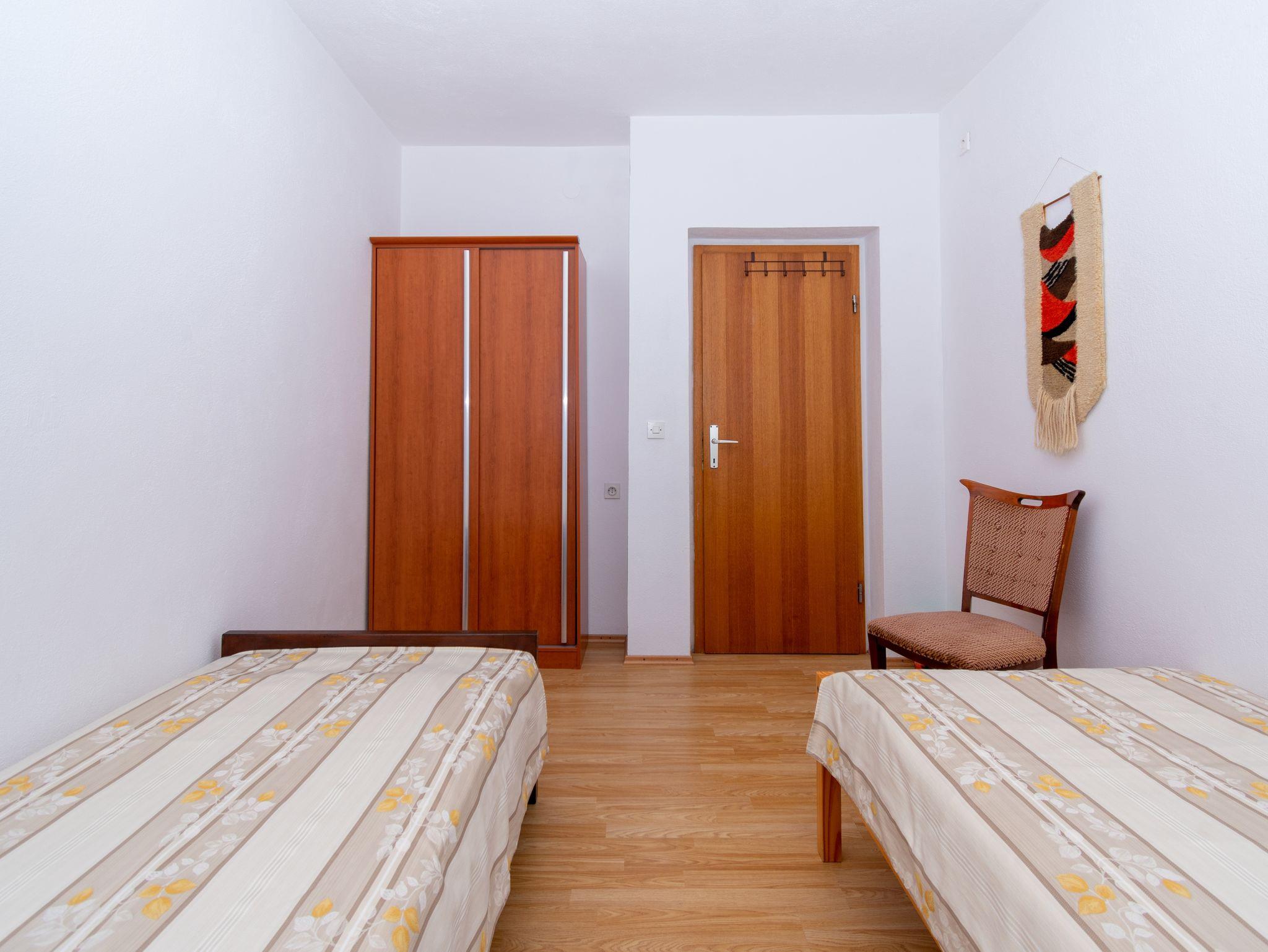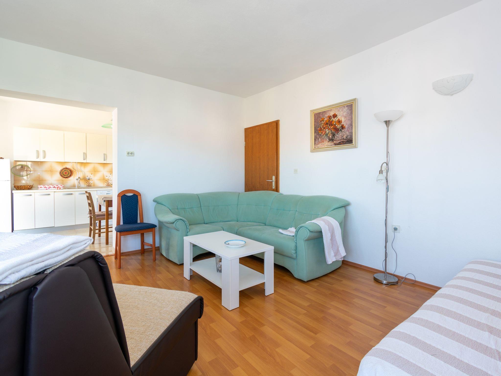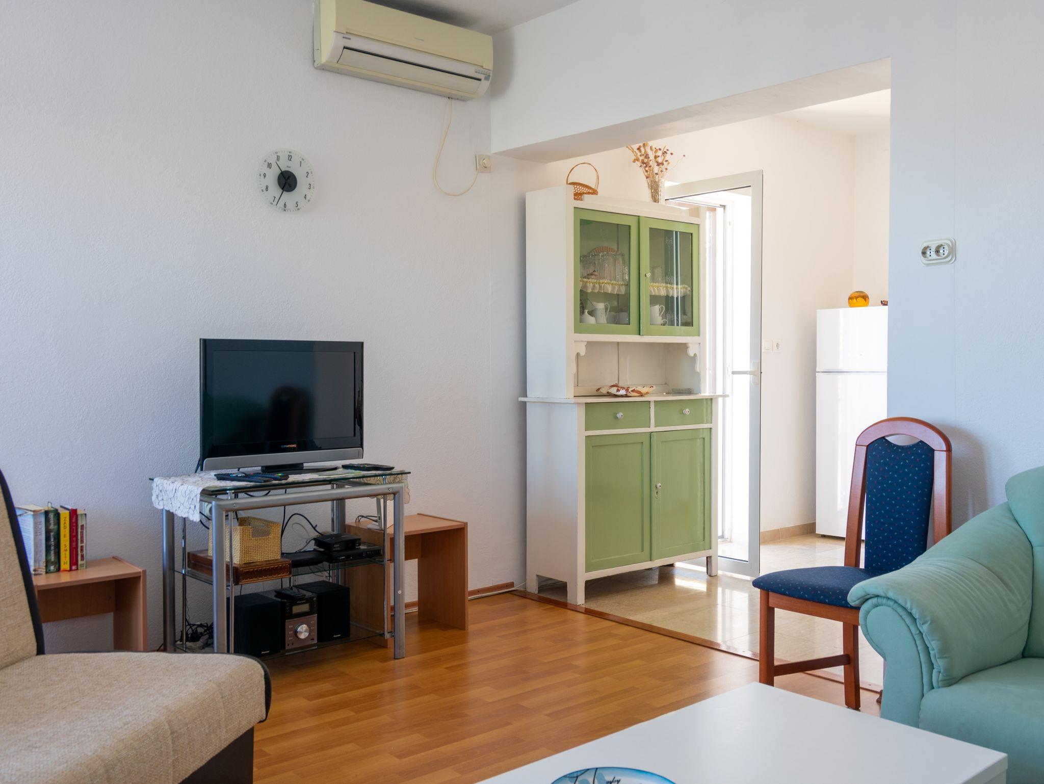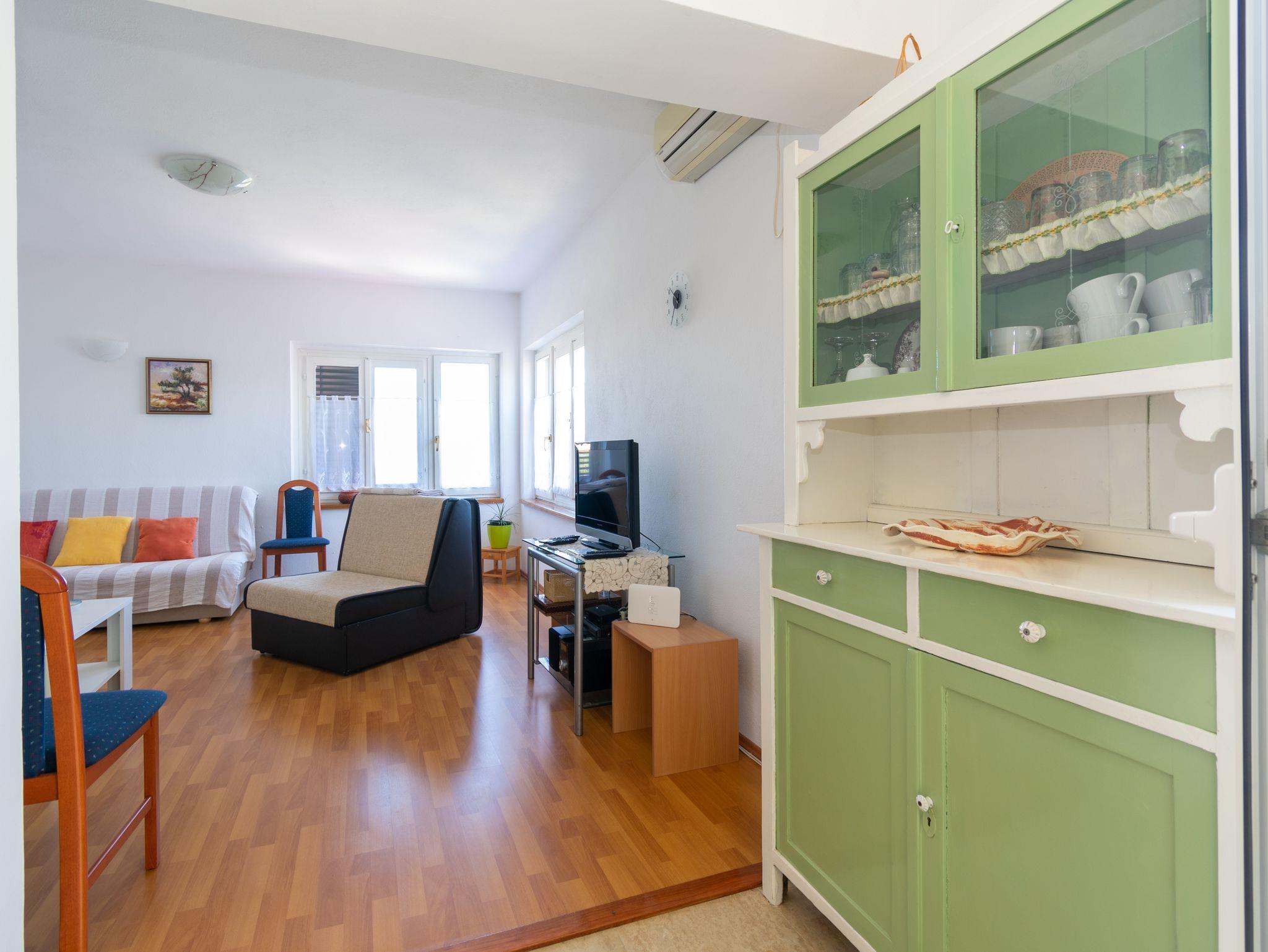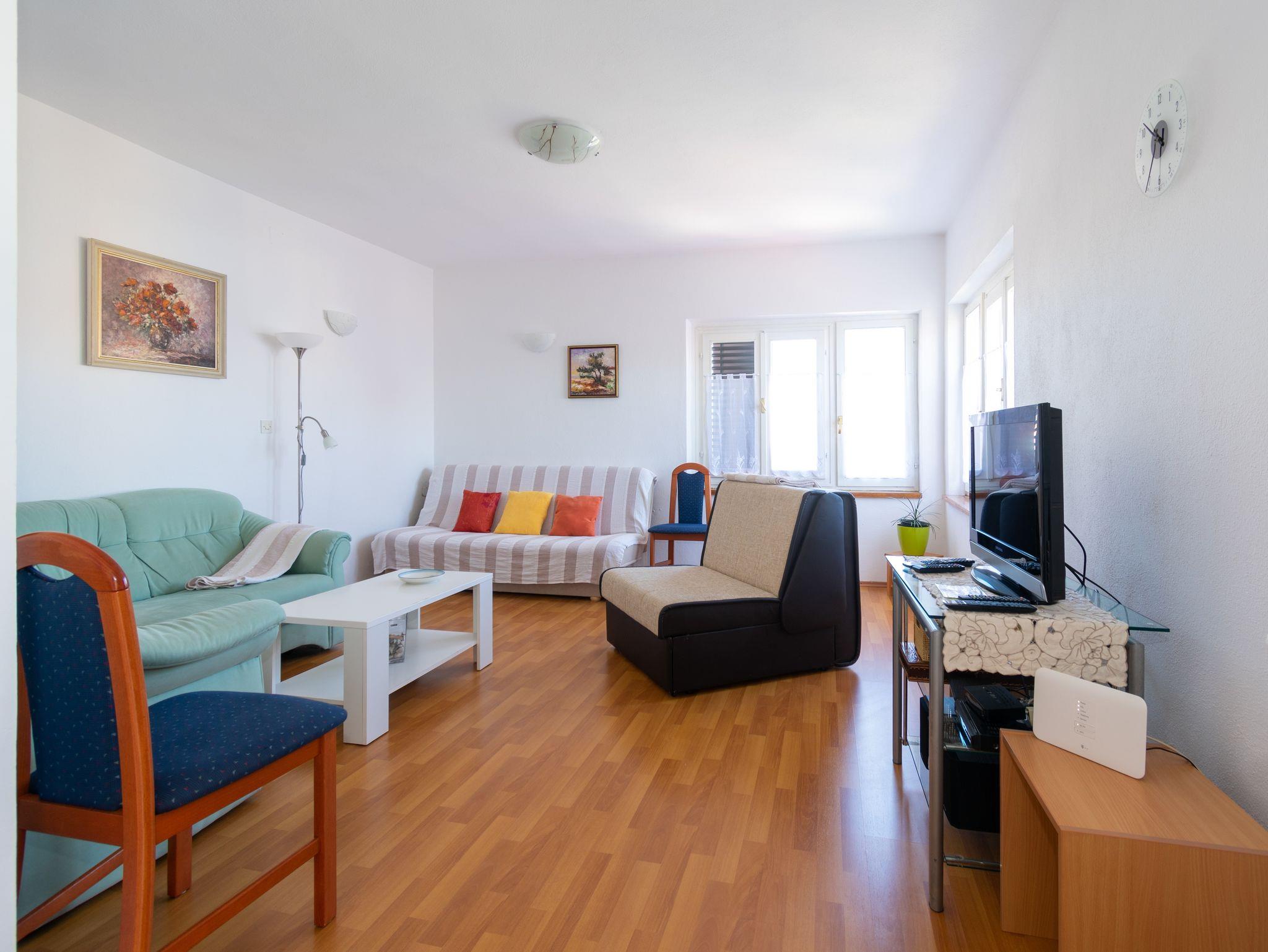 Ferienwohnung bietet Platz für 5 Gäste. Die Betten sind in Schlafzimmern, die es 2 gibt, und in Wohnzimmer, innerhalb einer Gesamtfläche von 67m2, angeordnet. Die Gäste haben eine eigene Terrasse zur Verfügung, auf der sie in warmen Sommernächten genießen können. Das Apartment bietet Meerblick. Es ist erlaubt, Speisen auf dem Gemeinschafts-Grill vorzubereiten. IM PREIS INBEGRIFFEN: Kurtaxe, Endreinigung, Klimatisierung, Parkplatz, Internet, Kinderbett, Bügeleisen, Bügelbrett, Föhn. Die Verfügbarkeit zusätzlicher Dienstleistungen in Ihrem reservierten Termin und die Preise derselben (falls nicht aufgeführt) müssen im Voraus überprüft werden. Zusätzliche Dienstleistungen die in der Zahlungsaufforderung nicht aufgeführt sind werden direkt beim Vermieter bezahlt, angenommen der Gast nutzt auch diese. Ermäßigung auf den Grundpreis: Gratistag 14=13 (bei einem Aufenthalt von 14 Tagen oder mehr erhalten Sie einen Gratistag für den Aufenthalt bis 31.12.26).