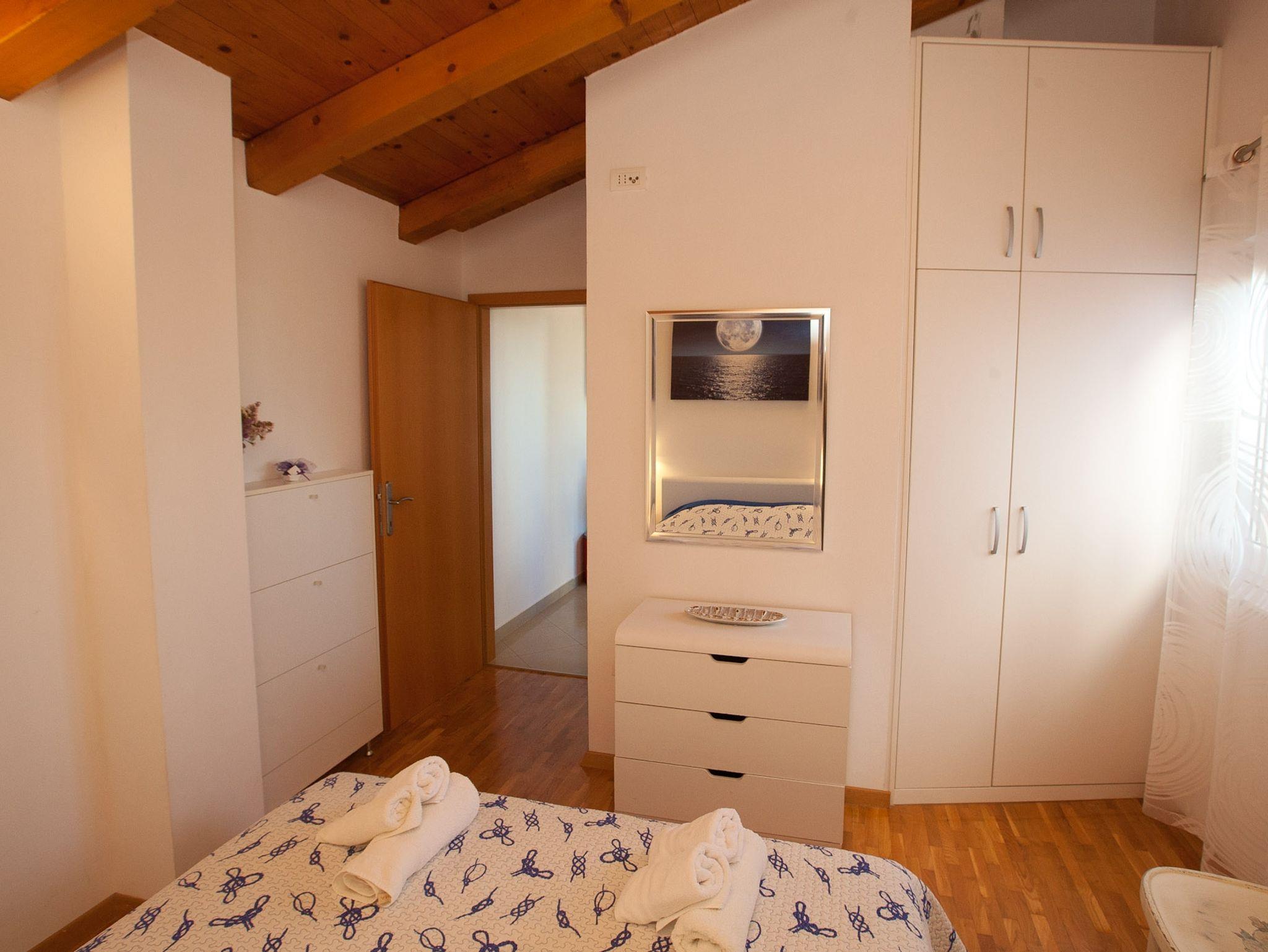 Ferienwohnung bietet Platz für 3 Gäste. Die Betten sind in Schlafzimmern, die es 1 gibt, und in Esszimmer, innerhalb einer Gesamtfläche von 28m2, angeordnet. Die Gäste haben eine eigene Terrasse zur Verfügung, auf der sie in warmen Sommernächten genießen können. Das Apartment bietet Meerblick. Es ist erlaubt, Speisen auf dem Gemeinschafts-Grill vorzubereiten. Während ihres Aufenthalts können Gäste das gemeinsam zur Nutzung stehende Schwimmbad benutzen. In der Unterkunftseinheit besteht die Möglichkeit des Mitbringens von Haustieren gegen Aufpreis. IM PREIS INBEGRIFFEN: Kurtaxe, Endreinigung, Klimatisierung, Pool, Parkplatz, Internet, Bügeleisen, Bügelbrett, Föhn, tragbarer Grill. UNVERBINDLICHE ZUSÄTZLICHE KOSTEN: Haustiere (5,00 € pro Nacht). Die Verfügbarkeit zusätzlicher Dienstleistungen in Ihrem reservierten Termin und die Preise derselben (falls nicht aufgeführt) müssen im Voraus überprüft werden. Zusätzliche Dienstleistungen die in der Zahlungsaufforderung nicht aufgeführt sind werden direkt beim Vermieter bezahlt, angenommen der Gast nutzt auch diese.