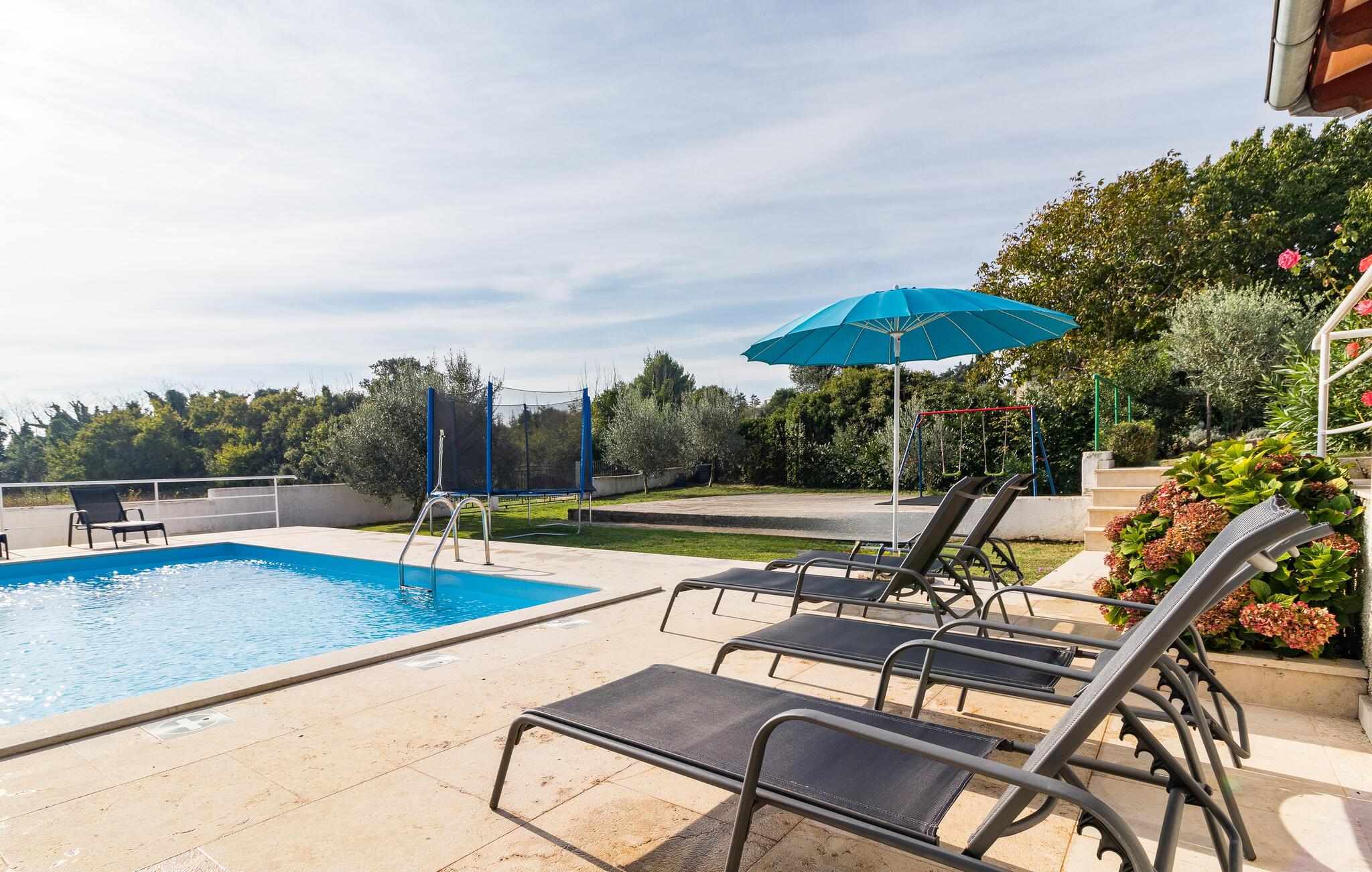 Nyd de afslappende ferieaftener med udsigt over det fantastiske hav. Den store, indbydende swimmingpool er på varme sommerdage med til at give afkøling og forfriskning. De smukke og fredelige omgivelser er meget velegnet for familier med børn. Der er desuden en gynge i haven, hvor børnene kan lege.