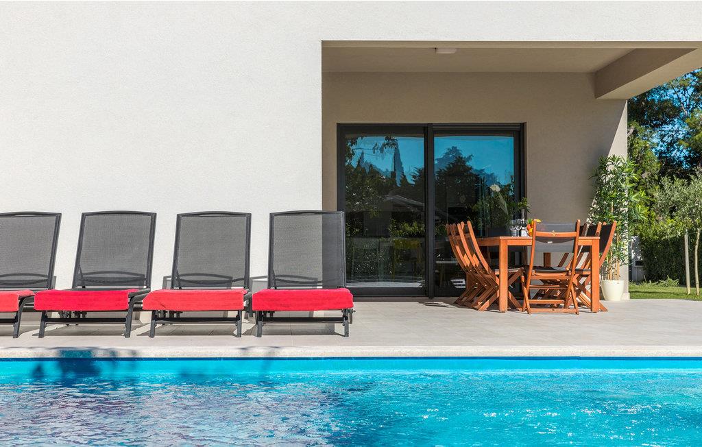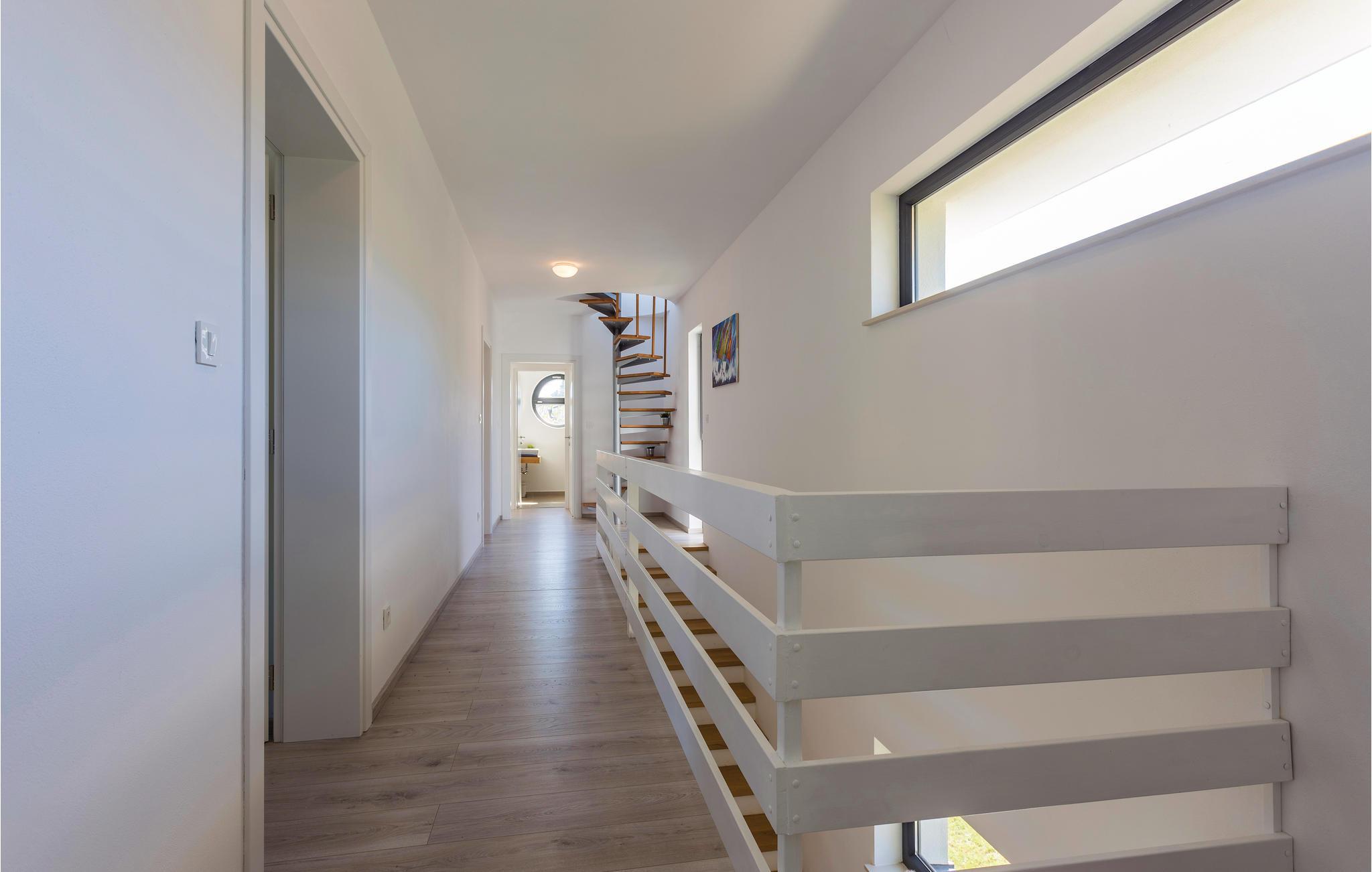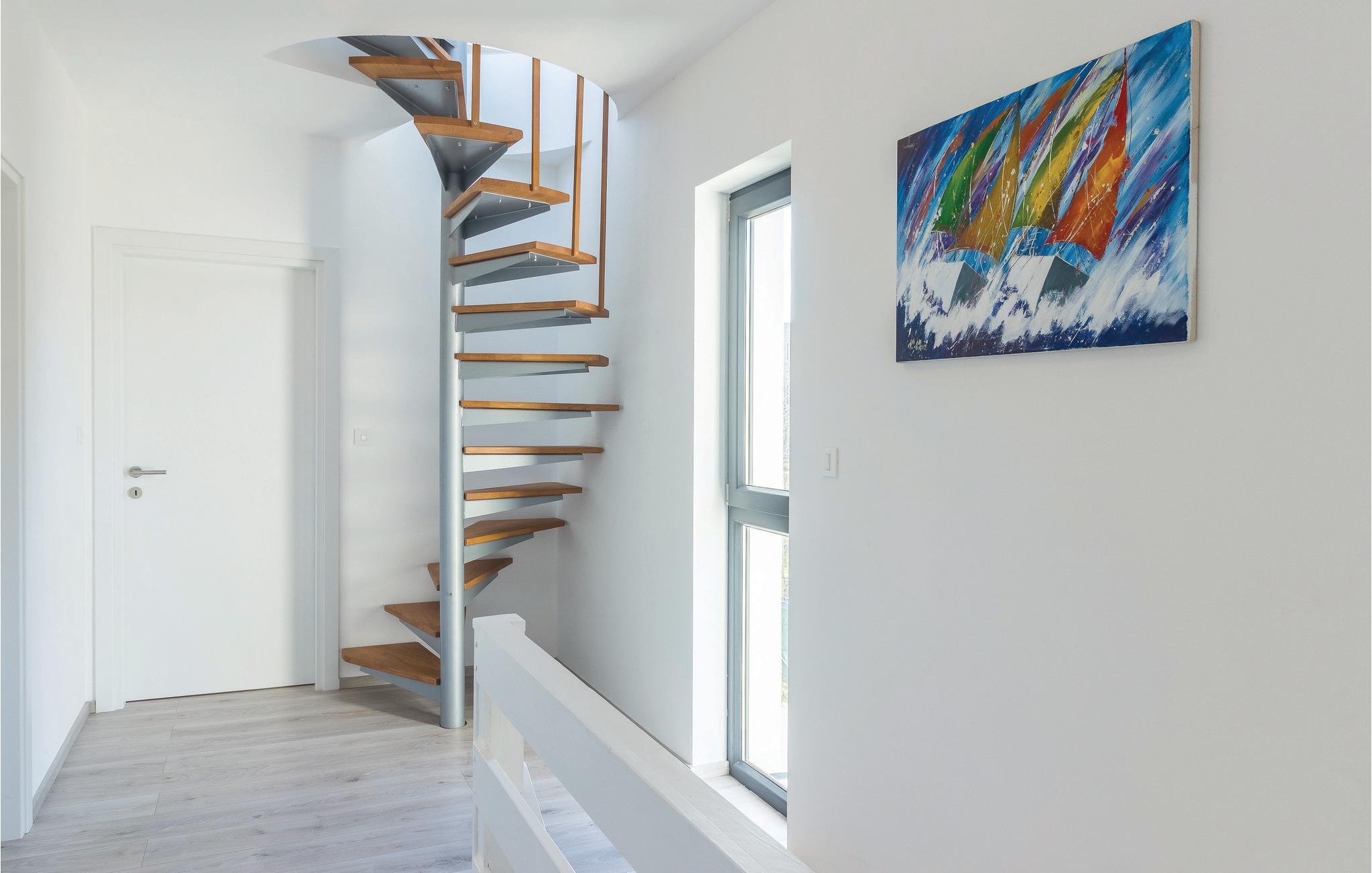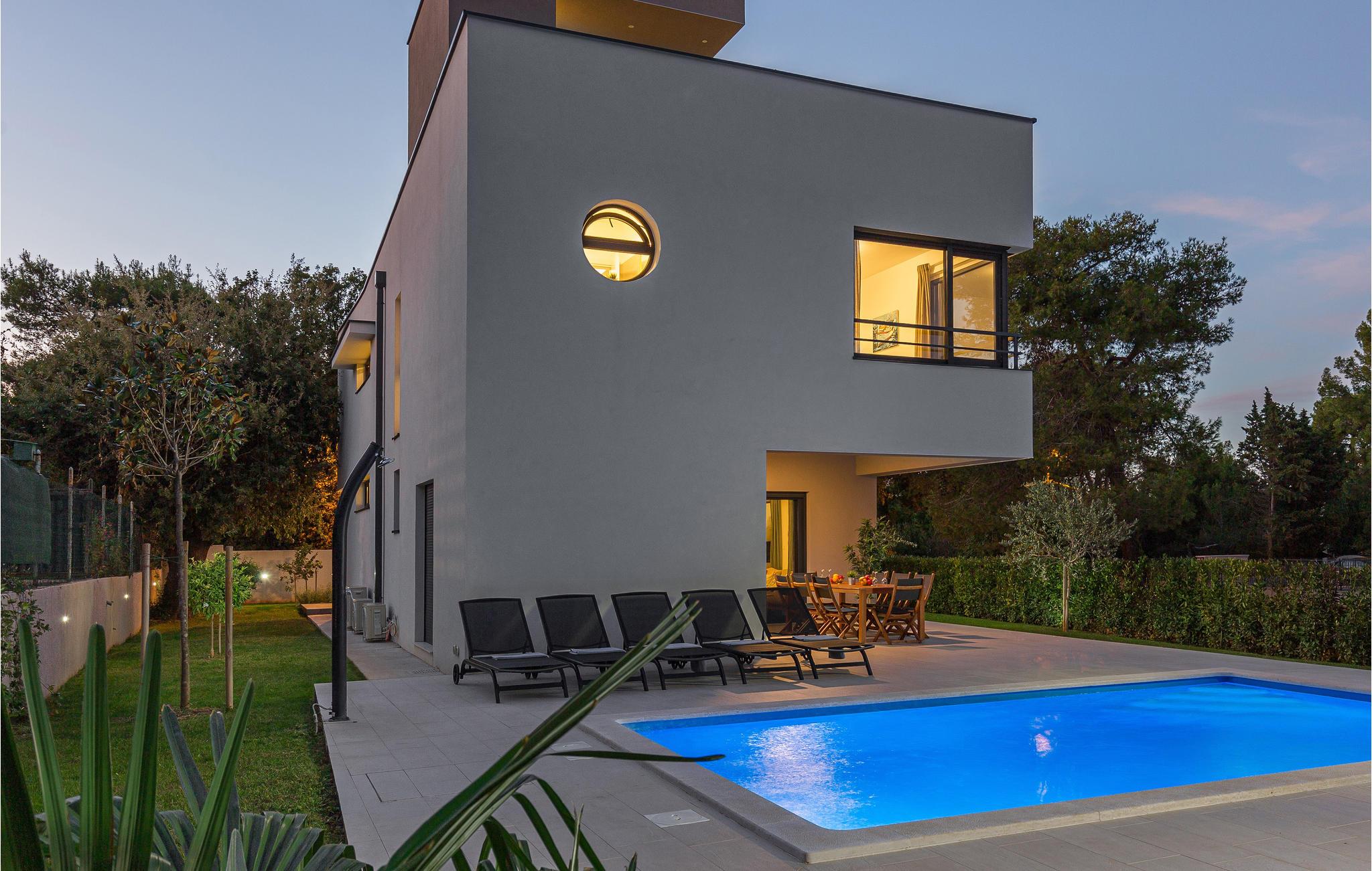 Denne ferievilla med pool, 250 m fra stranden, ligger i den lille fiskerby Premantura, der grænser op mod Naturpark Kap Kamenjak. Huset fortryller med sin særlige arkitektur. Det er dejligt rummeligt både ude og inde, til en afslappe og indholdsrig ferie. I stueplan ligger det store opholdsrum med direkte udgang til poolen, et vaskerum et gæstetoilet samt et bryggers. Fra første sal fører en vindeltrappe op til tagterrassen, hvorfra der er en betagende udsigt over havet og landskaberne. På øvre etage er der 4 soveværelser med tilhørende badeværelser. Nyd badelivet på en af de mange strande i Premantura hvor I kan dyrke alle former for vandsport, svømme og tage solbad. Tag også en tur ind i Istriens indland med vinbjerge og olivenlunde. Pga. de rolige omgivelser er dette domicil ikke egnet til gruppeferie og fester.
