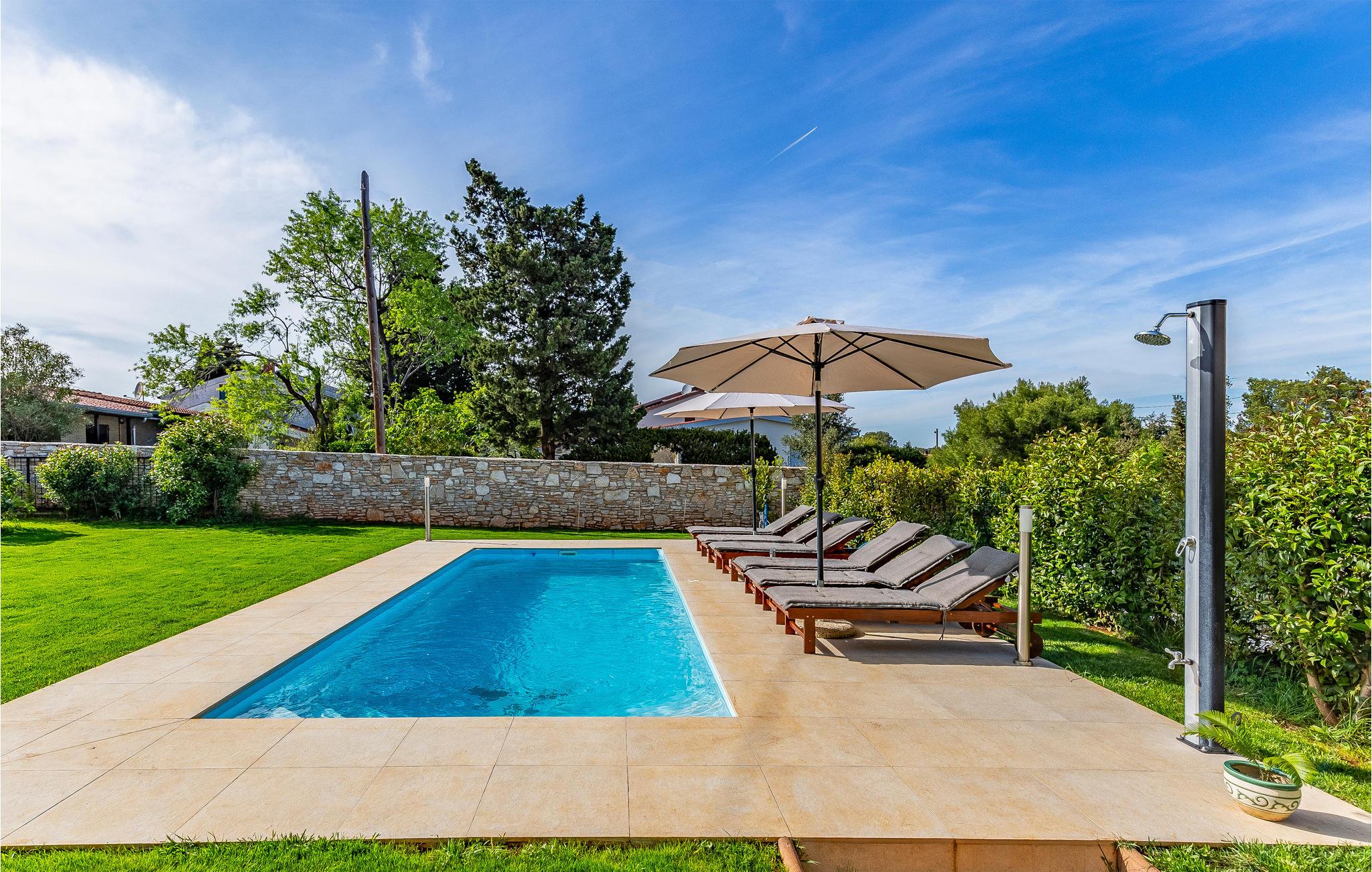 I Premanturas smukke omgivelser, ikke langt fra naturstrande og det krystalklare hav, ligger dette feriehus i to etager på en flot, stor grund. Den charmerende bolig fordeler sig over et hovedhus og en sidebygning. Soveværelserne i sidebygningen ligger på en hems, med adgang via en stejl stige og med skråvægge, der går langt ned i siden (40 cm yderst). På grunden er der også en pool, hvilket I bliver glade for i de varme eftermiddagstimer, for der får I sikkert brug for at køle ned med en frisk dukkert.