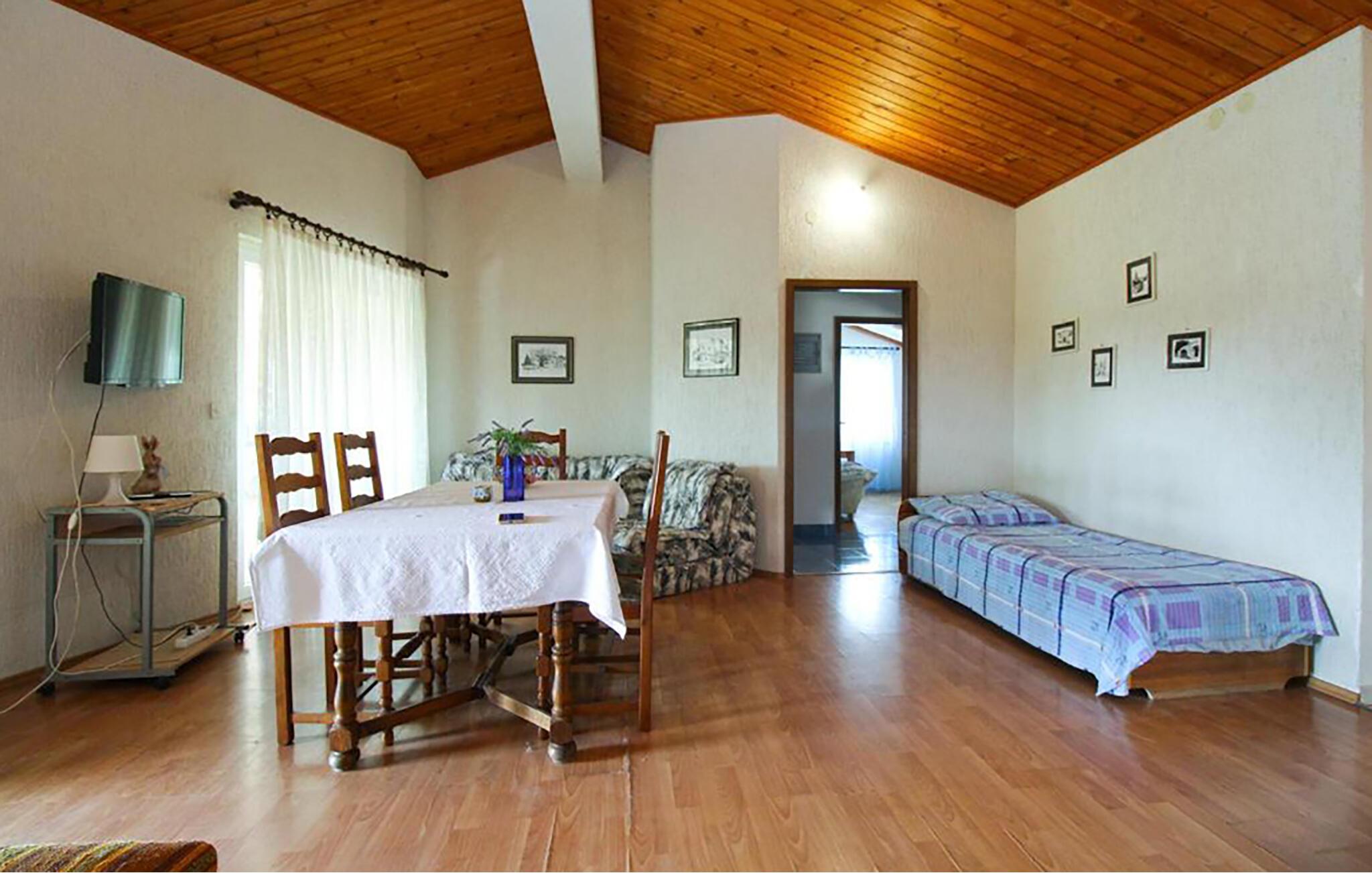 Nyd en afslappende ferie i denne enkle, men hyggelige lejlighed. Brug sofaen i stuen til at slappe af efter en dag på stranden, eller saml jer omkring det store spisebord til fælles måltider. Tilbered jeres måltider i det kompakte køkken og drag fordel af det praktiske udstyr, der gør madlavningen nem. Gå ud i den beskyttede have og nyd træernes skygge. Sid på terrassen med parasol og nyd en kølig drink. Det rummelige område byder på masser af plads til, at børnene kan lege eller til afslappende timer udenfor. Brug den indbyggede stengrill og tilbring hyggelige aftener under åben himmel. Fra Premantura kan I opleve Kamenjak-halvøens skønhed og slentr til klippefyldte bugter som Njive-bugten eller Plovanije-bugten. Besøg udsigtspunktet Safari Bar og se solnedgangen over havet. Udforsk Pula med det romerske amfiteater, eller tag en kort bådtur til Porer-fyrtårnet. Udnyt de mange cykel- og vandrestier for aktivt at opleve kystlandskabet.