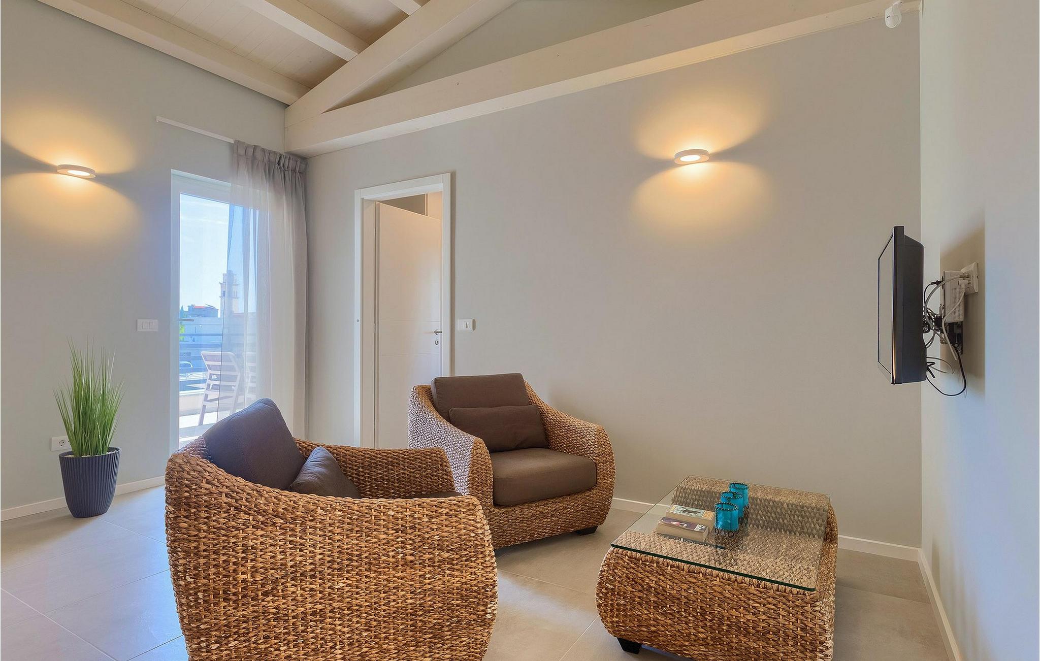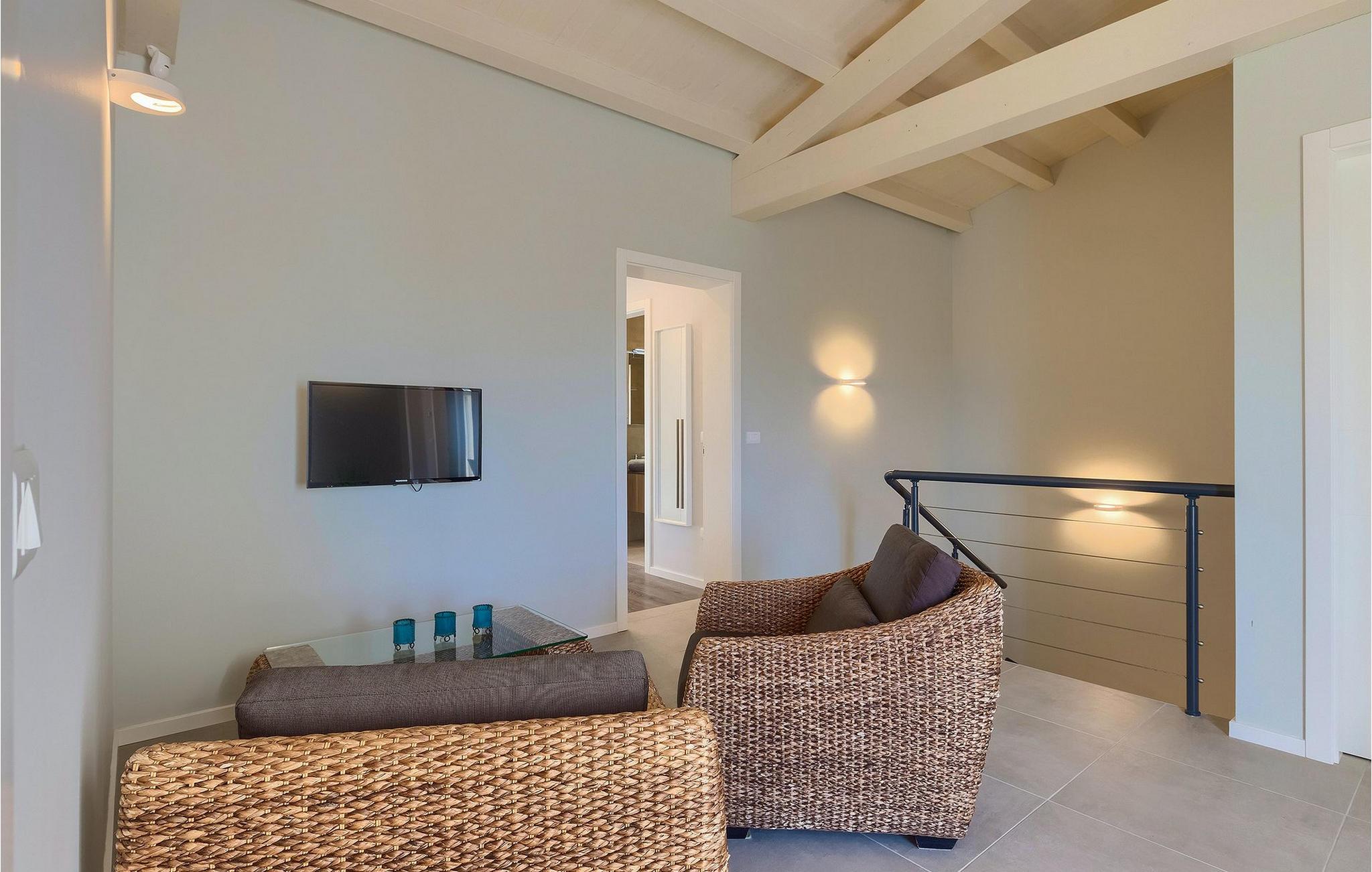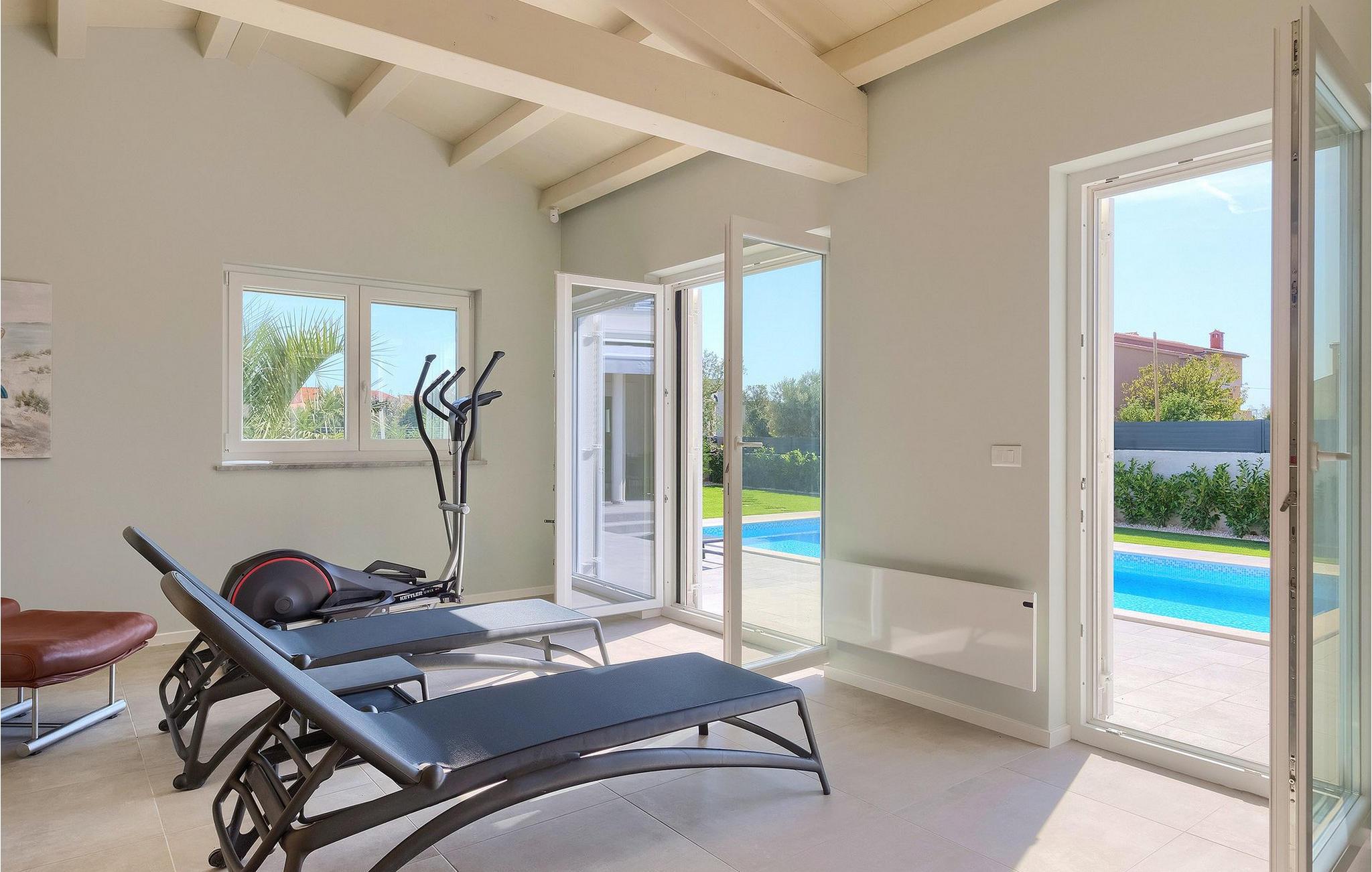 Villaen ligger på en 1100 m2 stor og helt lukket grund og har en indbydende privat pool omgivet af hyggelige liggestole. En udendørs spiseplads med en kulgrill, en havebruser og et separat udendørs toilet er alt sammen udenfor. Interiøret er smukt arrangeret og tilbyder mere end nok komfort til et afslappende ophold. Det åbne rum i stueetagen er opdelt i opholdsstue med pejs, SAT-TV og stereoanlæg, spiseplads og moderne fuldt udstyret køkken. Der er også et separat rum, der kun er dedikeret til sjov - et poolbord og bordfodbold står til din rådighed her. Et andet rum er for dem, der kan lide at forkæle sig selv - en finsk sauna og et brusebad er her for dem, der kan lide at slappe af på kølige aftener, og fitnessområdet med en cross-trainer-maskine for dem, der har tendens til at holde sig i form også i ferier. Med hensyn til soveværelserne har alle 4 soveværelser aircondition, og alle har tv og eget privat badeværelse med bruser. Et soveværelse ligger i stueetagen, mens de resterende 3 er fordelt på øverste etage og har en balkon med udsigt over poolen i haven. Hvis du er til noget spil, er der en spillekonsol i loungeområdet på øverste etage.