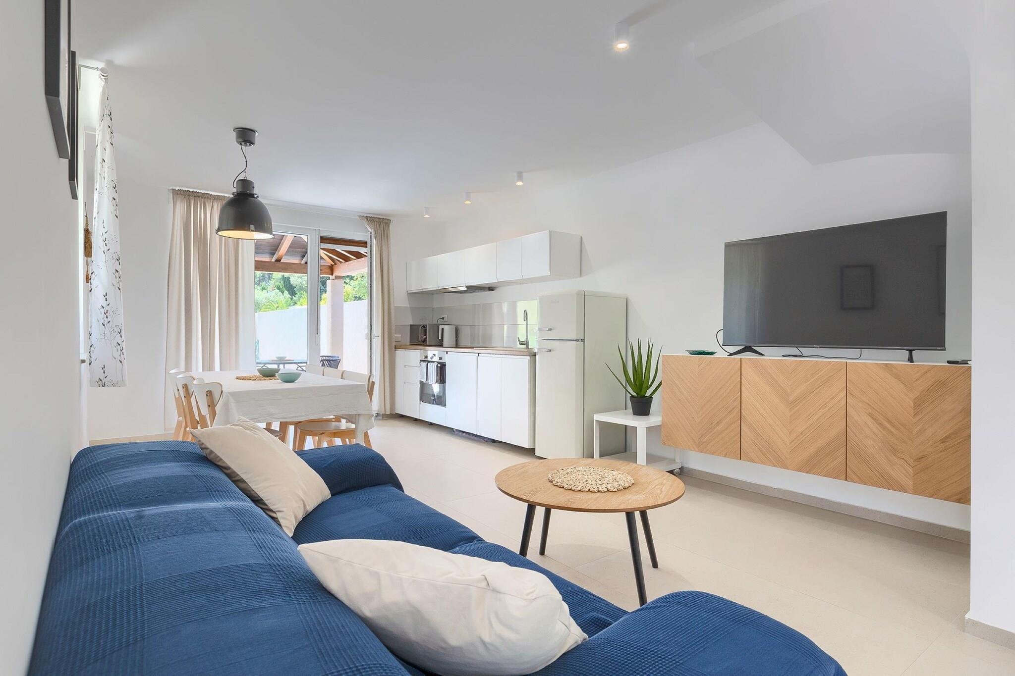Stueetage: (Stue(Fjernsyn(fladskærm, parabol), sofahjørne), Køkken(spisebord, elkedel, komfur, kaffemaskine, ovn, mikrobølgeovn, opvaskemaskine , køle-fryseskab, , Wine glasses), terrasse(privat)) På 1. etage: (soveværelse(dobbeltseng(160 x 200 cm), klimaanlæg), soveværelse(dobbeltseng(160 x 200 cm), klimaanlæg), badeværelse(bruser, håndvask, toilet), badeværelse(bruser, håndvask, toilet)) klimaanlæg, terrasse(privat), havemøbler, solstole, grill, parkering, swimmingpool(privat)