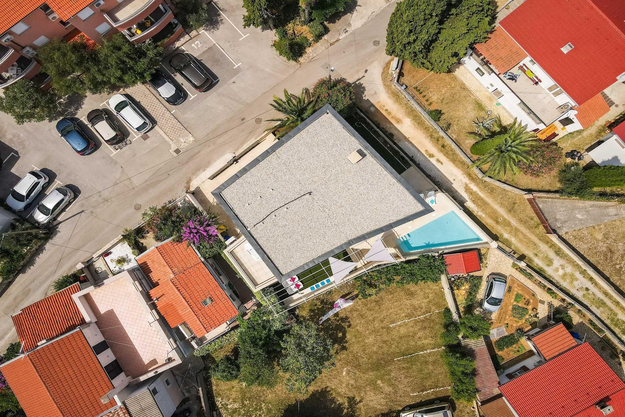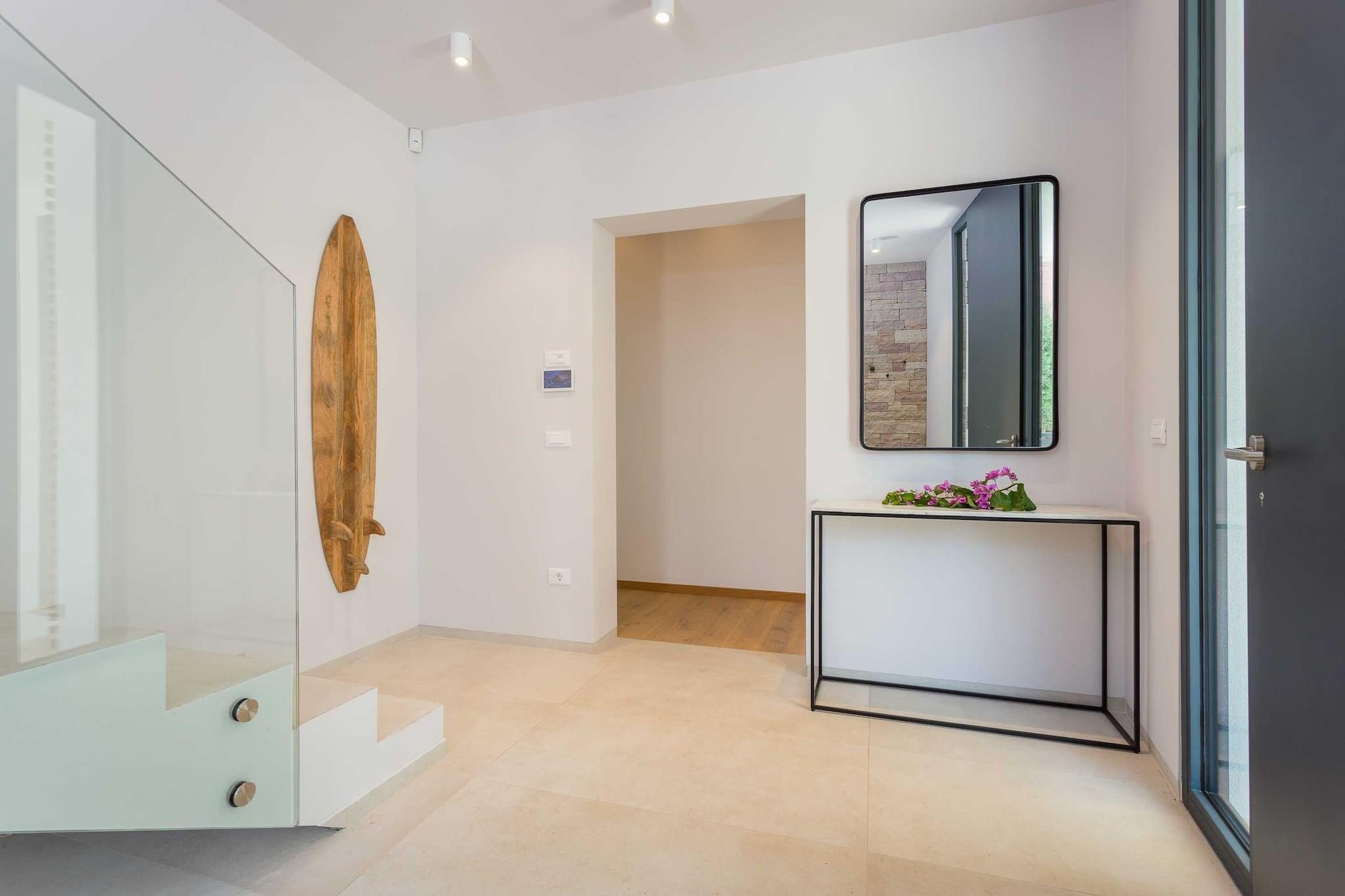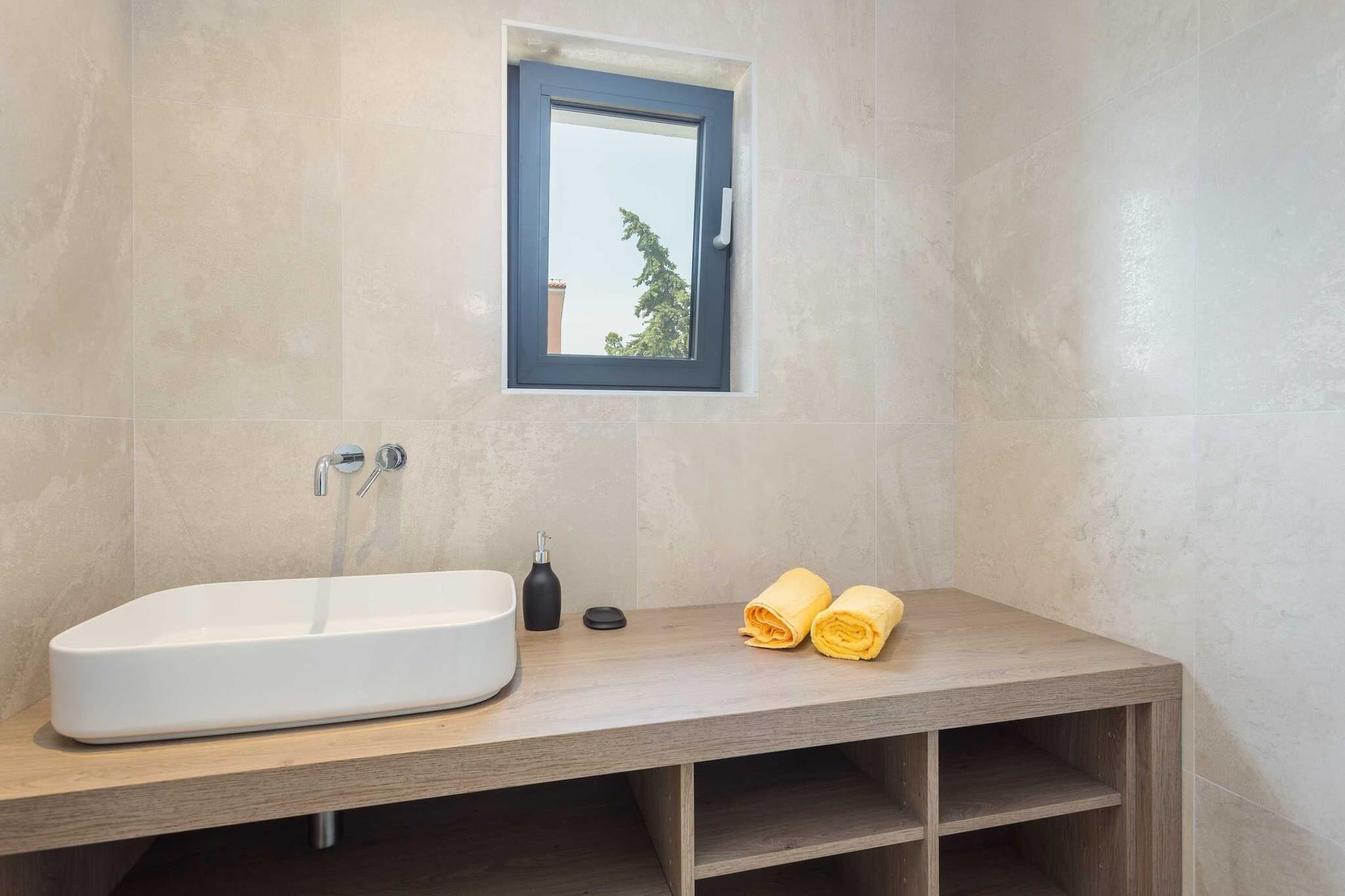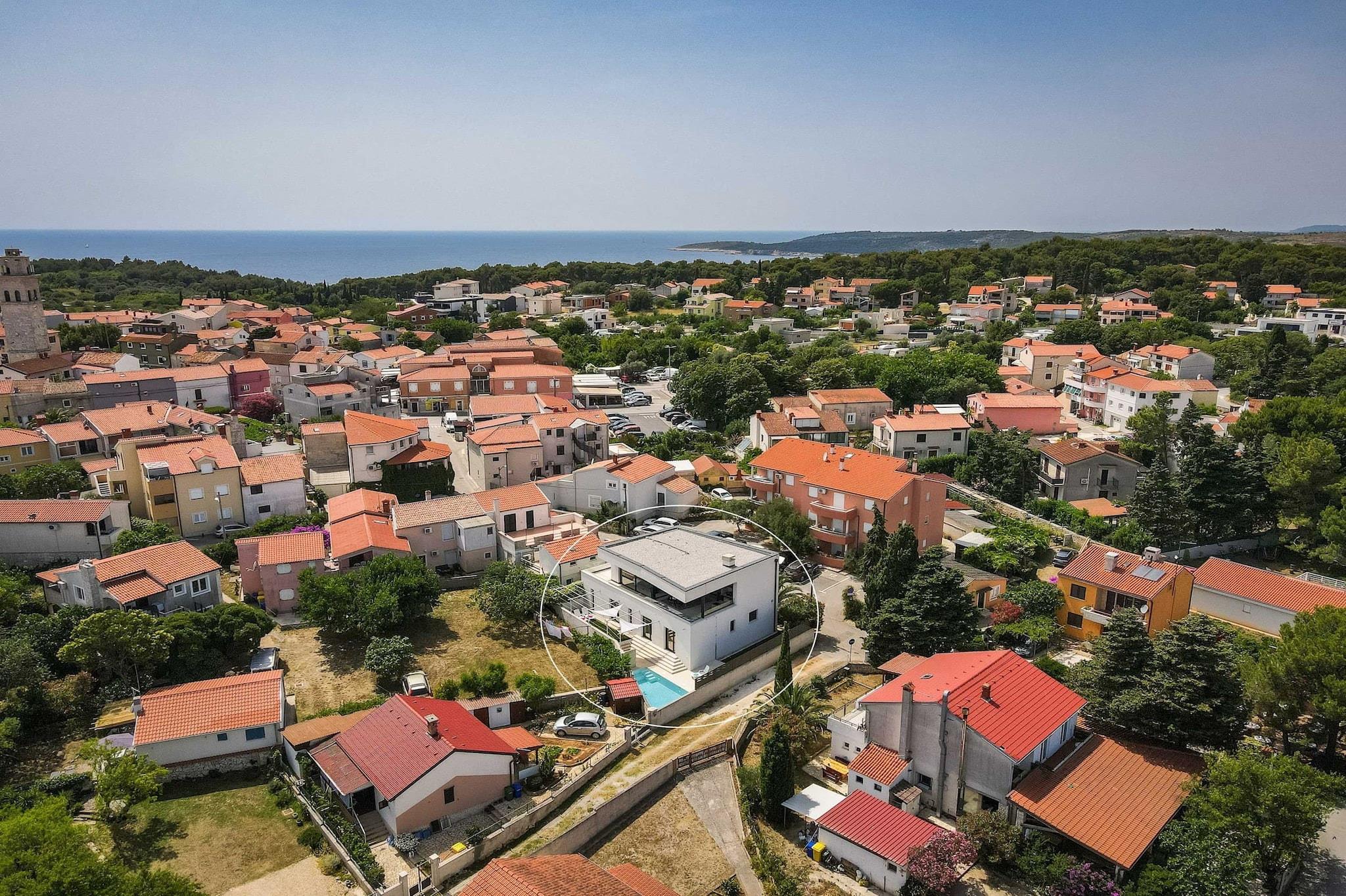 Oplev et fantastisk hus med tre soveværelser beliggende i den pulserende landsby Premantura, med en betagende havudsigt i hele ejendommen. Denne arkitektoniske perle tilbyder gæsterne en privat swimmingpool, der giver mulighed for afslapning, mens du nyder de maleriske omgivelser. Stueetagen indeholder tre rummelige soveværelser, hver med eget badeværelse, hvilket sikrer komfort og privatliv for alle besøgende. En smuk trappe fører til et åbent koncept opholdsområde, der kan prale af et loungeområde, et stort køkken med spiseplads og en ekspansiv terrasse til udendørs spisning midt i den forfriskende havbrise. Bekvemmelighed er nøglen, med privat parkering til to biler inkluderet, samt gratis Wi-Fi og aircondition. For familier, der rejser med spædbørn, er en barneseng tilgængelig uden ekstra gebyr efter anmodning. Dette indbydende hjem er ideelt beliggende kun 50 meter fra hjertet af Premantura, hvor du kan udforske lokale markeder med friske råvarer, charmerende bagerier og dejlige restauranter. Talrige udendørs aktiviteter venter, herunder cykel-, kajak- og bådudlejning, samt organiserede ture til den nærliggende Cape Kamenjak for en dag med eventyr. Premantura er en malerisk, men livlig destination i sommermånederne, omgivet af uspoleret natur og tilbyder en række spisemuligheder. Området kan prale af over 500 plantearter, herunder nogle, der er truede eller endemiske. Gæsterne kan nyde det krystalklare hav sammen med lokale cykelstier og adgang til Munte-stranden, Runke-stranden og Camp Stupice, alle kun en kort 500 meter væk. Med Pula Lufthavn beliggende kun 6 kilometer væk, er dette charmerende hus den perfekte base for en uforglemmelig ferie i fantastiske naturlige omgivelser.