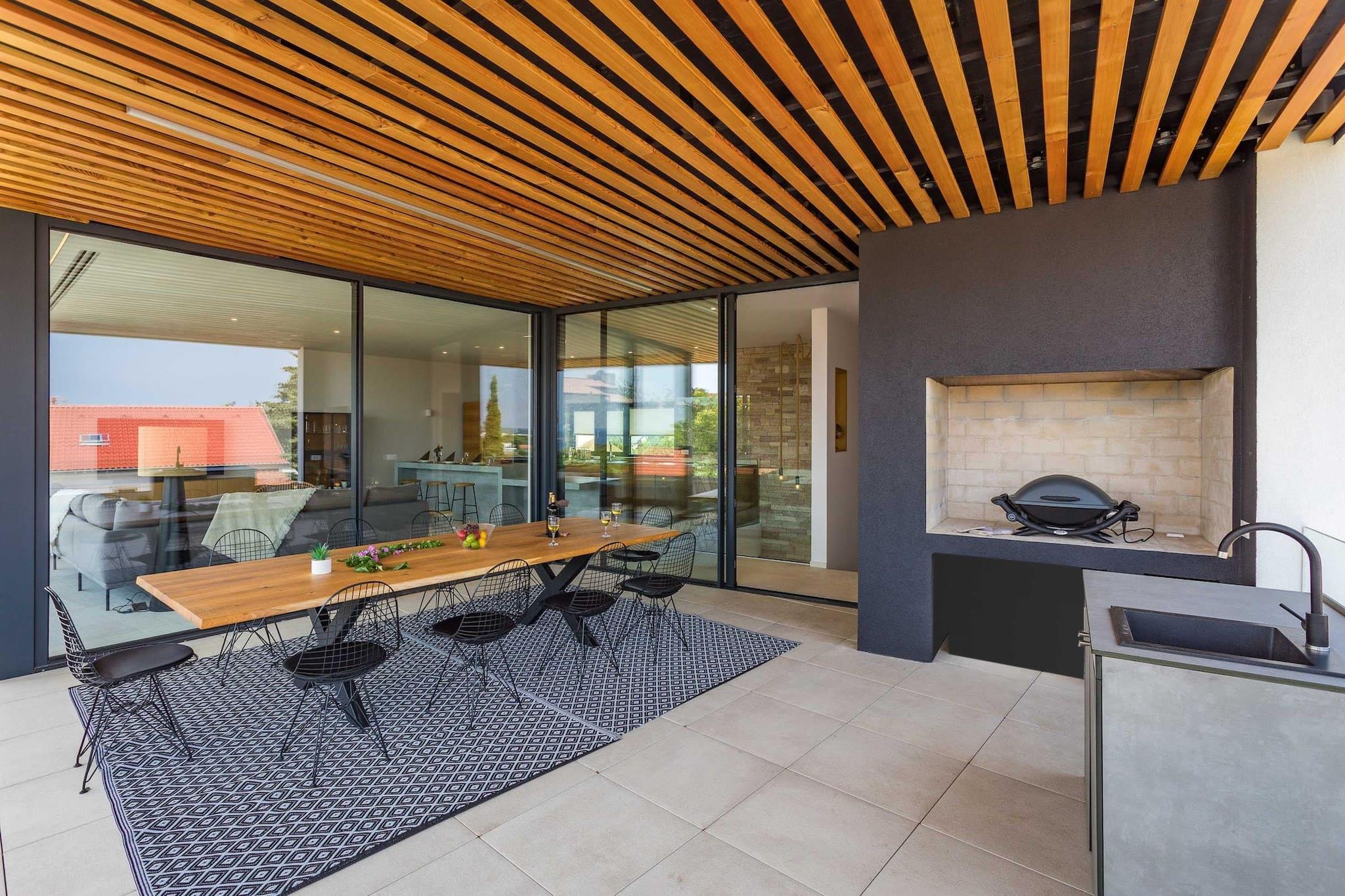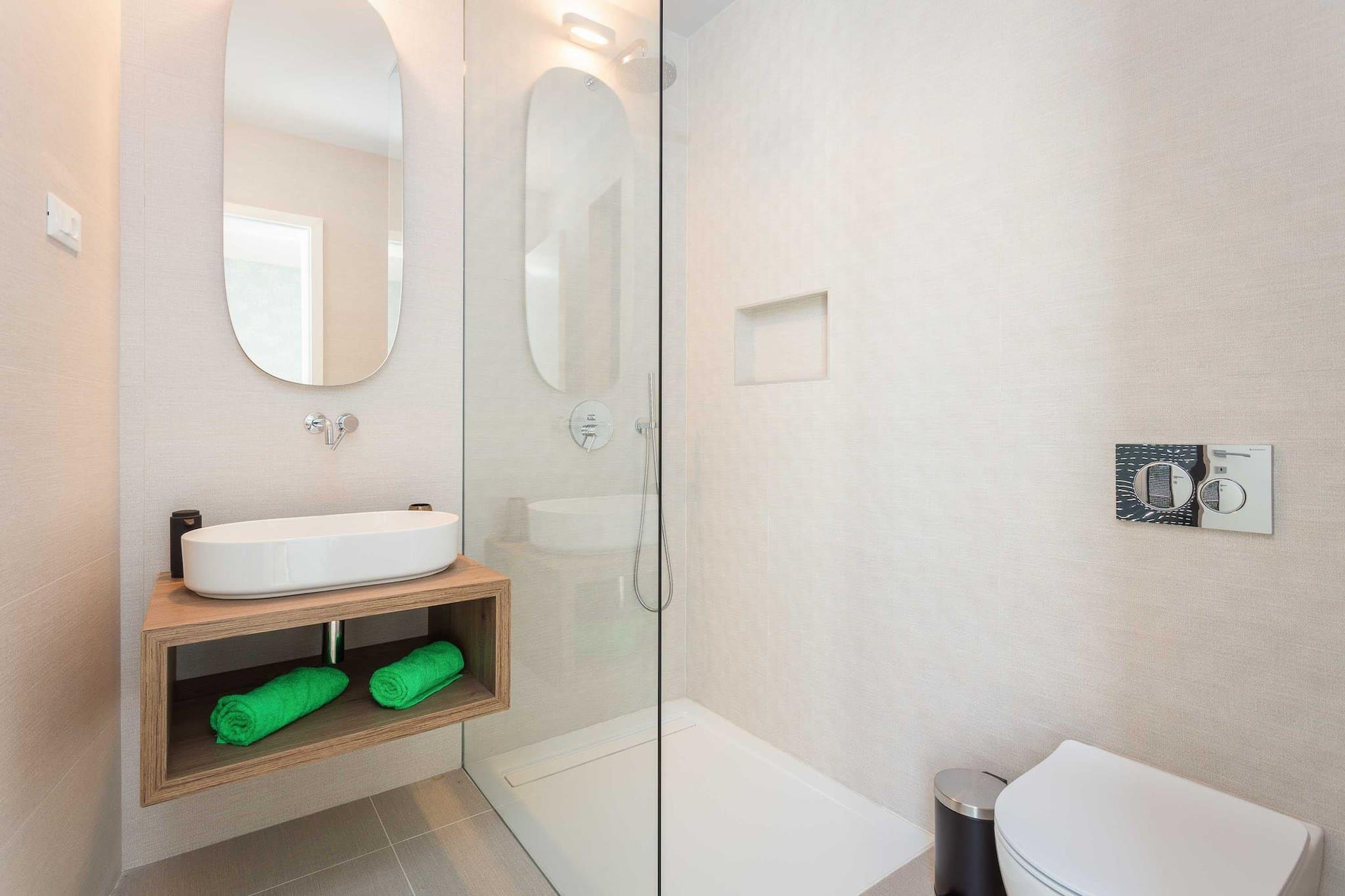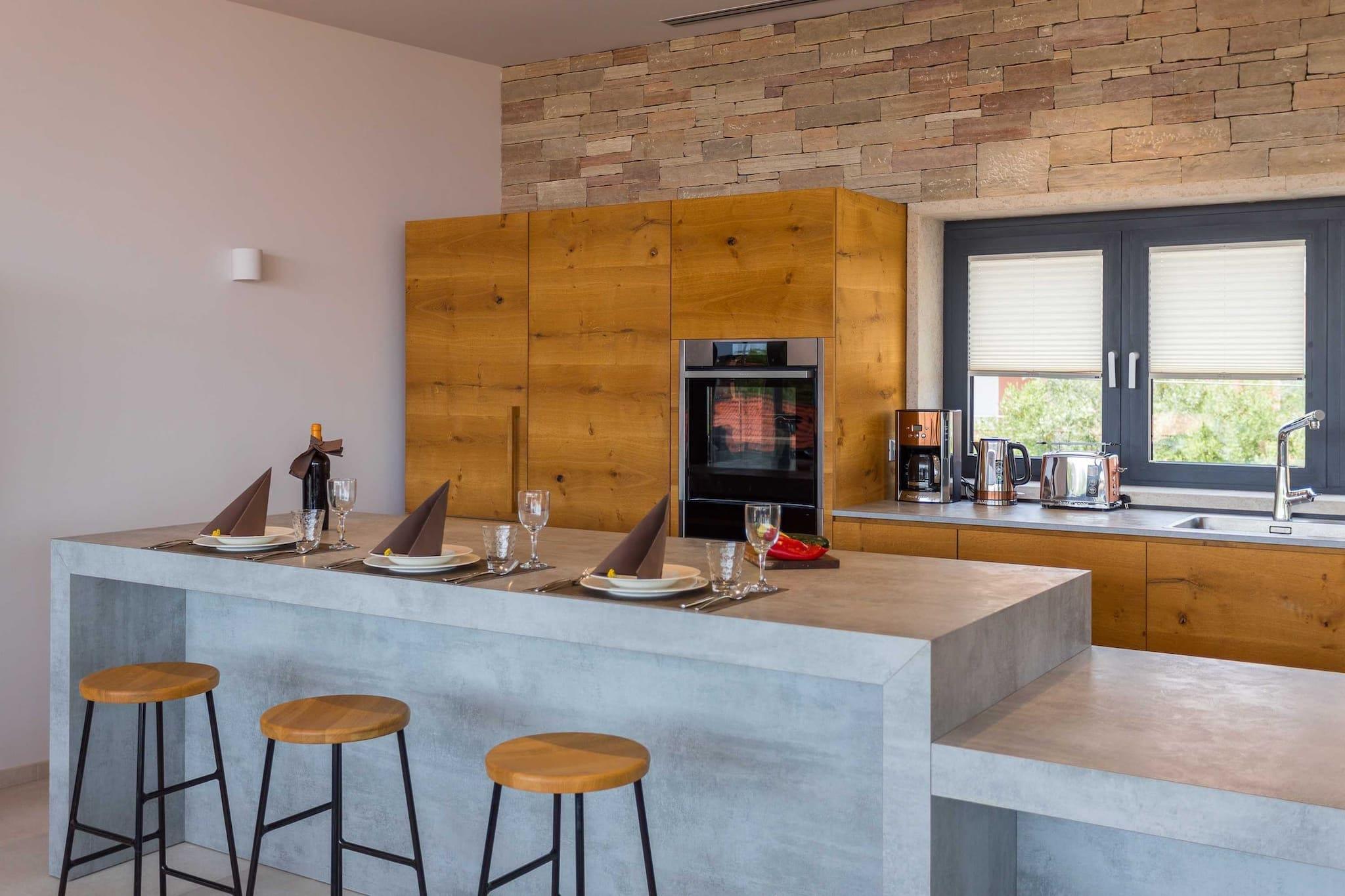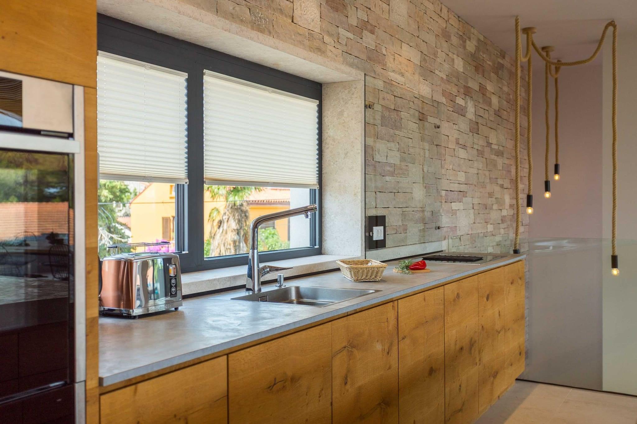 Oplev et fantastisk hus med tre soveværelser beliggende i den pulserende landsby Premantura, med en betagende havudsigt i hele ejendommen. Denne arkitektoniske perle tilbyder gæsterne en privat swimmingpool, der giver mulighed for afslapning, mens du nyder de maleriske omgivelser. Stueetagen indeholder tre rummelige soveværelser, hver med eget badeværelse, hvilket sikrer komfort og privatliv for alle besøgende. En smuk trappe fører til et åbent koncept opholdsområde, der kan prale af et loungeområde, et stort køkken med spiseplads og en ekspansiv terrasse til udendørs spisning midt i den forfriskende havbrise. Bekvemmelighed er nøglen, med privat parkering til to biler inkluderet, samt gratis Wi-Fi og aircondition. For familier, der rejser med spædbørn, er en barneseng tilgængelig uden ekstra gebyr efter anmodning. Dette indbydende hjem er ideelt beliggende kun 50 meter fra hjertet af Premantura, hvor du kan udforske lokale markeder med friske råvarer, charmerende bagerier og dejlige restauranter. Talrige udendørs aktiviteter venter, herunder cykel-, kajak- og bådudlejning, samt organiserede ture til den nærliggende Cape Kamenjak for en dag med eventyr. Premantura er en malerisk, men livlig destination i sommermånederne, omgivet af uspoleret natur og tilbyder en række spisemuligheder. Området kan prale af over 500 plantearter, herunder nogle, der er truede eller endemiske. Gæsterne kan nyde det krystalklare hav sammen med lokale cykelstier og adgang til Munte-stranden, Runke-stranden og Camp Stupice, alle kun en kort 500 meter væk. Med Pula Lufthavn beliggende kun 6 kilometer væk, er dette charmerende hus den perfekte base for en uforglemmelig ferie i fantastiske naturlige omgivelser.