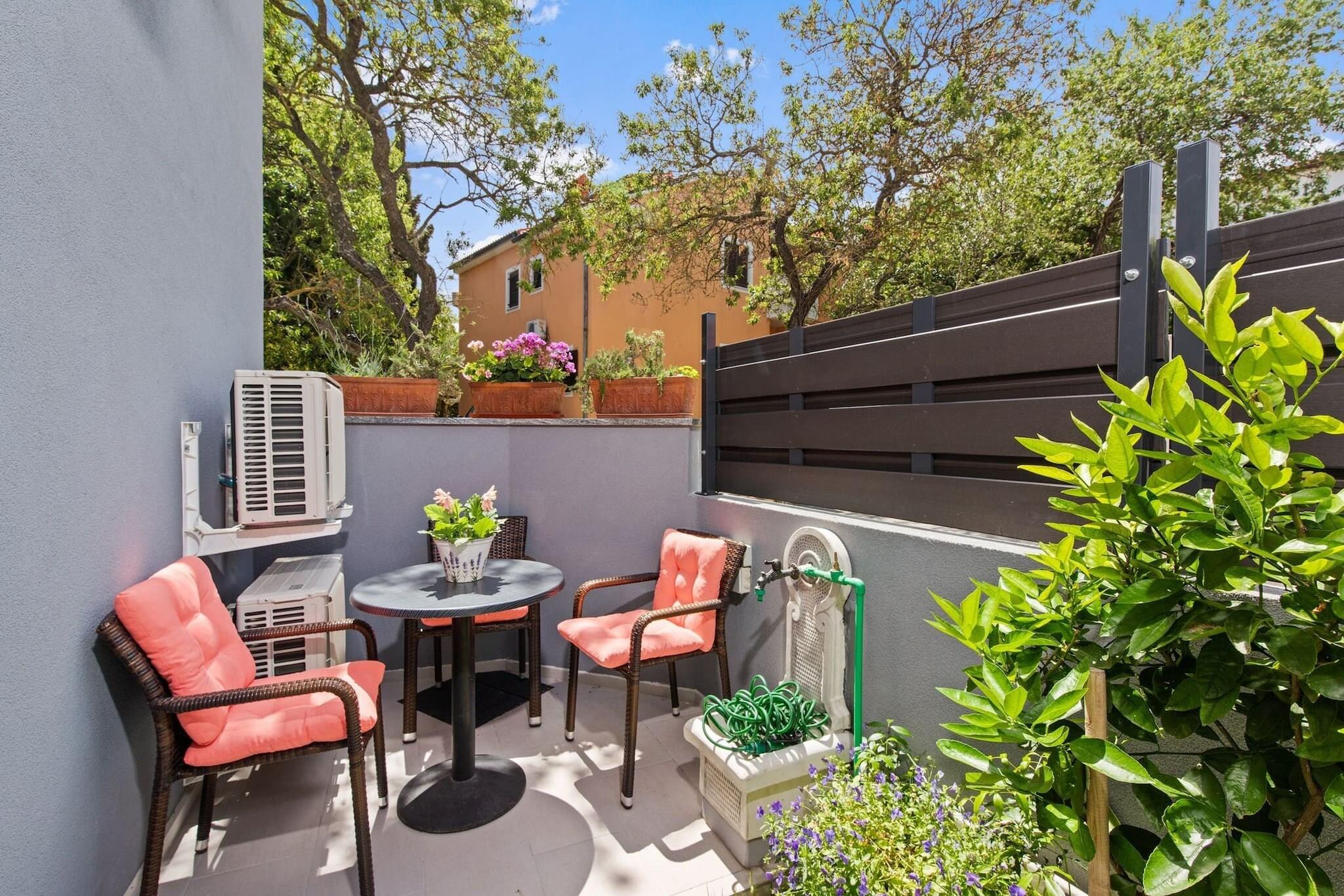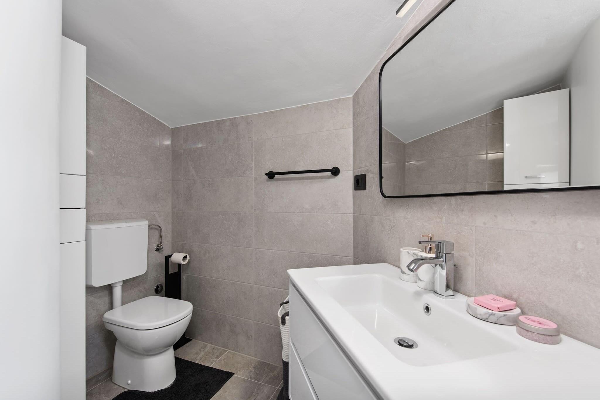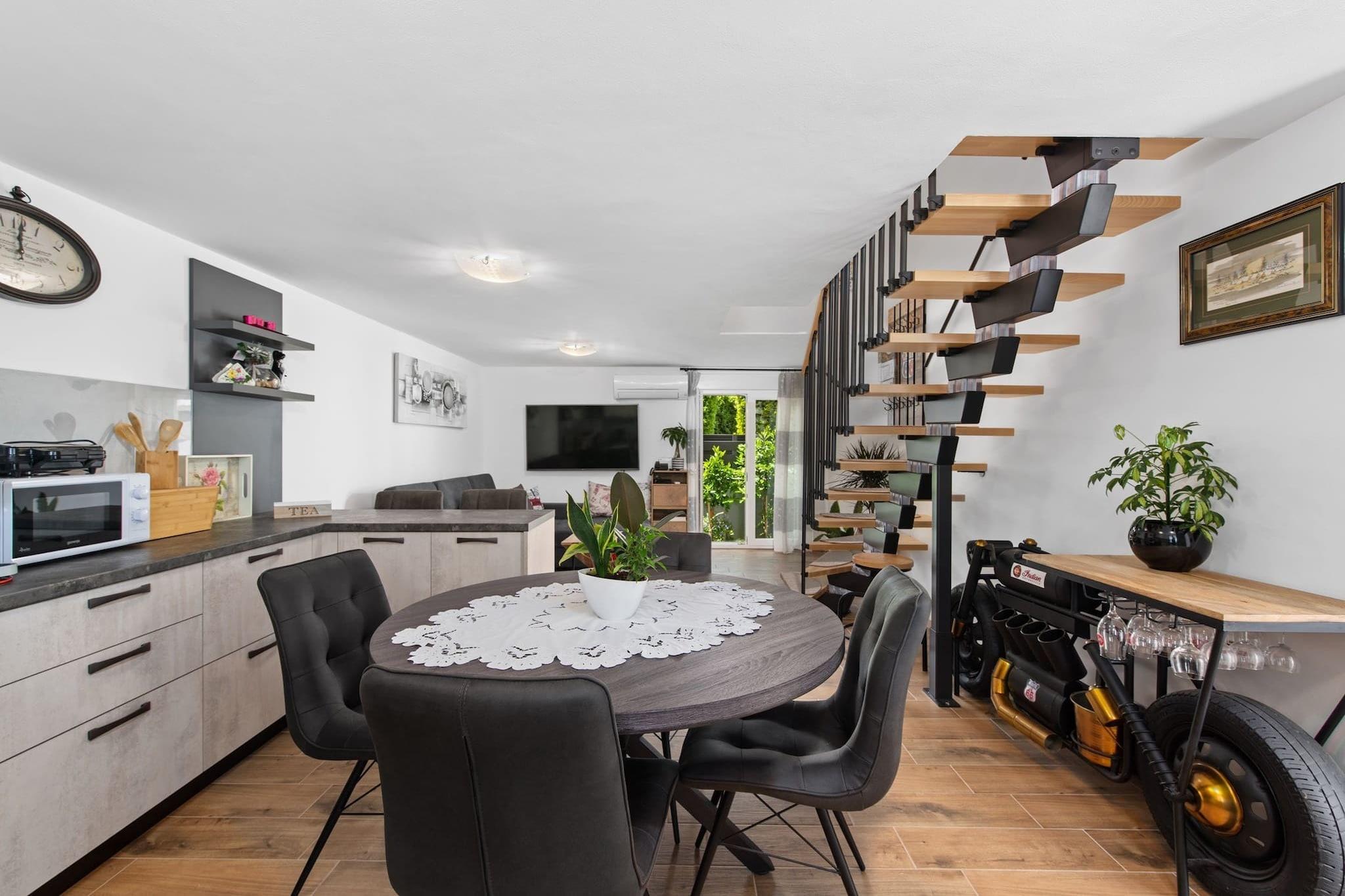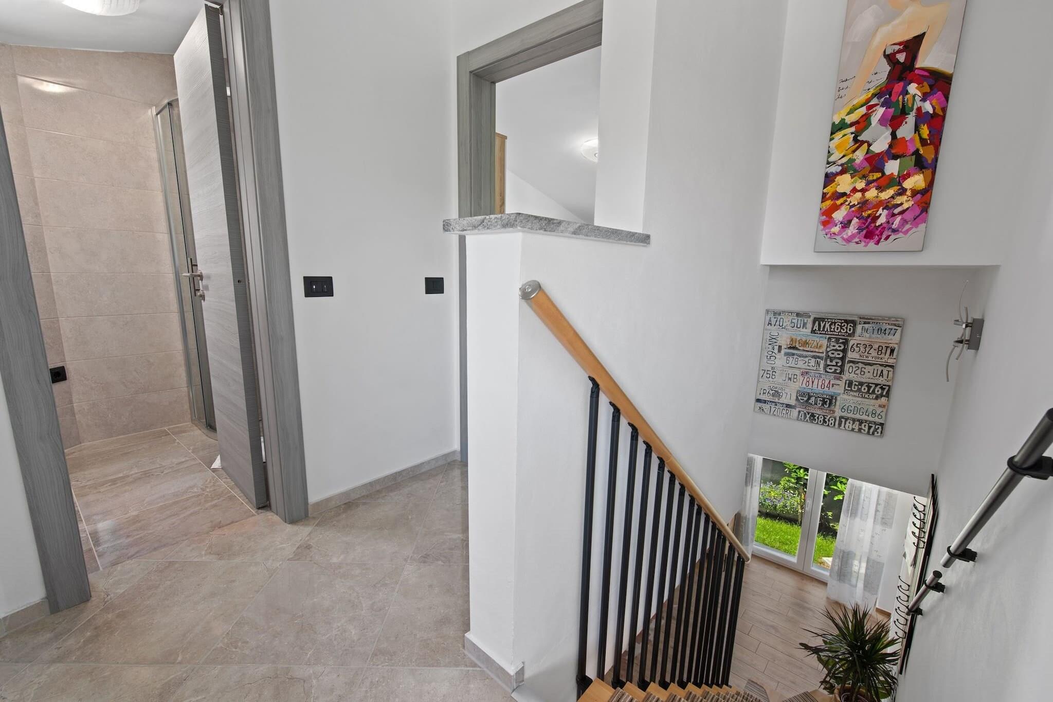 Dette moderne 3-værelses hus i Premantura tilbyder komfortabel indkvartering for op til 8 gæster (maks. 6 voksne) inden for 140 m² af veldesignet boligareal. Ejendommen er ideelt beliggende med udsigt over vandet, hvilket giver et afslappende og naturskønt miljø. Det er fuldt udstyret med væsentlige faciliteter, herunder aircondition i hele huset, en vaskemaskine, Wi-Fi og 4 tv med satellitkanaler. Køkkenet er i åbent plan og udstyret med en blanding af gas- og elektriske apparater, herunder køleskab, mikroovn, ovn, fryser og opvaskemaskine. Gæsterne kan også nyde det udendørs rum, der byder på en have, terrasse, grill og udendørsmøbler, hvilket gør det til et ideelt sted for familiesammenkomster. Huset er perfekt beliggende i en familievenlig zone, med nem adgang til forskellige faciliteter og attraktioner. Det ligger kun 20 meter fra et supermarked, 30 meter fra busstationen og 50 meter fra en restaurant. Ejendommen ligger også kun 100 meter fra byens centrum og 300 meter fra en klippestrand, der byder på masser af muligheder for udforskning og afslapning. Derudover ligger den nærmeste togstation 6 km væk, og lufthavnen ligger kun 8 km fra huset, hvilket giver bekvemme rejsemuligheder. Det fuldt udstyrede køkken er perfekt til at tilberede måltider under dit ophold, med en række apparater og køkkenudstyr, herunder en kaffemaskine, brødrister og kedel. Uanset om du slapper af indendørs eller nyder den udendørs terrasse, byder dette hus på både komfort og bekvemmelighed. Med dets rummelige layout og førsteklasses beliggenhed er det et godt valg for familier, der søger et fredeligt, men tilgængeligt tilflugtssted i Premantura.