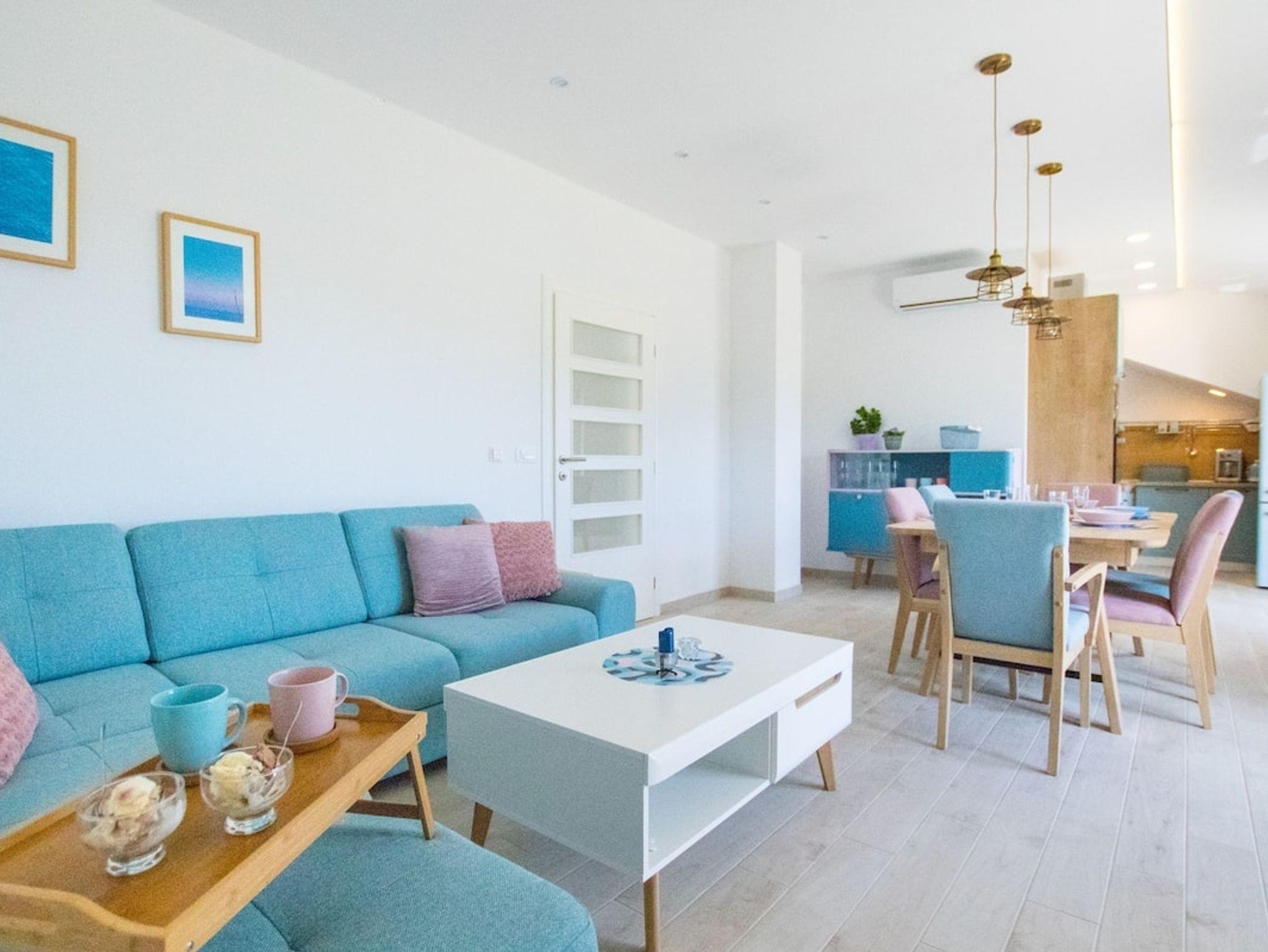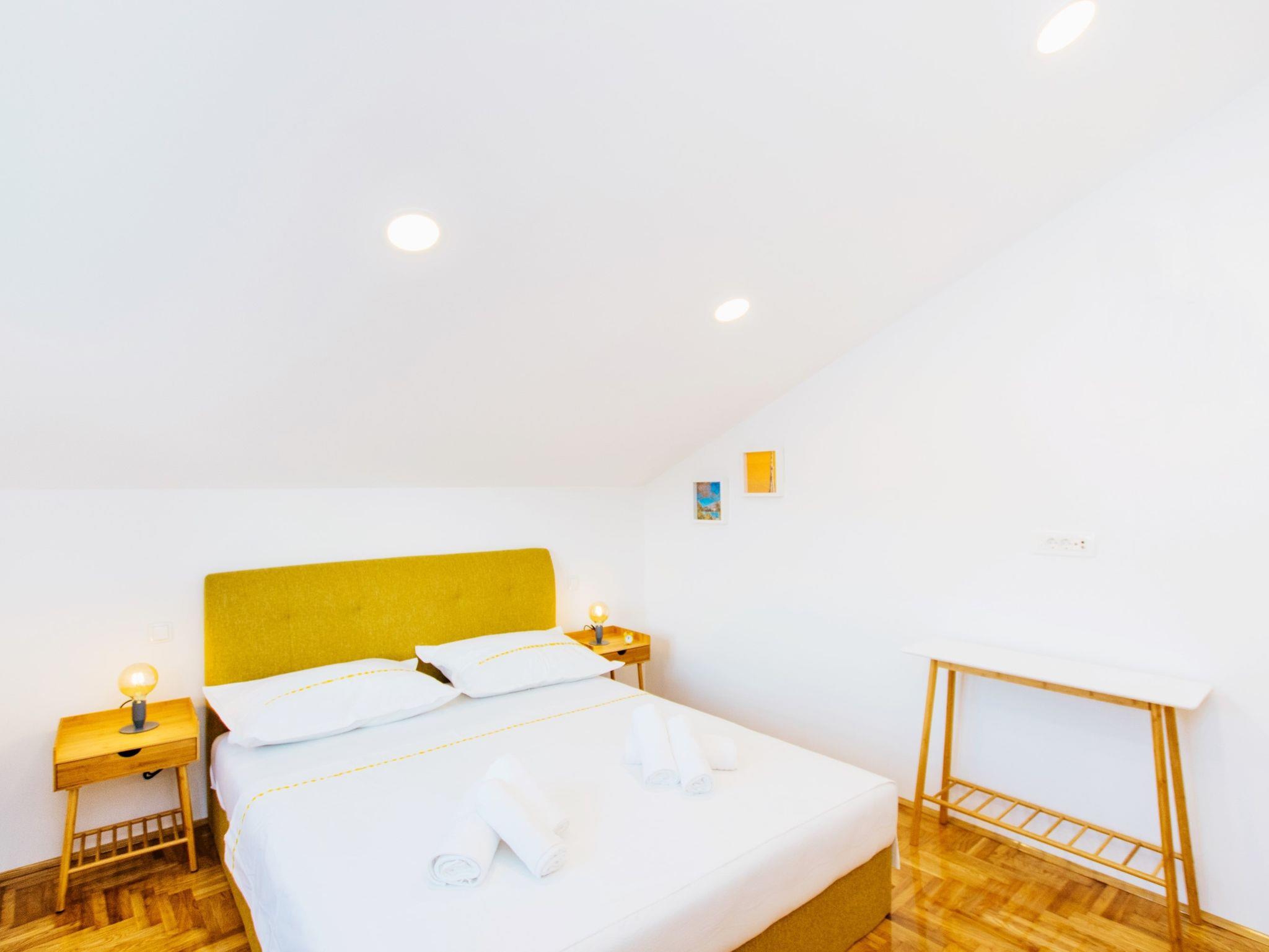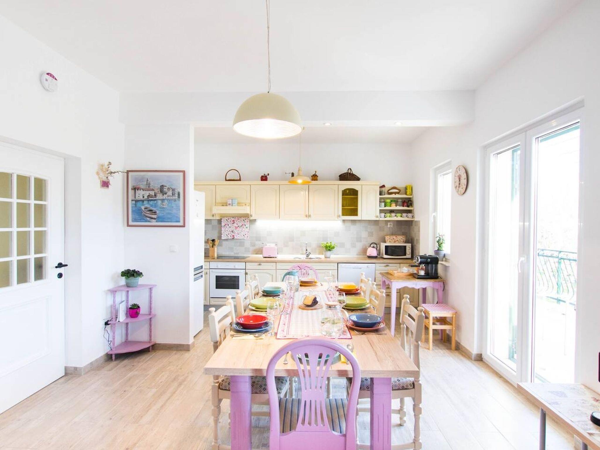 Haus bietet Platz für 10 Gäste. Die Betten sind in Schlafzimmern, die es 5 gibt, innerhalb einer Gesamtfläche von 170m2, angeordnet. Die Gäste haben eine eigene Terrasse zur Verfügung, auf der sie in warmen Sommernächten genießen können. Das Haus bietet Meerblick. Für vollen Genuss und Entspannung gibt es einen privaten Grill für Gäste dieser Unterkunft. Während ihres Aufenthalts können Gäste das gemeinsam zur Nutzung stehende Schwimmbad benutzen. IM PREIS INBEGRIFFEN: Kurtaxe, Endreinigung, Klimatisierung, Pool, Parkplatz, Internet, Kinderbett, Bügeleisen, Bügelbrett, Föhn, Sonnenschirm, Liegestühle. UNVERBINDLICHE ZUSÄTZLICHE KOSTEN: Zusatzbett (100,00 € pro Nacht). Die Verfügbarkeit zusätzlicher Dienstleistungen in Ihrem reservierten Termin und die Preise derselben (falls nicht aufgeführt) müssen im Voraus überprüft werden. Zusätzliche Dienstleistungen die in der Zahlungsaufforderung nicht aufgeführt sind werden direkt beim Vermieter bezahlt, angenommen der Gast nutzt auch diese. Ermäßigung auf den Grundpreis: Gratistag 21=19 (bei einem Aufenthalt von 21 Tagen oder mehr erhalten Sie 2 Gratistage für den Aufenthalt bis 31.12.26).
