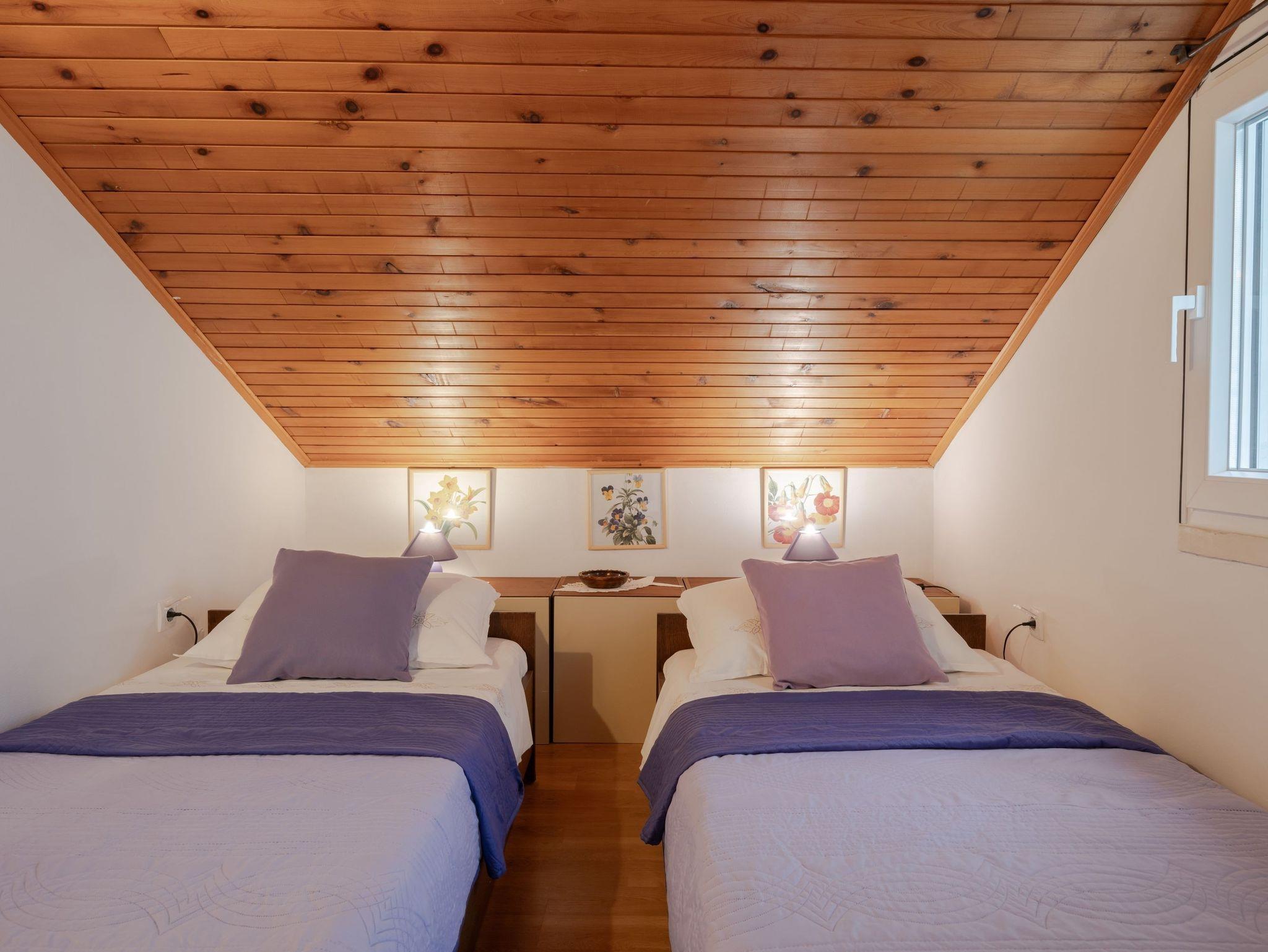 Ferienwohnung bietet Platz für 6 Gäste. Die Betten sind in Schlafzimmern, die es 3 gibt, innerhalb einer Gesamtfläche von 80m2, angeordnet. Die Gäste haben eine eigene Terrasse zur Verfügung, auf der sie in warmen Sommernächten genießen können. Das Apartment bietet Meerblick. Es ist erlaubt, Speisen auf dem Gemeinschafts-Grill vorzubereiten. IM PREIS INBEGRIFFEN: Kurtaxe, Endreinigung, Klimatisierung, Parkplatz, Internet, Bootsanlegeplatz, Bügeleisen, Bügelbrett, Föhn, Sonnenschirm, Liegestühle. Die Verfügbarkeit zusätzlicher Dienstleistungen in Ihrem reservierten Termin und die Preise derselben (falls nicht aufgeführt) müssen im Voraus überprüft werden. Zusätzliche Dienstleistungen die in der Zahlungsaufforderung nicht aufgeführt sind werden direkt beim Vermieter bezahlt, angenommen der Gast nutzt auch diese. Ermäßigung auf den Grundpreis: Gratistag 14=13 (bei einem Aufenthalt von 14 Tagen oder mehr erhalten Sie einen Gratistag für den Aufenthalt bis 31.12.26).