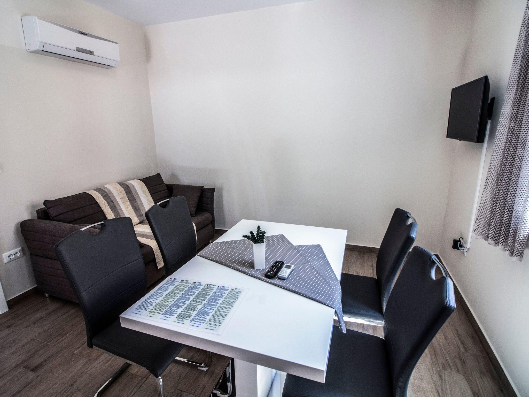 Inside, Villa Aurea 2 is tastefully arranged to provide comfort and convenience during your stay. The apartment features two inviting double rooms, ensuring a restful sleep after a day of exploration. A well-equipped kitchen, complete with an induction hob, coffee machine, dishwasher, and electric kettle, opens into a cozy living room, making it an ideal space for gatherings or simply unwinding. The apartment is partially air-conditioned and offers complimentary Wi-Fi access, catering to all your needs for a hassle-free holiday.