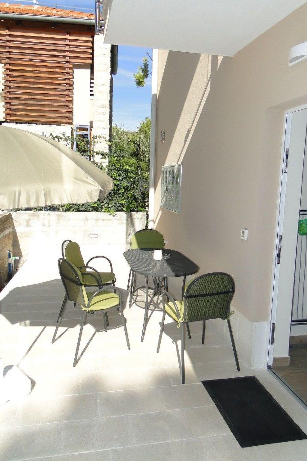 The outdoor area of Villa Aurea 2 celebrates the beauty of its surroundings, boasting a terrace that looks out to a charming garden view. Guests are welcome to revel in the shared pool, offering a refreshing respite from the warmth of the Dalmatian sun. Although grilling is not permitted, the terrace serves as a peaceful spot to enjoy morning coffees or evening conversations under the stars. A dedicated parking space is provided next to the villa, adding convenience for those arriving by car.