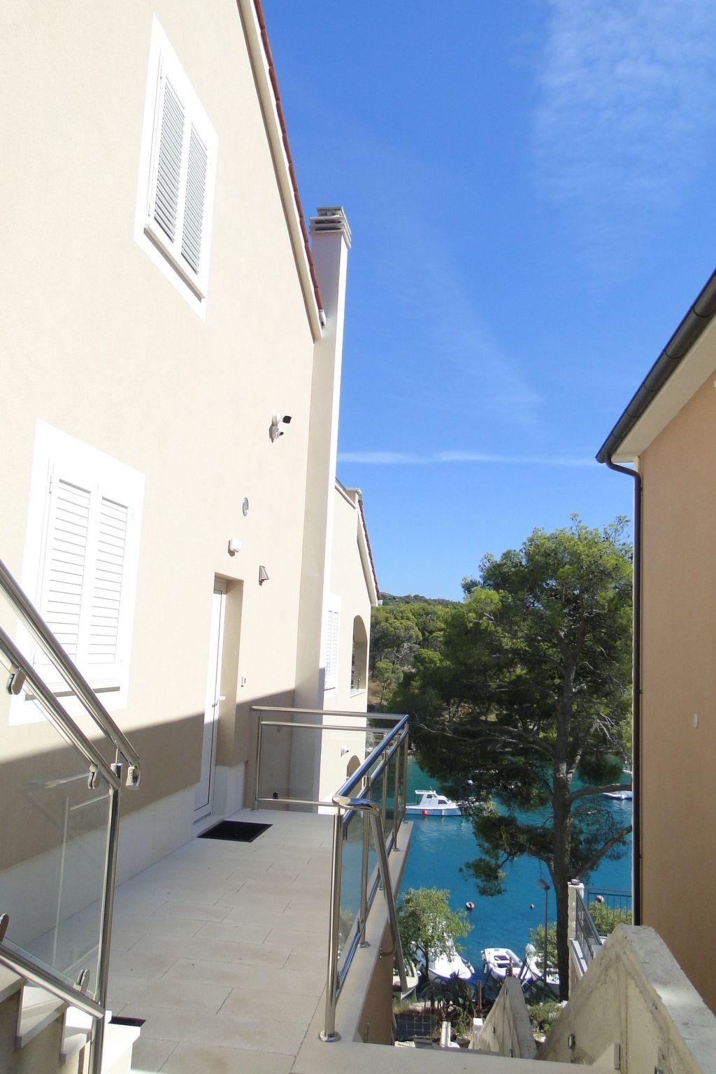 Step outside to discover an array of outdoor features designed for leisure and relaxation. The apartment's balcony presents a wonderful spot to enjoy the sea's serene views with your morning coffee or an evening drink. For a more immersive experience, the rooftop terrace offers exclusive access to an expansive area, perfect for sunbathing or enjoying a romantic dinner under the stars. Additionally, the communal pool beckons for a refreshing dip, set against the backdrop of Primošten's picturesque bay.