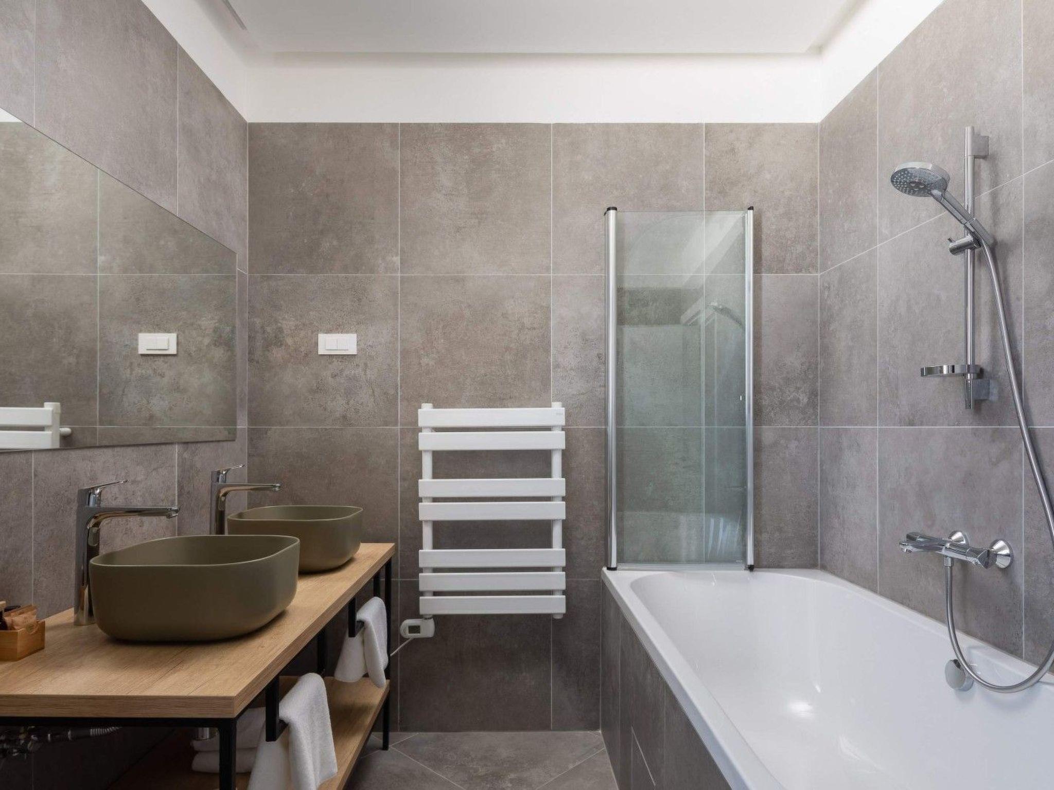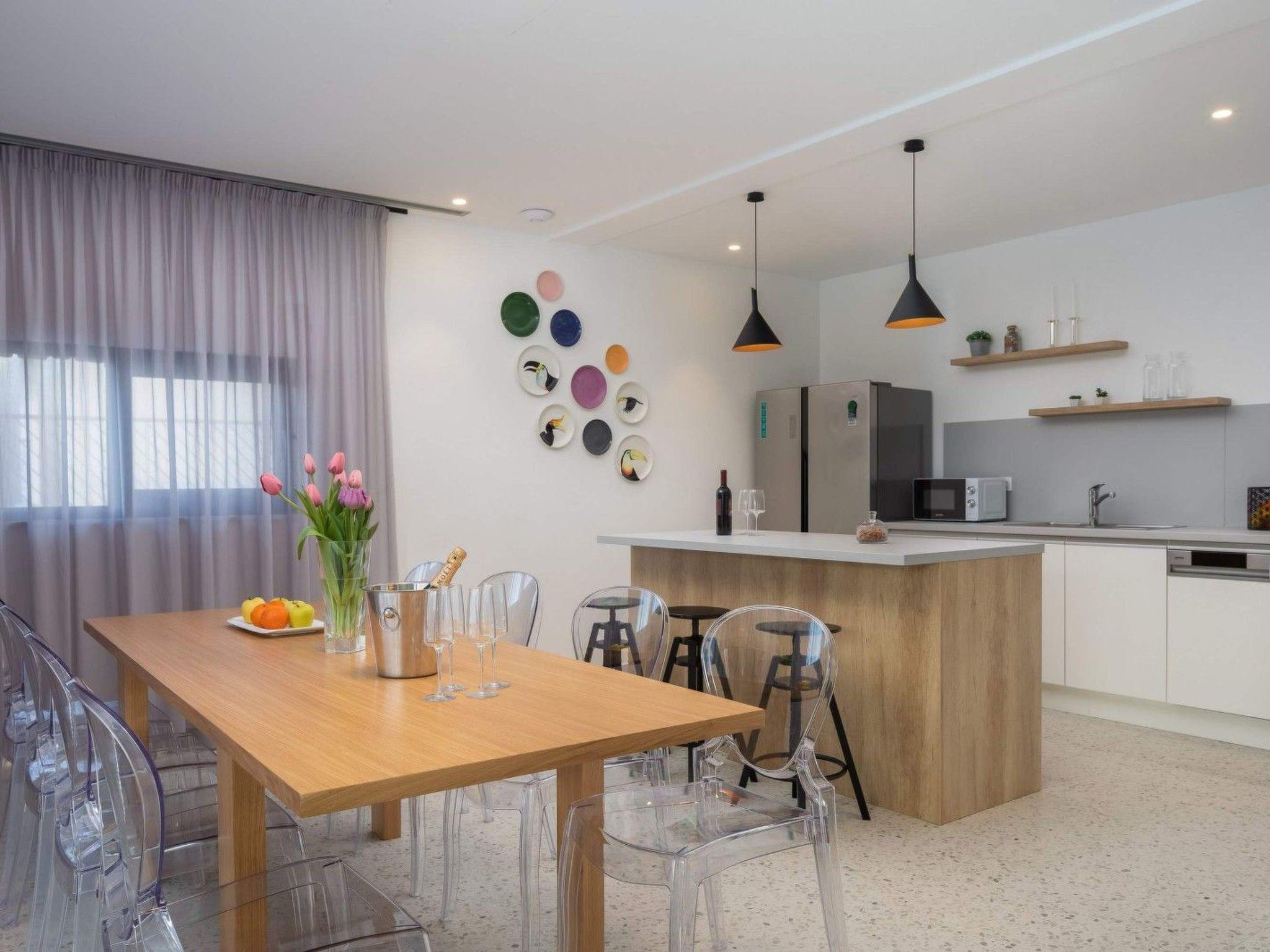 The number of bedrooms is 4, all with an en-suite bathroom. Two bedrooms have double beds and the other two have two single beds. All the bedrooms have large windows, so you will be sun-soaked from the morning.