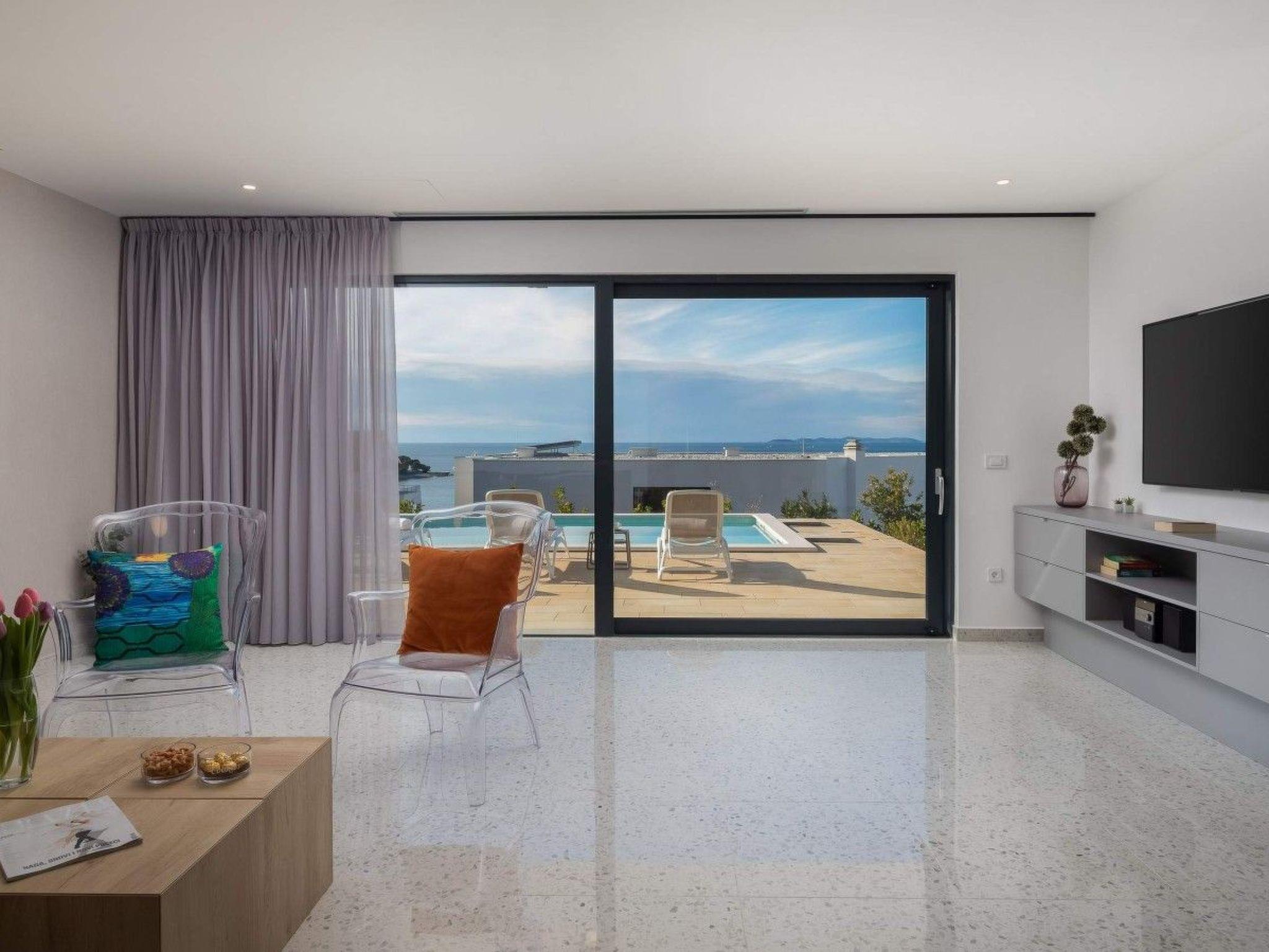 We are sure you will be spending most of your time in the outdoor area. Whether you spend it by the pool or on the terrace, you will be able to experience one of the most amazing panoramic views you have ever seen. By the already mentioned infinity pool, you will find its best friends, the sun loungers and sun umbrellas. With this holiday, the triple S is guaranteed—sea, sun, and summer. And, just like in commercials, there is even more! By the pool, you will find the jacuzzi, and in the villa, the sauna and relaxation room. Everything you need for an excellent holiday.