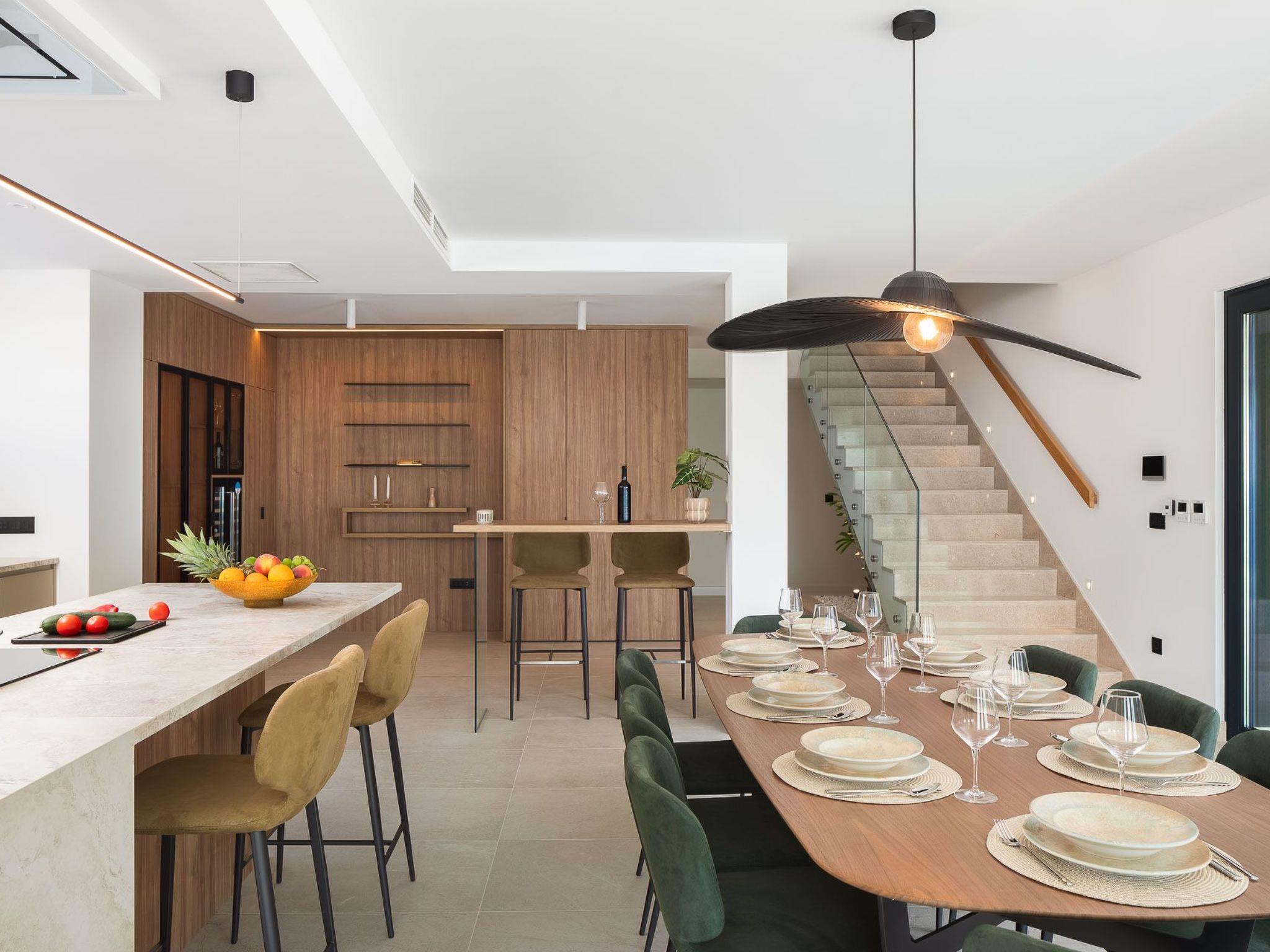 Inside, the villa boasts comprehensive features to ensure your stay is nothing short of luxurious. All rooms are fitted with underfloor heating and air conditioning, ensuring your comfort regardless of the season. A fully equipped kitchen with a dishwasher, coffee machine, and coffee capsules/pods allows for hassle-free meal preparation. Additional conveniences include a washing machine and clothes dryer for exclusive use within the property, ensuring all the practicalities of home are at your fingertips.