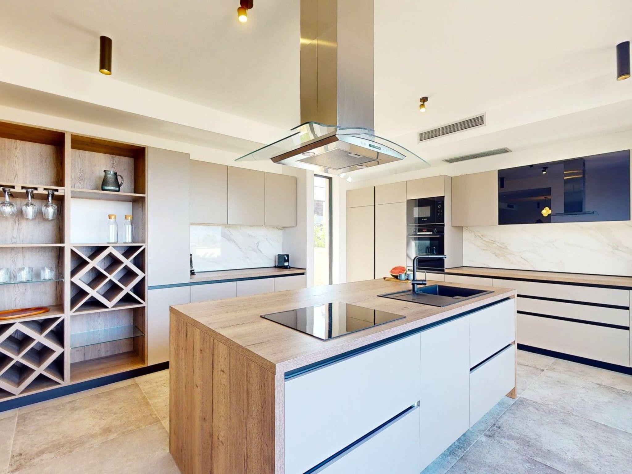 Inside Villa Olives, elegance meets functionality across six beautifully appointed bedrooms and six bathrooms, ensuring privacy and ease for all guests. Each space within this holiday house is crafted for relaxation, with underfloor heating stretching throughout to keep you cozy during cooler days. The convenience of a washing machine and clothes dryer for exclusive use enhances your stay, making it feel like a true home away from home. The presence of a dishwasher, coffee machine, electric kettle, and a fireplace adds layers of comfort and luxury to your stay, making indoor living as pleasant as the outdoor experiences.