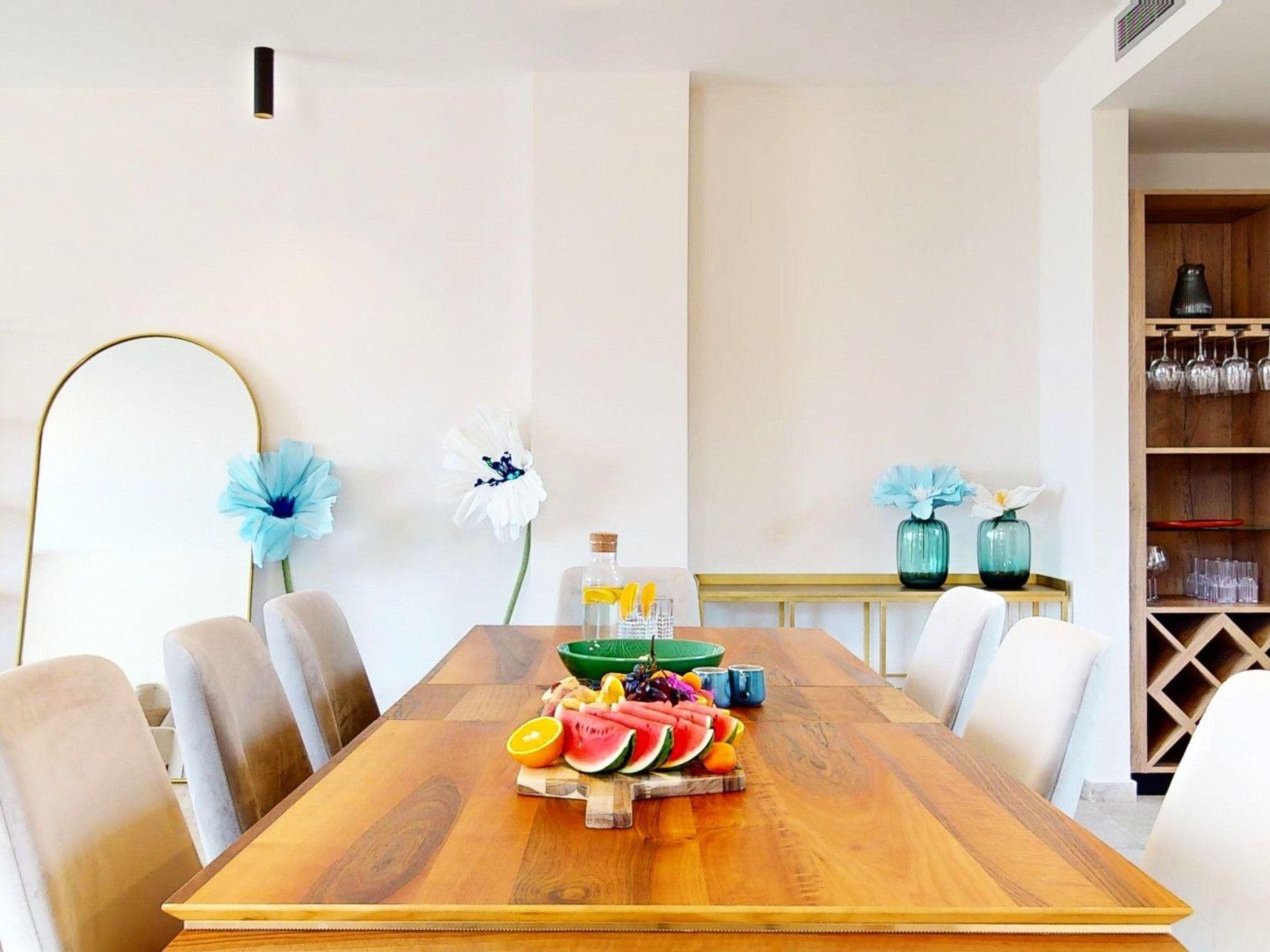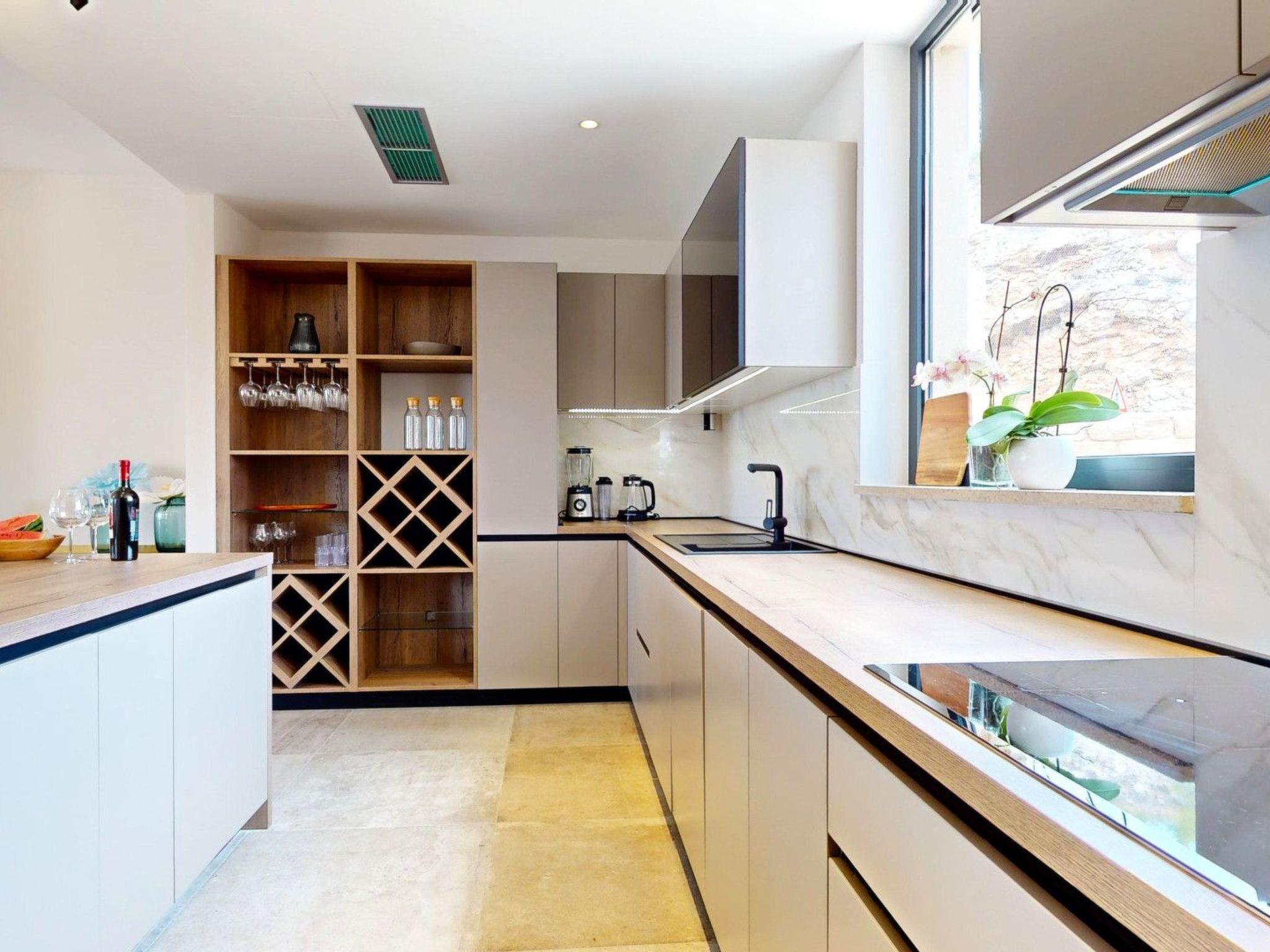 Inside Villa Figs, guests are treated to an array of amenities designed with their comfort in mind. Each of the four bedrooms is complemented by its own bathroom, ensuring privacy and convenience for all occupants. The house boasts underfloor heating throughout, along with air conditioning in certain areas, creating a comfortable environment regardless of the season. Culinary enthusiasts will appreciate the fully equipped kitchen, complete with a dishwasher, coffee machine, and electric kettle, promising delightful meals and warm gatherings.