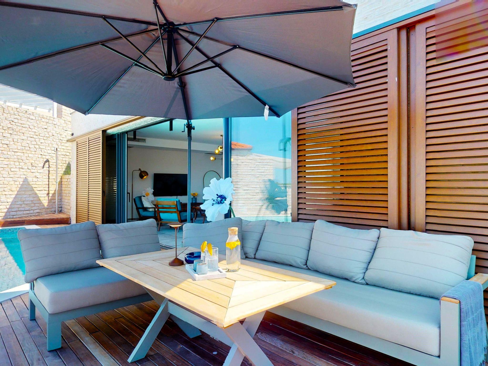 Stepping outside, the ground floor reveals a serene private pool, surrounded by sun loungers beckoning you to bask in the sun's warmth. The terrace and garden, exclusively yours to enjoy, present a tranquil setting for leisurely afternoons or evening gatherings under the stars. Whether you're seeking solitude or space for socializing, the outdoor amenities of Villa Oleander cater to every mood.