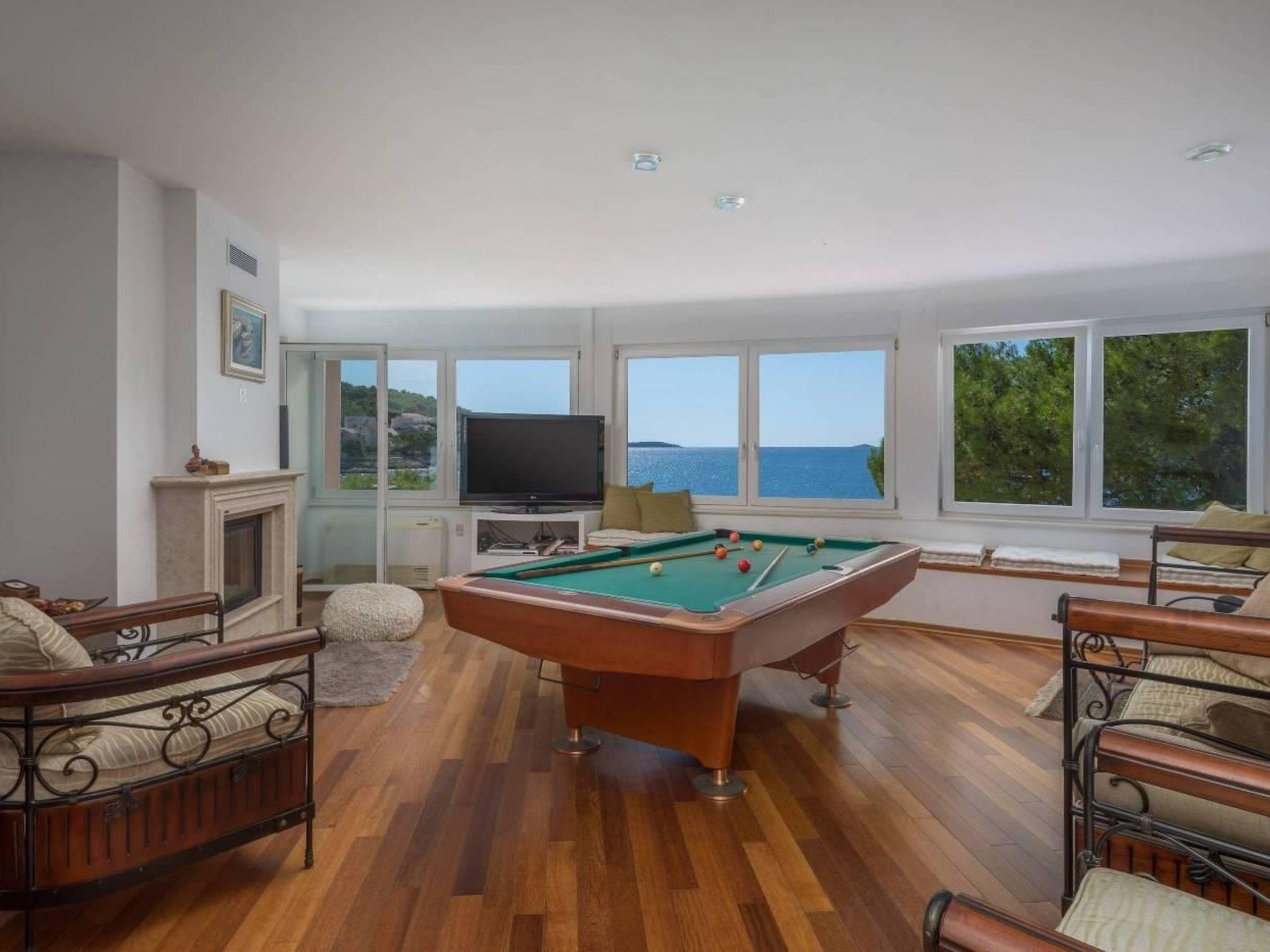 Guests can fire up the barbecue in the quiet area and dine under the stars with an incredible view. The private pool is the perfect spot to soak up the surrounding and the warm sunshine while enjoying the spectacular view of the Adriatic Sea. The large central covered terrace is perfect for alfresco meals near the sea. For entertainment, billiards, and gym equipment are available while children can jump and enjoy on the trampoline.
