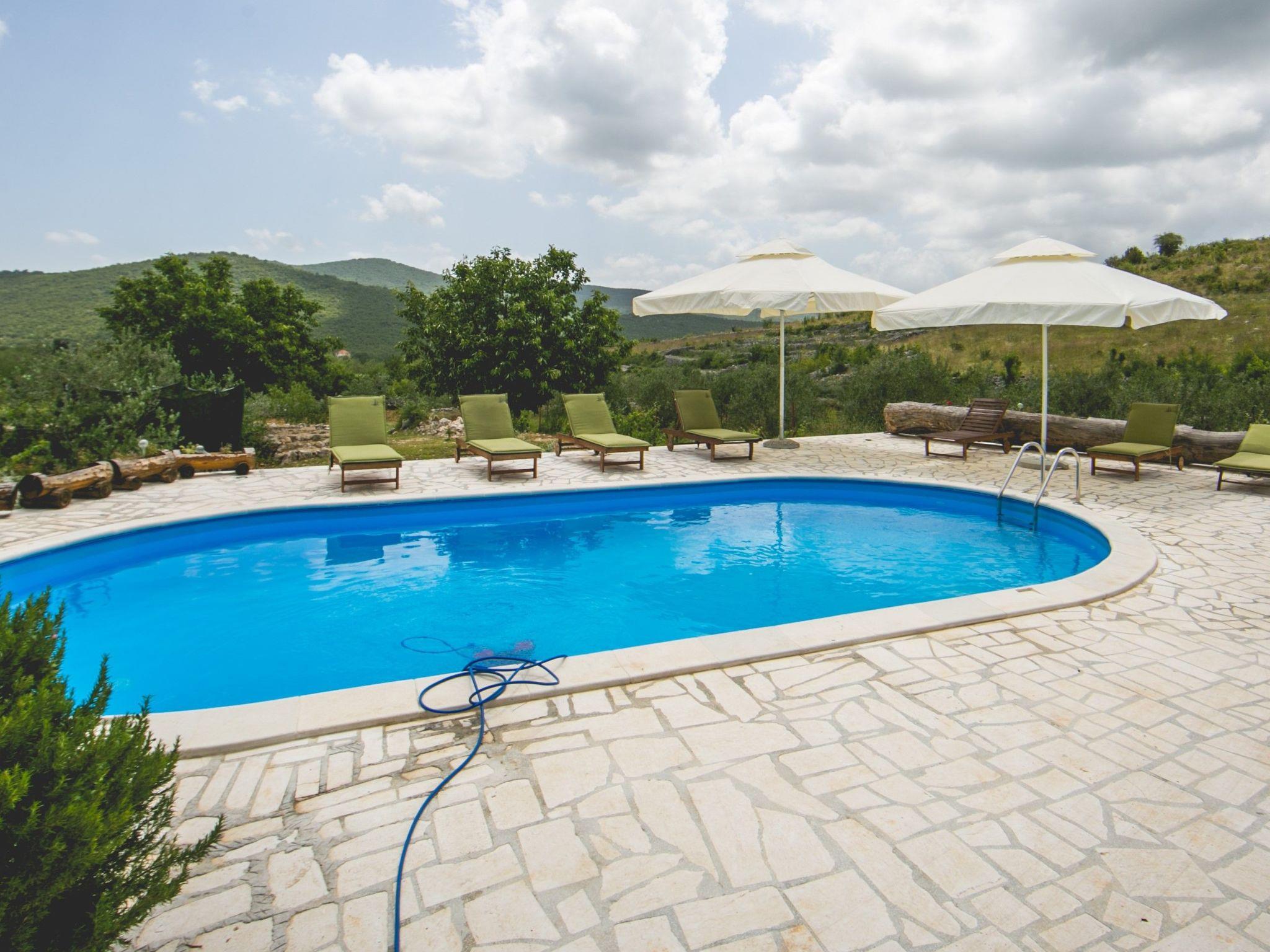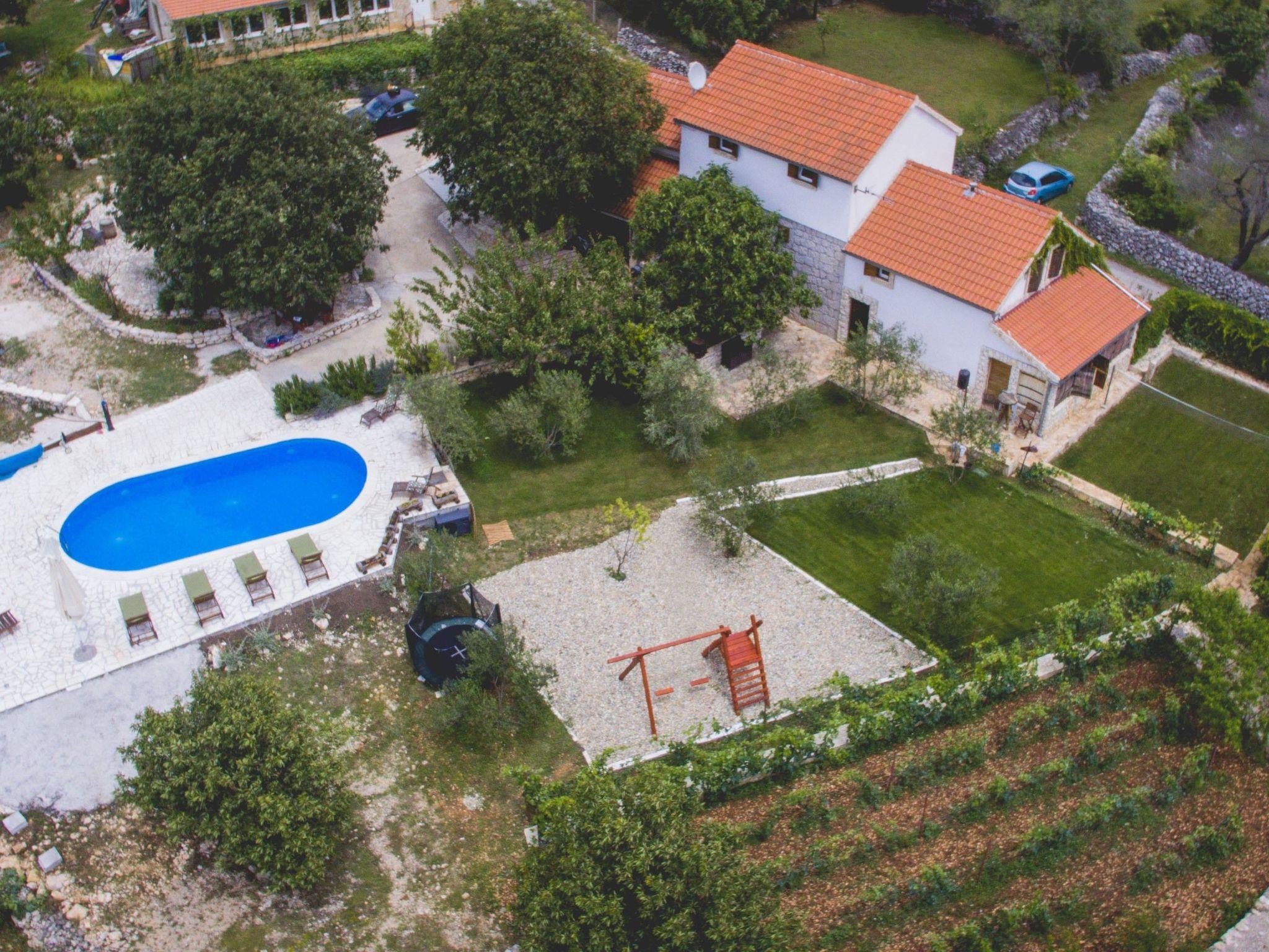 In middle part of Dalmatia, very close to Trogir, Split, Šibenik and Krka river. Situated in idyllic environment on large plot of 25000 m2, with agricultural sorts planted on it, like olives, grapes and all sorts of fruits, so characteristic for the Dalmatian hinterland. Enjoy summer heat and relax on our outdoor heated swimming pool with deck chairs for sun bathing.