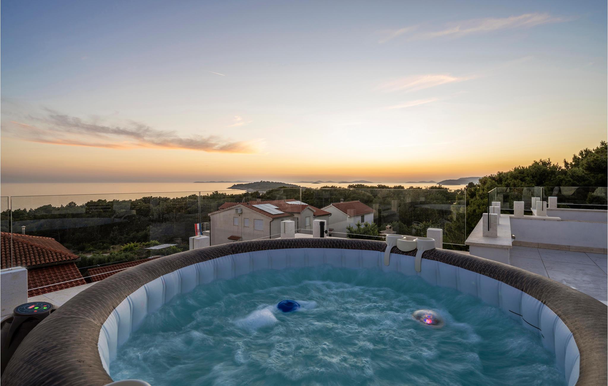 I nærheden af Primosten, en af de smukkeste byer i området, ligger dette moderne udstyrede feriehus med en smuk tagterrasse med spabad. Herfra kan I nyde panoramaudsigten over hele bugten.