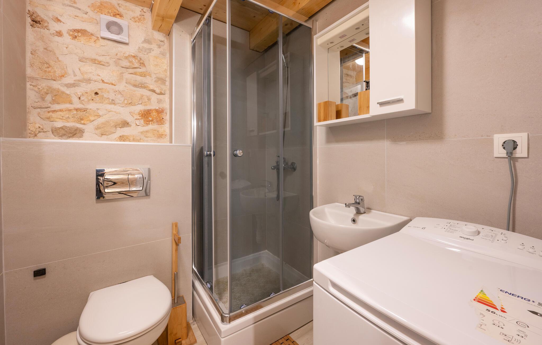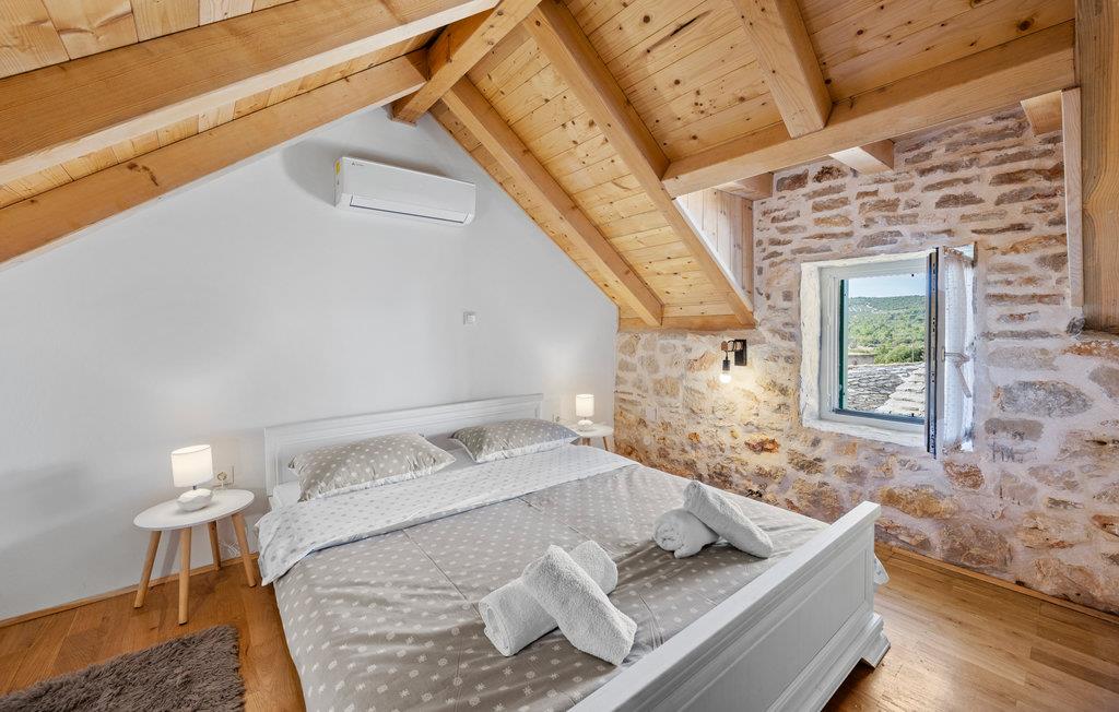 I bor på et roligt, lille sted nær Rusevo, ikke langt fra Primosten. Primosten er en attraktiv badeby, der har talrige tilbud til både børn og voksne. Brug timer på at bade på de smukke strande, nyd bølgerne i det lyseblå hav og gå og feste gennem gyderne. I kan også planlægge udflugter og opleve den historiske by Trogir eller den populære og imponerende by Split.