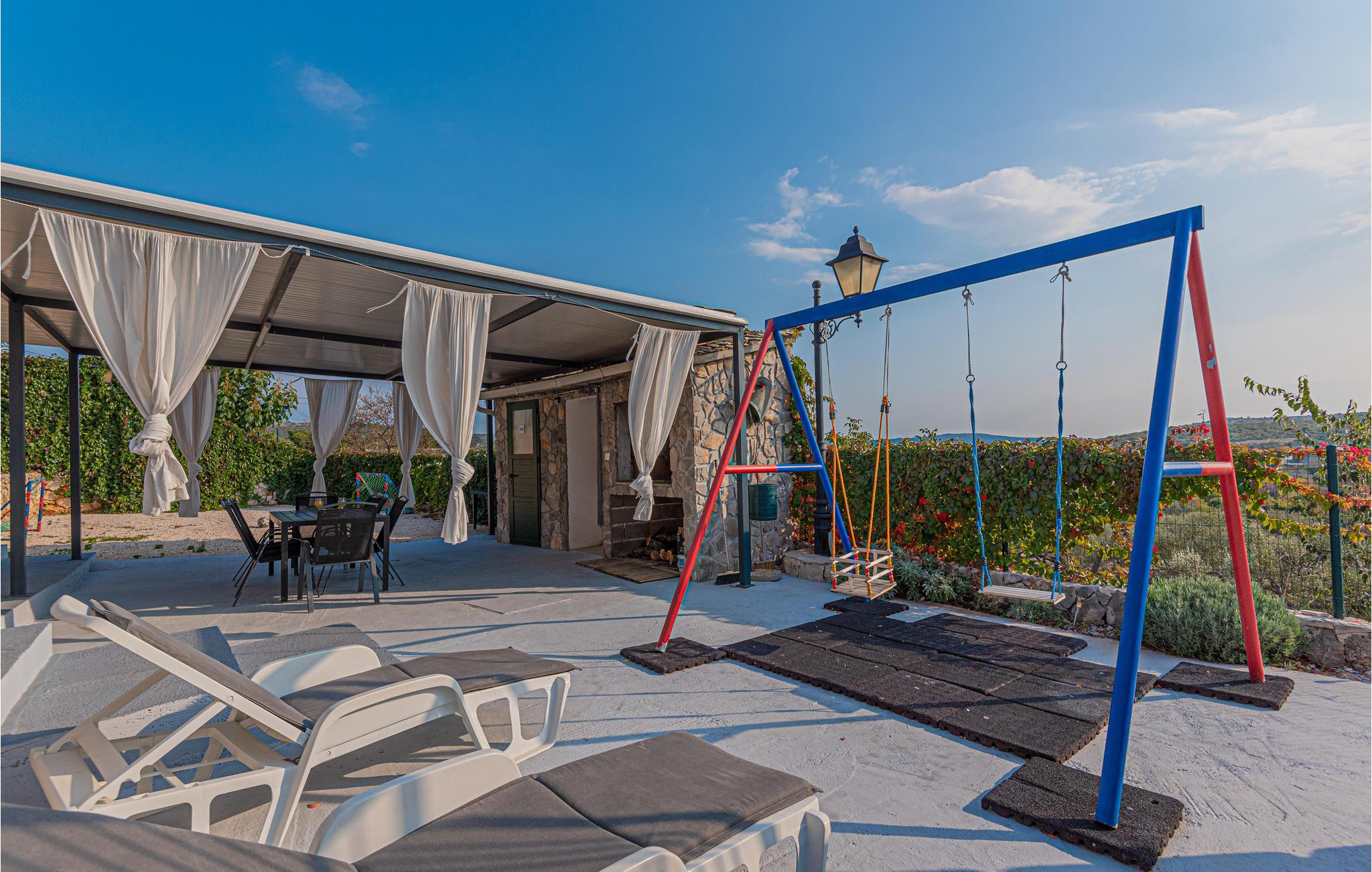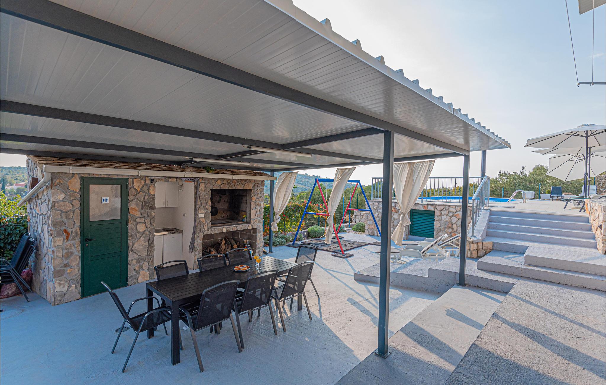 I den lille by Podgreben i nærheden af Promosten ligger dette skønne og velindrettede feriehus. Det består af to separate boligeneheder fordelt på hver sin etage. De er forbundet med en udendørstrappe. Grunden er lukket og rummelig, og der er pool. Feriehuset egner sig perfekt til to familier, som holder ferie sammen. Kiesstrandene i Promosten er nogle af de skønneste ved Adriaterhavet, men ønsker I jer en udflugt, hvor I kan tage nogle helt unikke indtryk med hjem bør I besøge byerne Trogir, Sibenik og Split, der alle tre er rige på historiske seværdigheder. Naturelskere kan glæde sig til at tage på tur til nationalparkerne Krka og øgruppen Kornati.