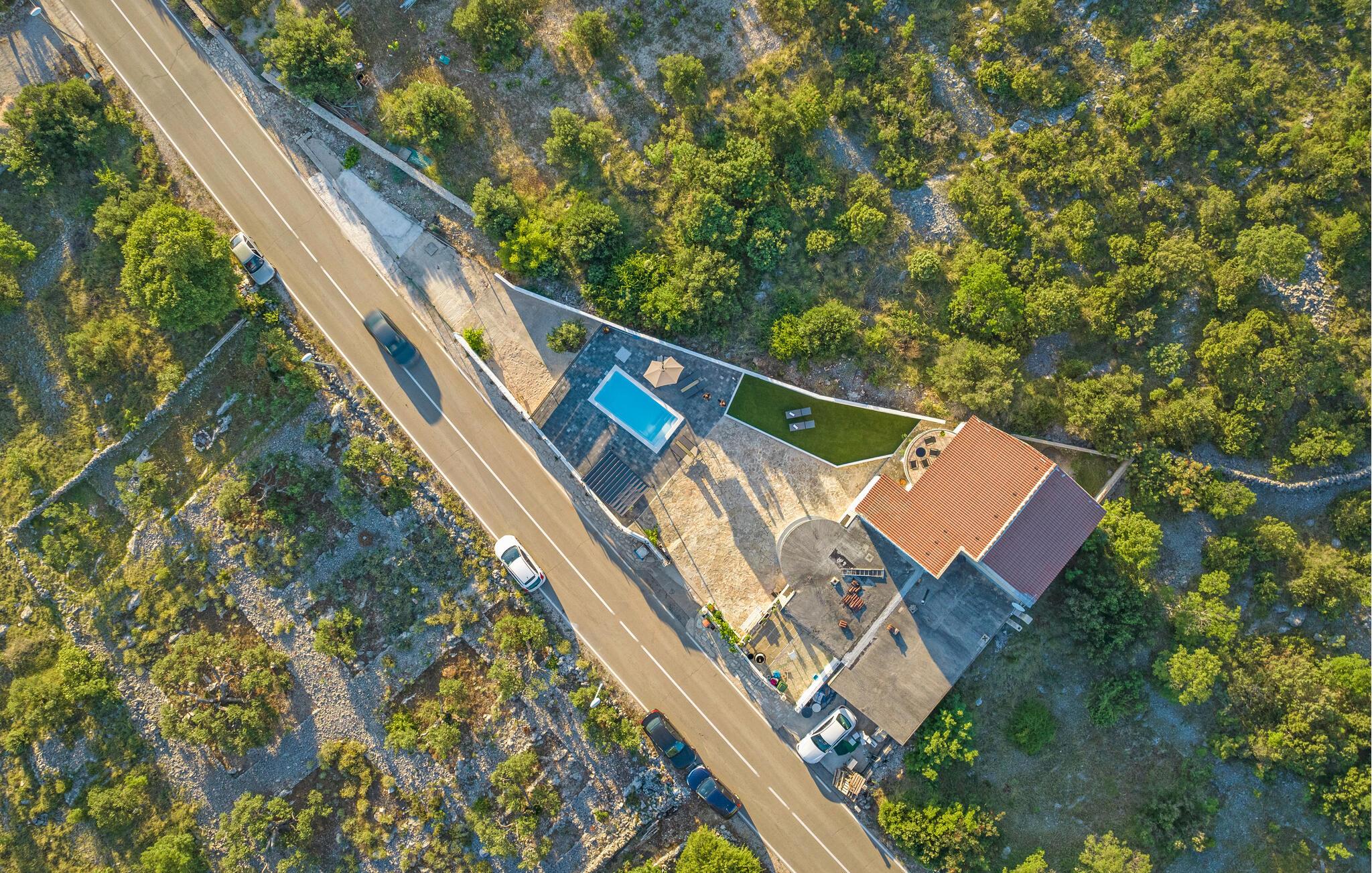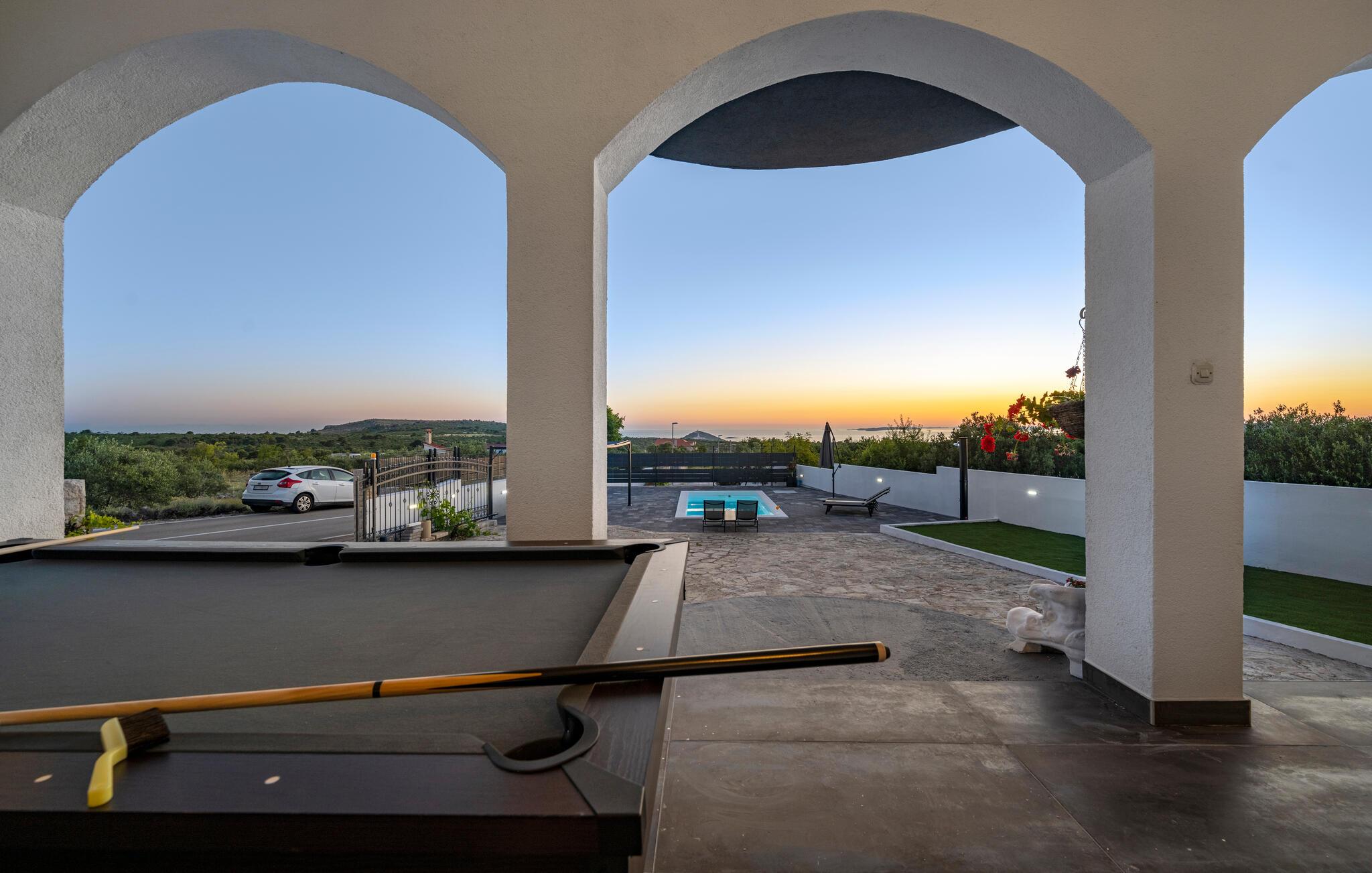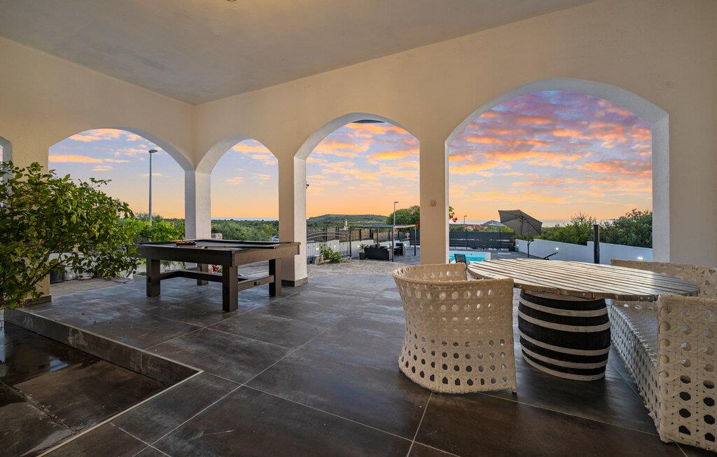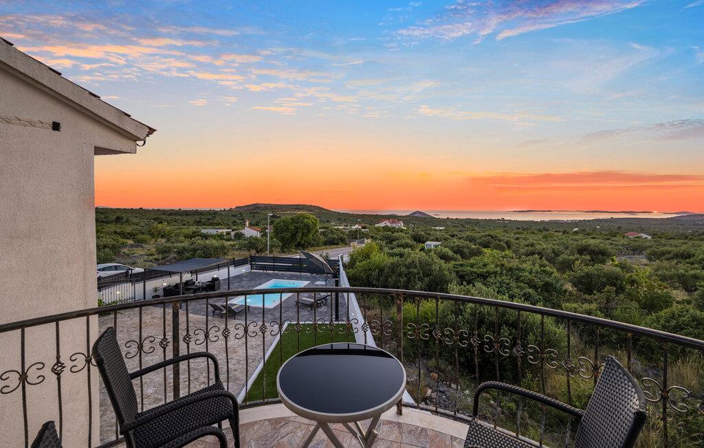 Slap af i dette attraktive feriehus med pool. I dette indbydende feriehus nær Primosten kan I nyde en harmonisk kombination af fred og komfort. Omgivet af frodige grønne områder og med en vidunderlig havudsigt byder huset på en afslappende atmosfære. Sammen med jeres udvidede familie eller venner kan I flytte ind i boligen med to boligenheder og føle jer helt tilpas. Den vellykkede blanding af klassisk og moderne indretning skaber en hyggelig atmosfære, hvor I straks vil føle jer hjemme. Uanset om I slapper af ved poolen eller spiller ved poolbordet i det overdækkede udendørsområde, vil I finde talrige muligheder for underholdning her. På balkonen kan I læse en bog i fred og ro og nyde den betagende udsigt og solnedgange. Husets beliggenhed er ideel: stille og grønt, men alligevel tæt på Primostens charmerende strande og faciliteter. Gå en tur gennem de maleriske gader i den gamle bykerne og oplev indbydende caféer og restauranter, der serverer lokale delikatesser. For de eventyrlystne er der masser af muligheder for vandsport, fra kajaksejlads til snorkling. Udforsk de omkringliggende vinmarker på en cykeltur eller besøg de historiske byer Sibenik og Trogir i nærheden. Her vil I opleve en perfekt blanding af afslapning og aktivitet i betagende omgivelser.